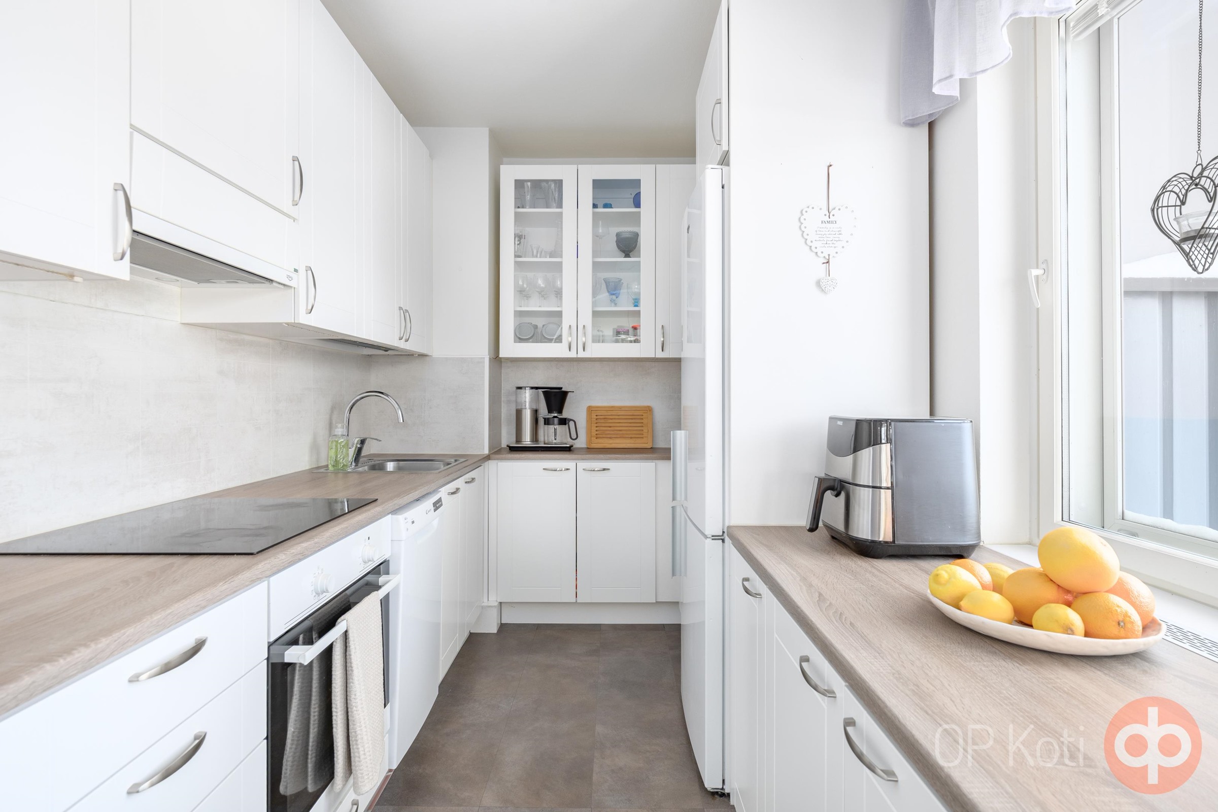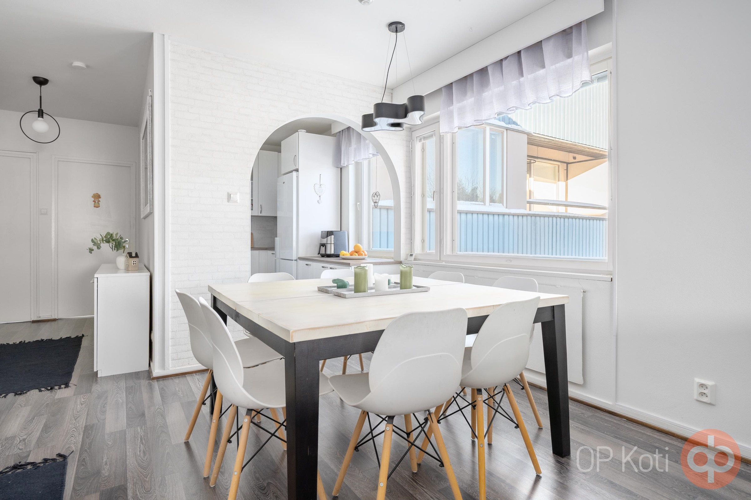 Tule tutustumaan tähän ylimmän kerroksen huoneistoon. Kodissa on kolme makuuhuonetta, tilava olohuone sekä keittiö. Makuuhuoneet sijoittuvat ilta-auringon puolelle, mikä tuo tiloihin miellyttävää valoa loppupäivästä. Olohuoneesta on käynti lasitetulle parvekkeelle, jossa voit nauttia aamuauringosta varhaisesta keväästä pitkälle syksyyn. Ylimmän kerroksen sijainti takaa rauhallisuutta ja runsaasti luonnonvaloa. Pohjaratkaisu on selkeä ja käytännöllinen, ja tilat mukautuvat moneen eri elämäntilanteeseen, olipa tarpeen työhuone, lastenhuone tai vierashuone. Keskustan monipuoliset palvelut, kaupat, koulut ja harrastusmahdollisuudet ovat kaikki kävelymatkan päässä, mikä tekee arjesta sujuvaa ilman autoakin. Asunto vapautuu sopimuksen mukaan. Tässä on loistava mahdollisuus hankkia valoisa ja toimivapohjainen koti hyvällä sijainnilla, tervetuloa ihastumaan! Soita ja varataan sinulle sopiva asuntoesittelyaika