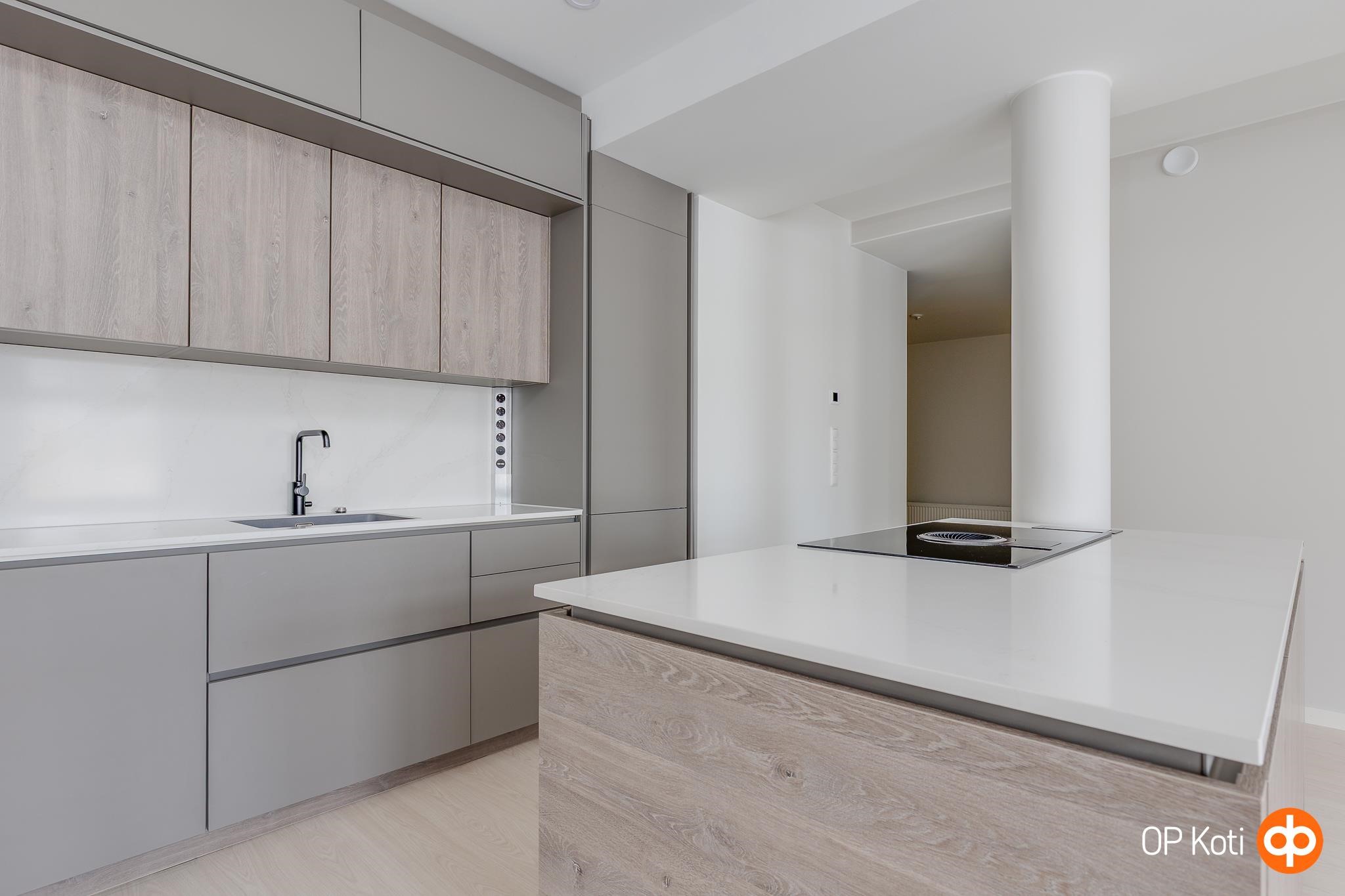 Katutasossa sijaitsevan kodin pohjaratkaisu tarjoaa monipuolisia mahdollisuuksia niin pariskunnalle kuin etätyöläisellekin. Keittiössä (Noblessa) on runsaasti työskentelytilaa ja laadukkaat kodinkoneet tekevät ruoanlaitosta sujuvaa. Alkovin voi helposti muuntaa rauhalliseksi työtilaksi tai tv-huoneeksi. Erillinen wc ja kaksi vaatehuonetta auttavat arjen pyörityksessä. Olohuoneesta on käynti katetulle terassille, joka kutsuu nauttimaan aamukahvista tai rentoutumaan päivän päätteeksi. Asunnossa on oma ilmanvaihtokone lämmöntalteenotolla.