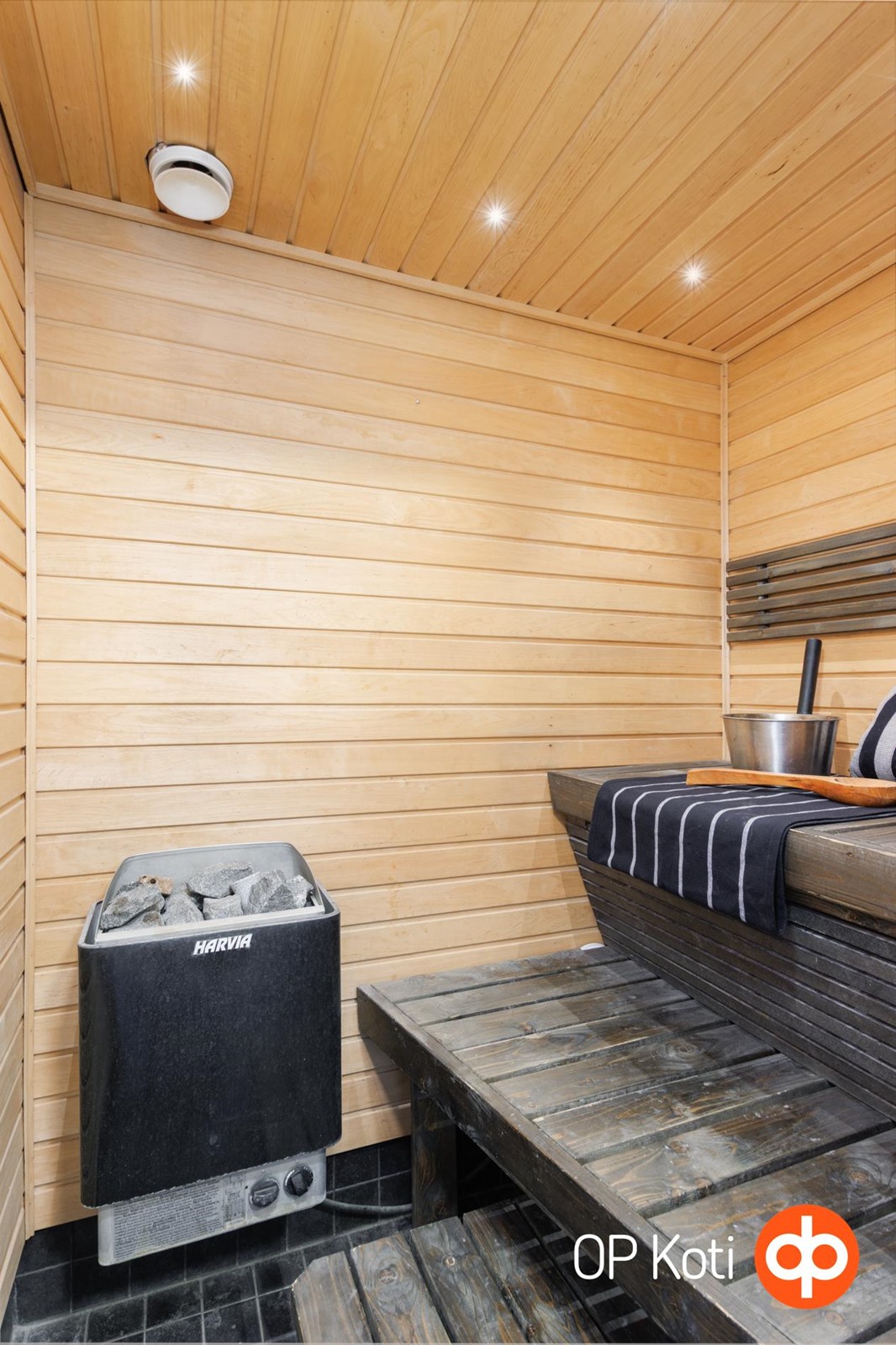 - Sauna, sähkökiuas, kylpyhuone, suihku, suihkukaappi, peilikaappi, allaskaappi, pesukoneliitäntä mahtuu myös pesutorni, lattialämmitys, kiinteät valaisimet. Sauna rakennettu asuntoon 2012, taloyhtiön ja rakennusvalvojan valvonnassa, samassa remontissa uusittu käyttövesiputket kph