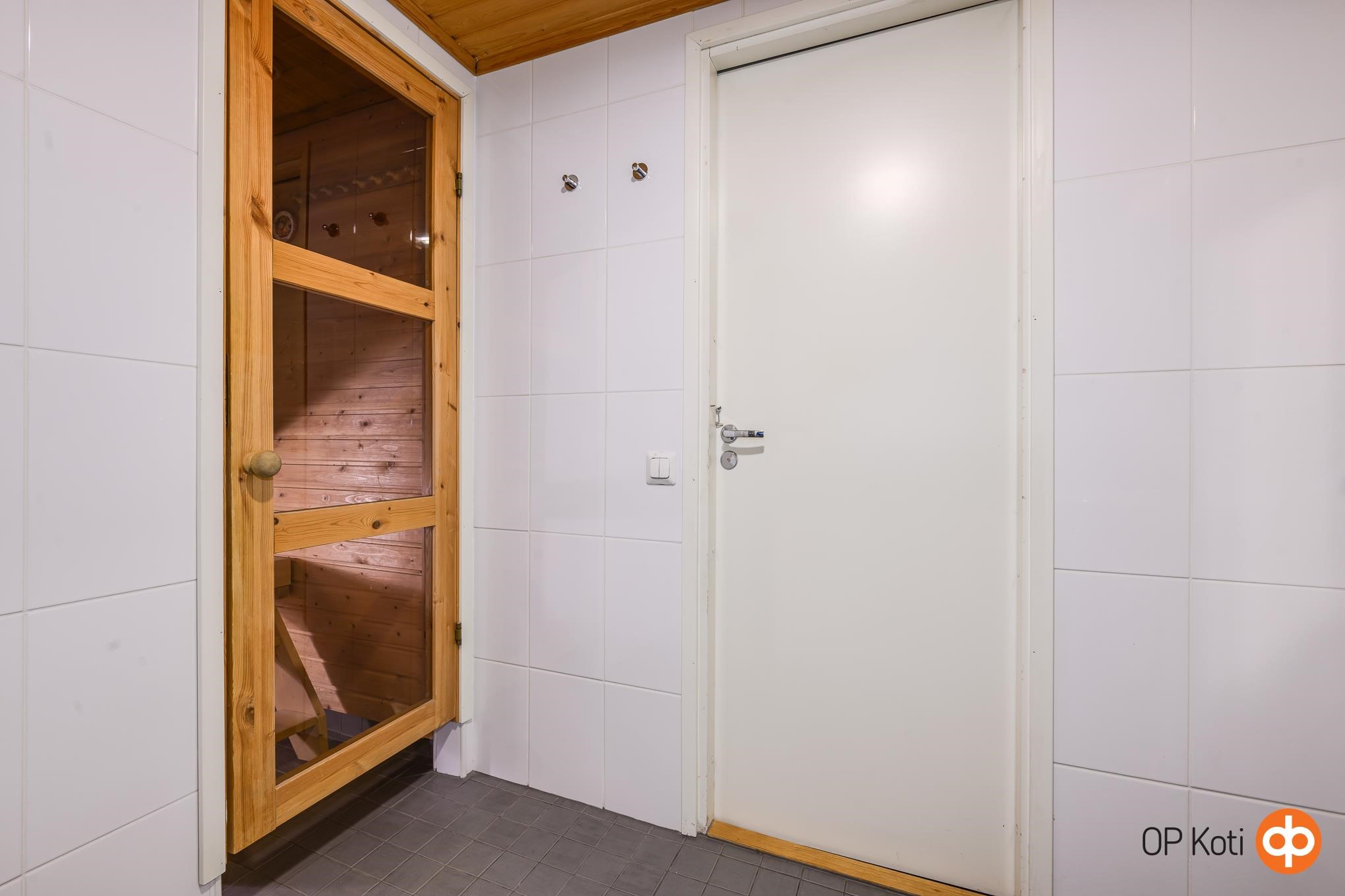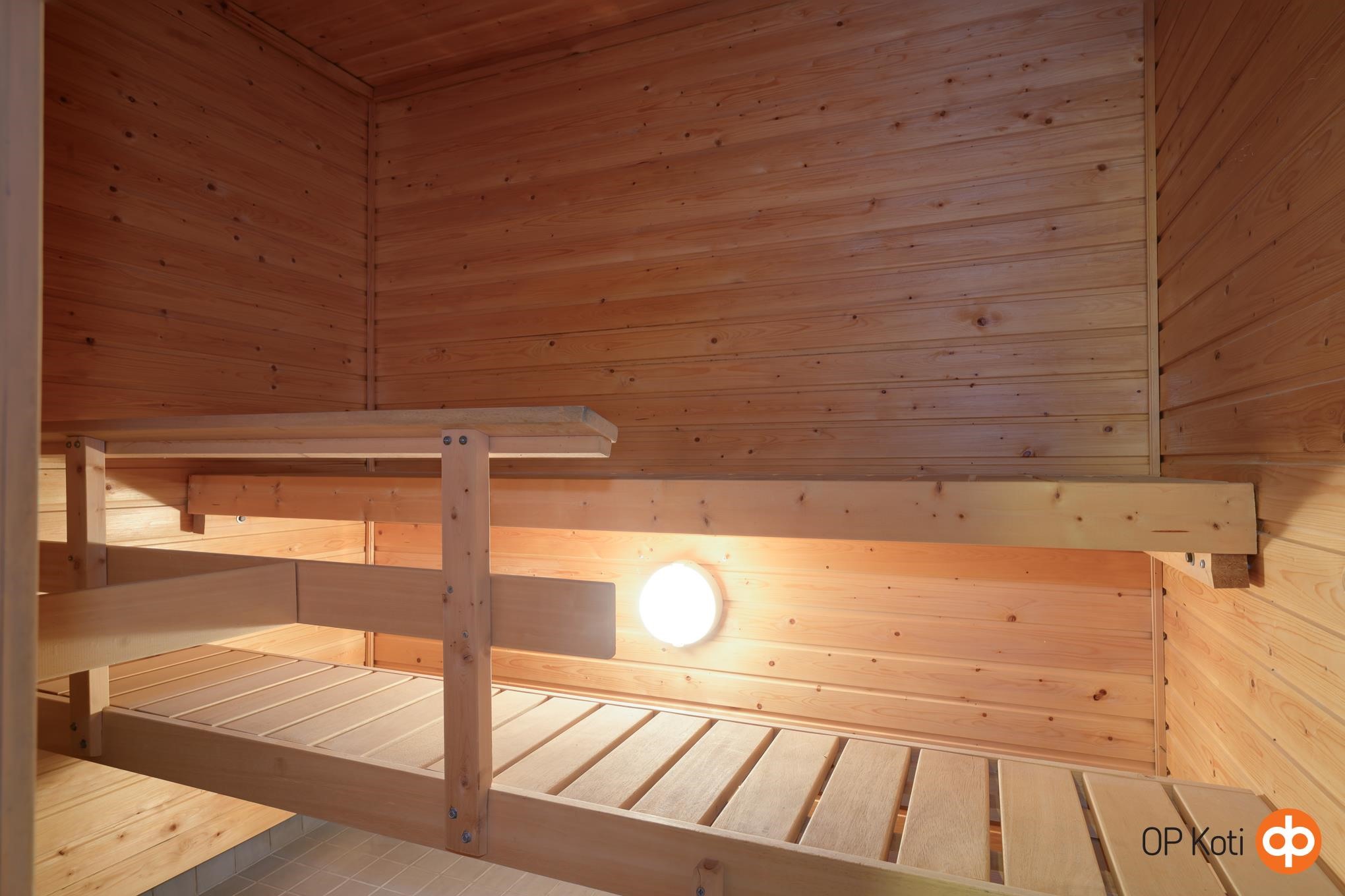 - Sauna, sähkökiuas, kylpyhuone, suihku, pesukoneliitäntä.