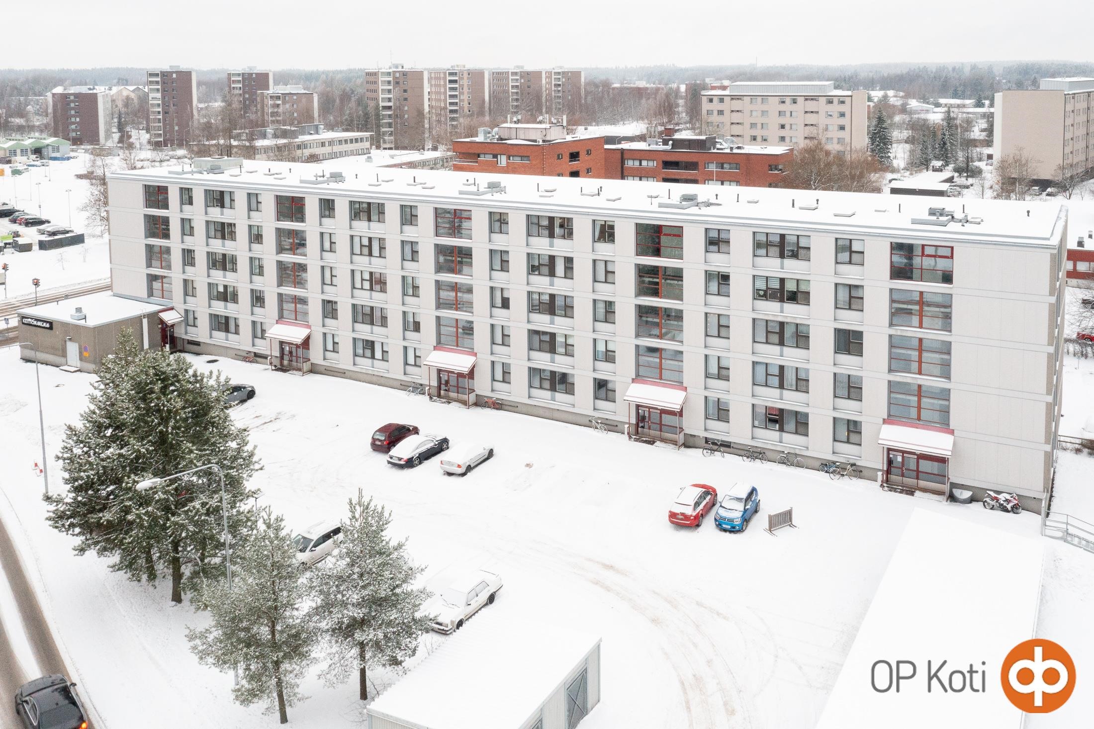 Hyvällä paikalla kävelymatkan päässä keskustan palveluista, kauppojen äärellä.