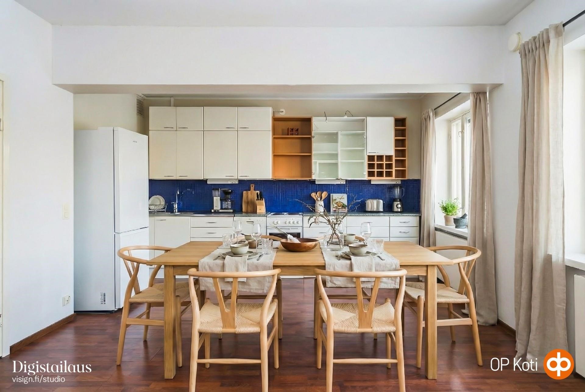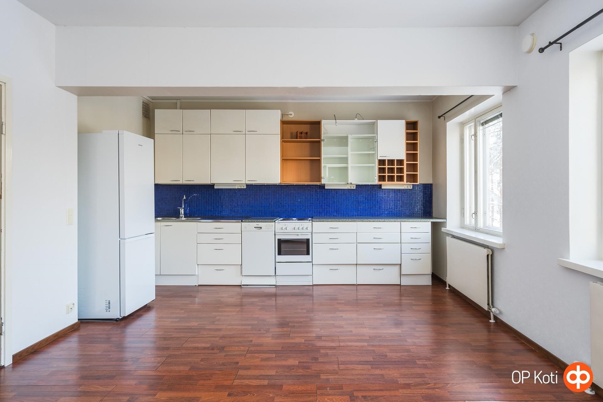 - Jääkaappipakastin, sähköliesi, astianpesukone, kiinteät valaisimet.