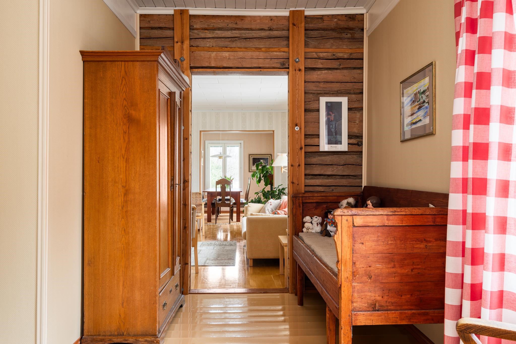 Tämä upea hirsirunkoinen, mansardikattoinen talo seisoo yhä ryhdikkäänä Kokemäenjoen rannalla, vanhan rautatiesillan ja Lukkarinsillan välisssä. Alun perin maalaistaloksi 1800-luvulla rakennettu koti kantaa mukanaan pitkää historiaa ajalta, jolloin ympärillä levittäytyivät pellot ja maantie kulki joen vartta pitkin.