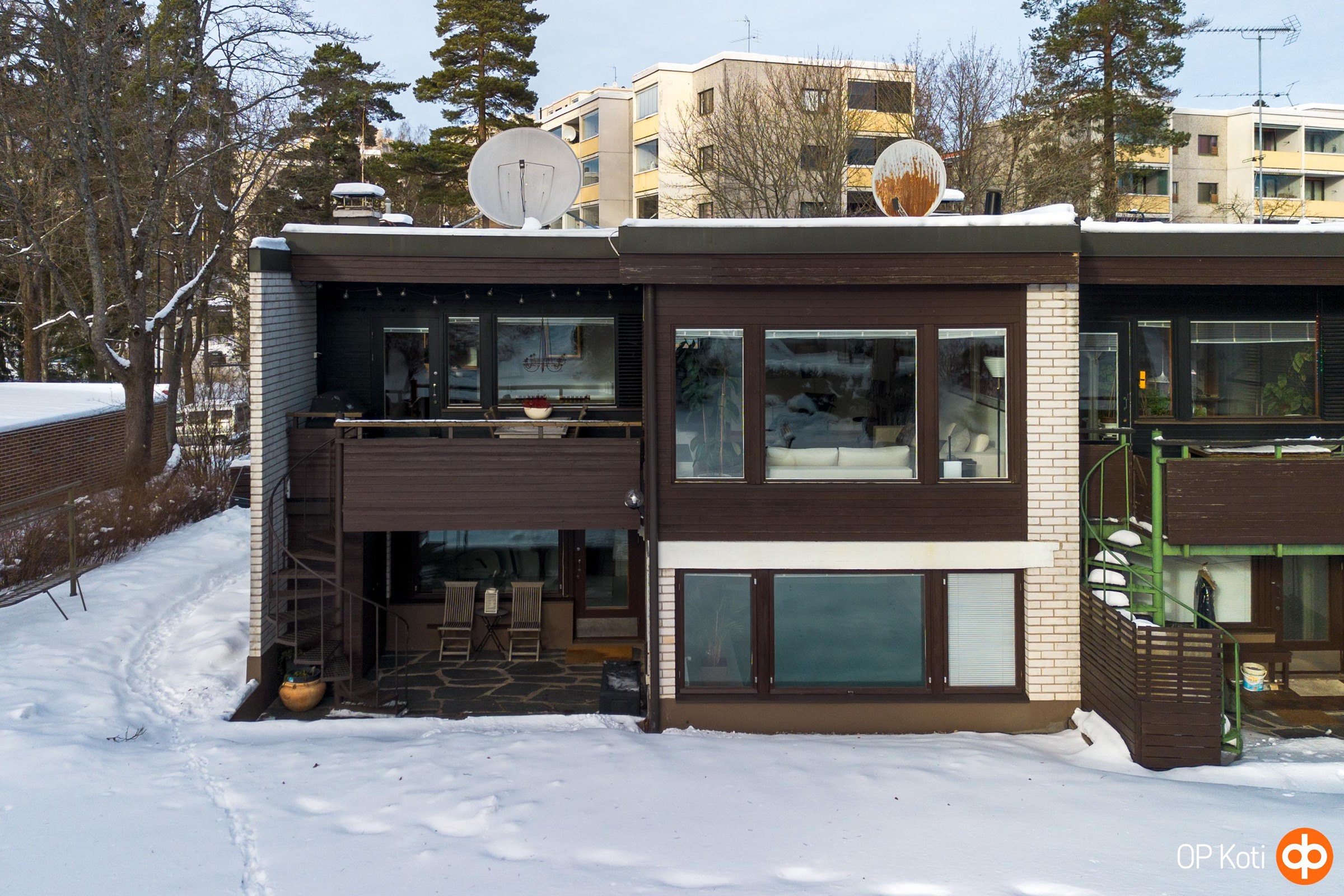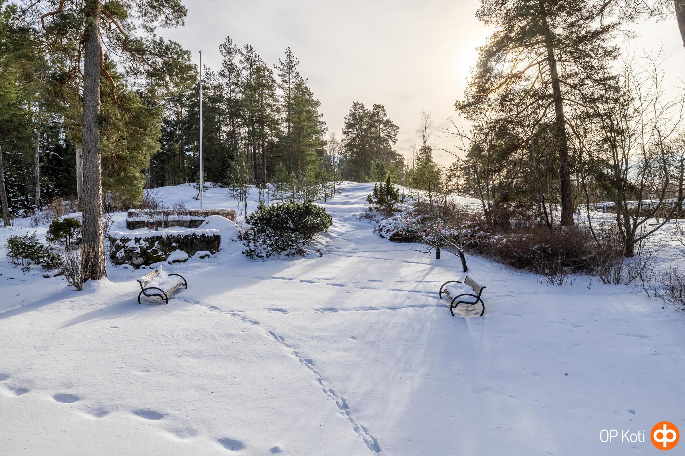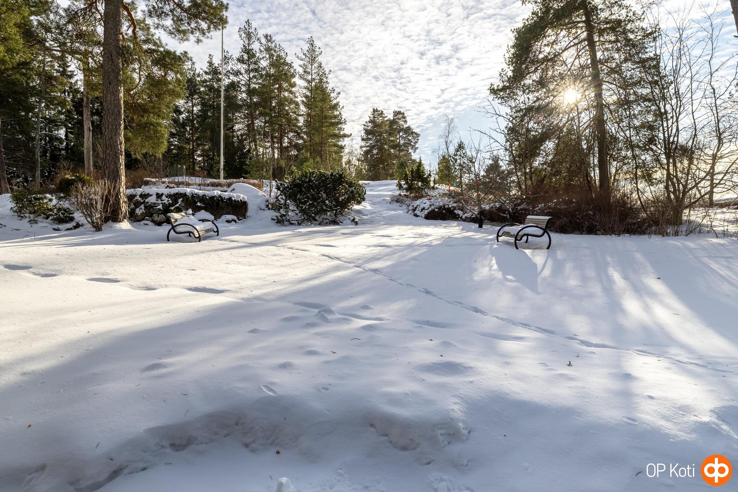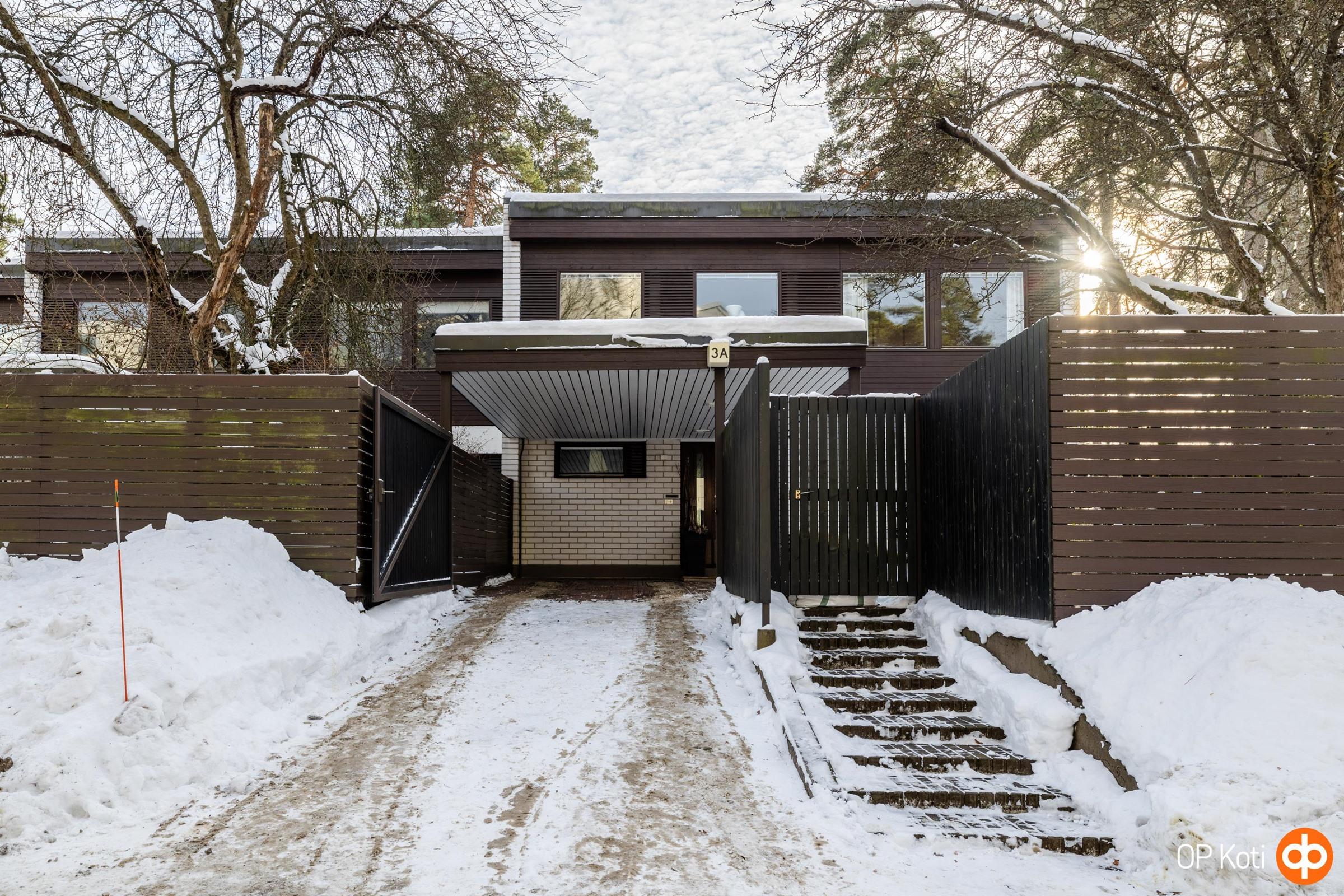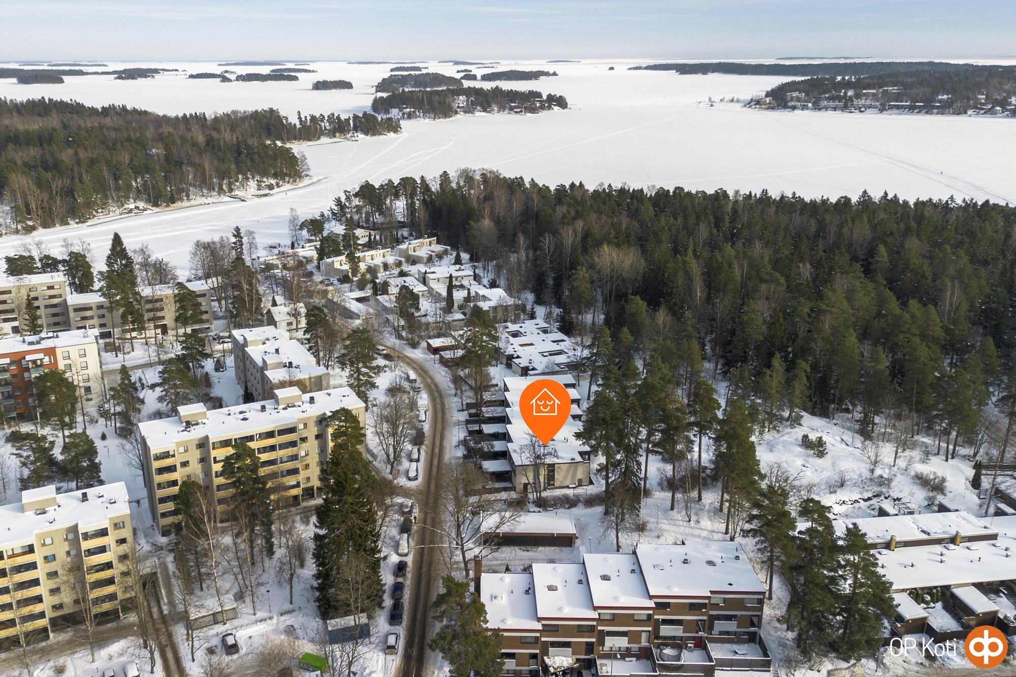 Päätyhuoneiston sijainti tuo mukanaan erityistä rauhaa ja yksityisyyttä. Suuri oma piha, suojaisat näkymät ja ympäröivä vihreys luovat tunnelman, joka tuntuu lähes omakotitalomaiselta. Oma autopaikka sijaitsee suoraan etuoven edessä suojaisan katoksen alla.