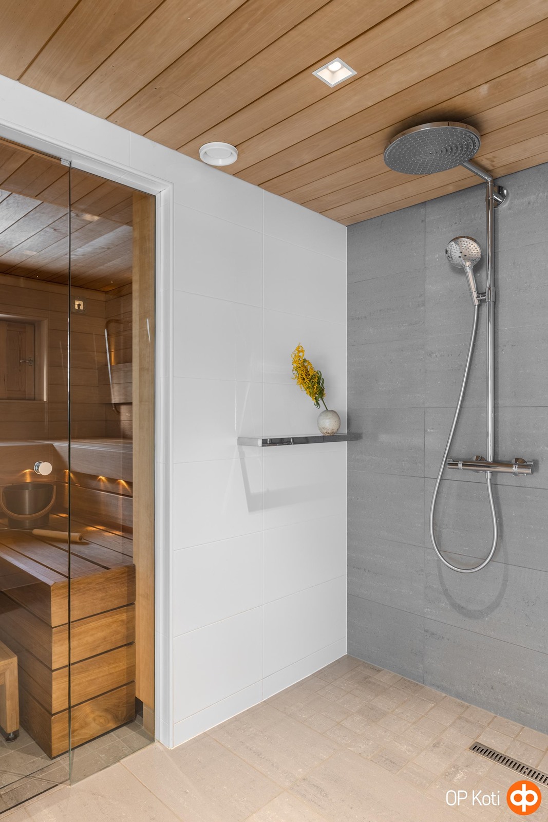 - Sauna, sähkökiuas, kylpyhuone, erillinen wc, suihku, peilit, allaskaappi, lattialämmitys, kiinteät valaisimet.