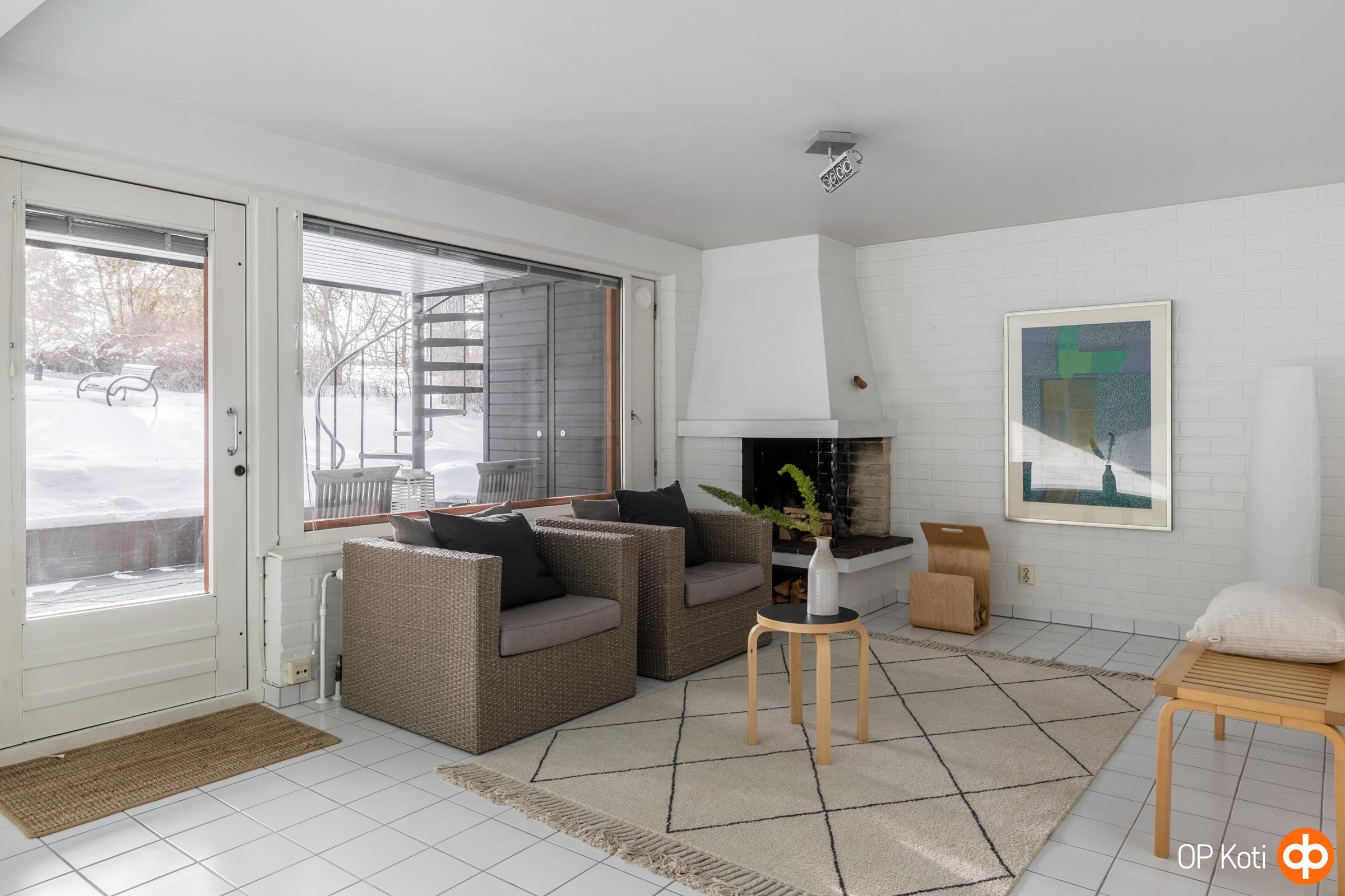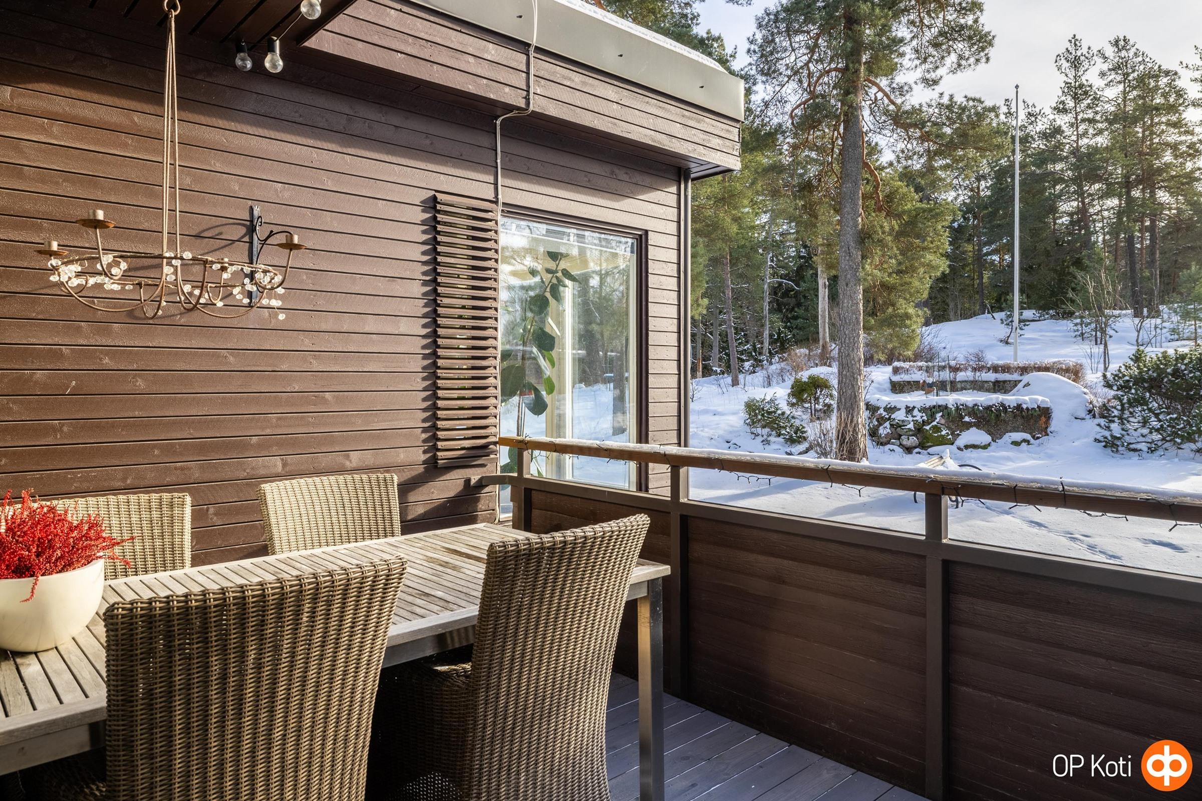 On koteja, joissa vain asutaan, ja on koteja, joissa elämä todella tapahtuu. Tämä kaksikerroksinen rivitalon päätyhuoneisto Laajasalon rauhallisessa ympäristössä kuuluu jälkimmäisiin. Valo, tila ja oma suuri vehreä piha luovat puitteet arjelle, joka tuntuu tavallista paremmalta.