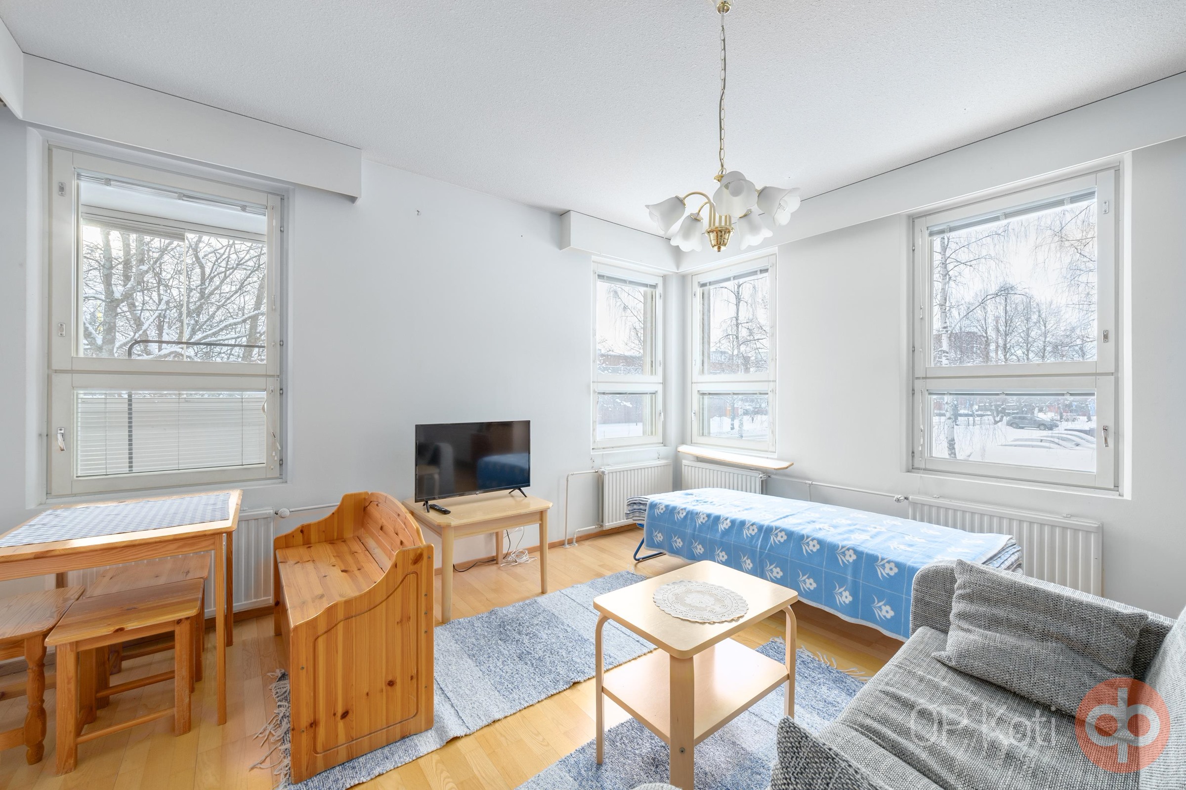 Huoneisto on pääosin alkuperäiskuntoinen, mutta hyvin pidetty. Tilava olohuone, makuuhuone ja toimiva keittiö tuovat kotiin helppoutta ja selkeät neliöt. Taloyhtiö on hyvin hoidettu.