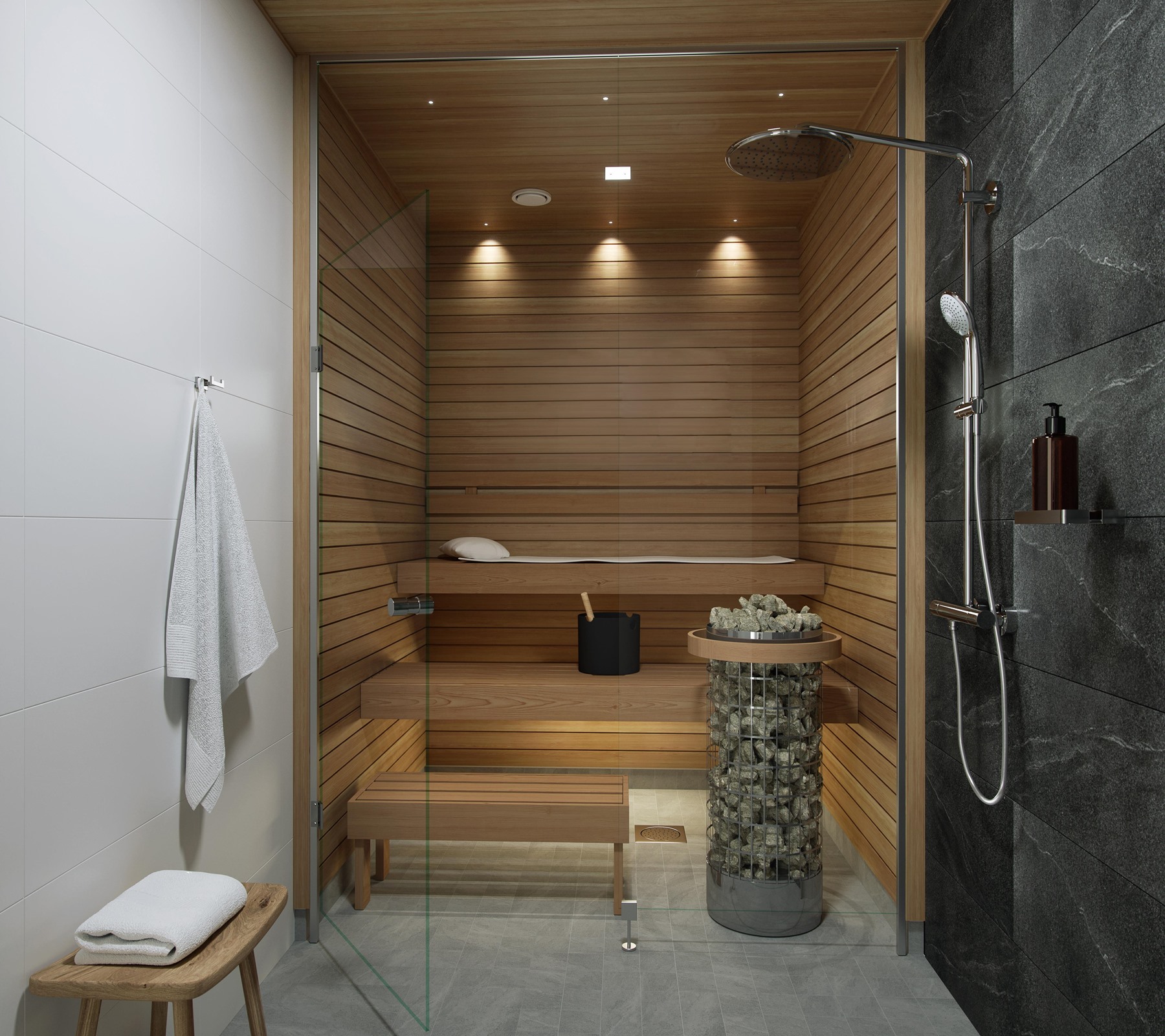 - Kylpyhuoneet laatoitetaan ja saunat ovat leppäpaneelia. Erillis-wc:iden ja kodinhoitohuoneiden lattiat laatoitetaan ja seinät maalataan. Saunan lattia laatoitetaan, seinät ja katot ovat kuusipaneelia. Saunan ja pesuhuoneen välinen seinä lasia. Jokaisen asunnon varustukseen kuuluu pesukoneliitäntä, tilavaraus pesukoneelle ja päällekkäiselle kuivausrummulle. Allaskaappien yhteydessä on valaisimella varustettu peili. Wc-istuimien yhteydessä on bideesuihku. Sekoittajat ovat yksiotesekoittajia. Saunassa laudetasot ovat leppää, led-kuituvalaistus.