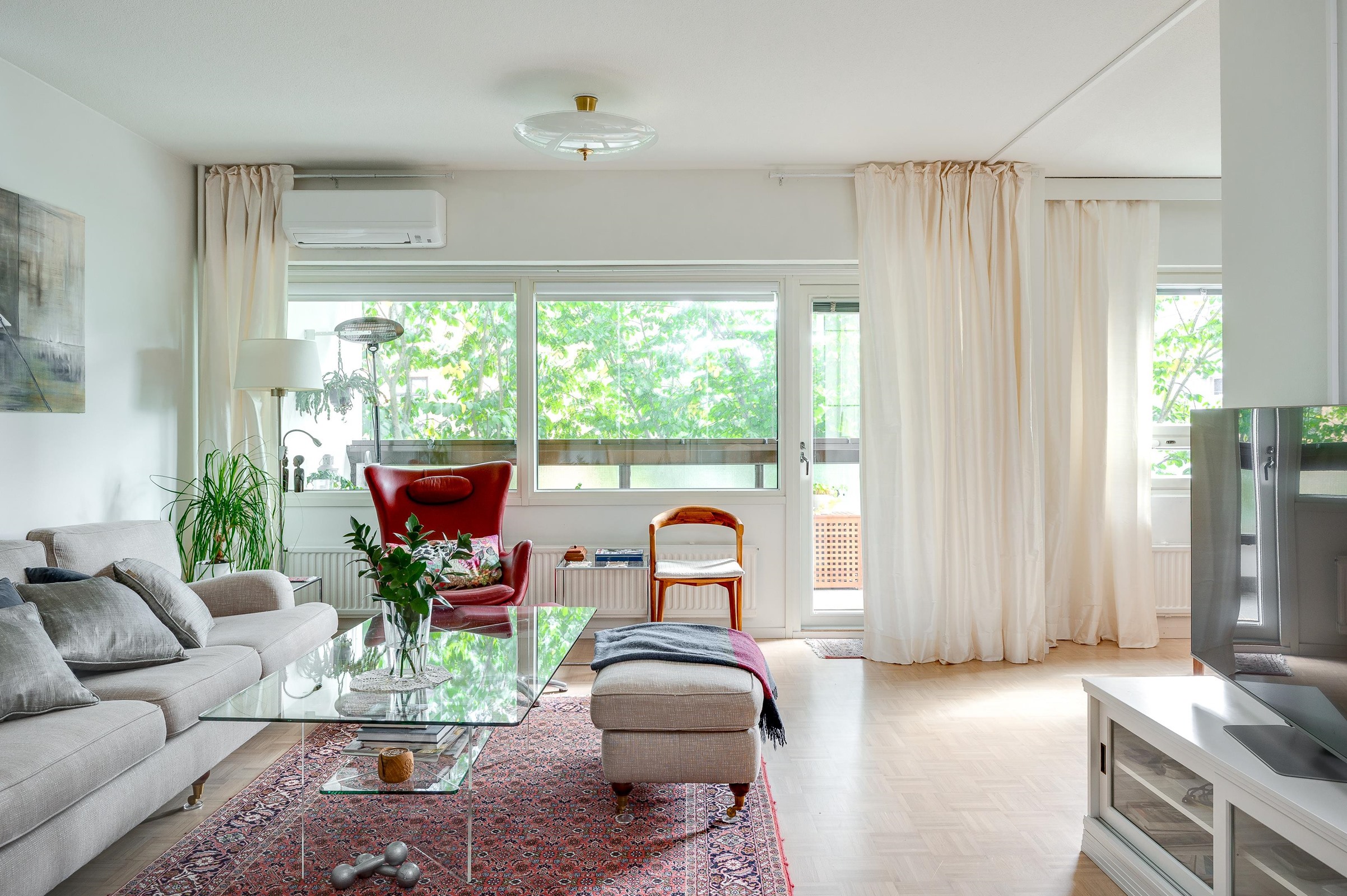 Huoneiston kunto on hyvä, ja se on varustettu laadukkailla materiaaleilla ja moderneilla mukavuuksilla. Asunnossa on myös ilmalämpöpumppu, joka korostaa asumismukavuutta entisestään. Lisäksi huoneistossa on tilava vaatehuone ja hyvin kaappitilaa. Asuntoa on remontoitu tyylikkäästi pienetkin yksityiskohdat ja toiminnallisuudet huomioiden.
