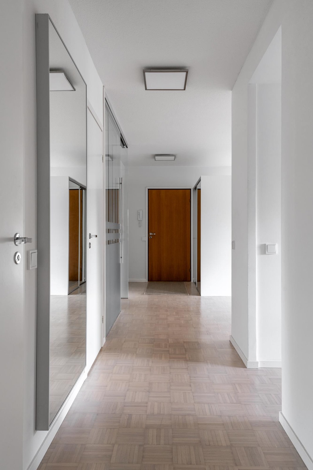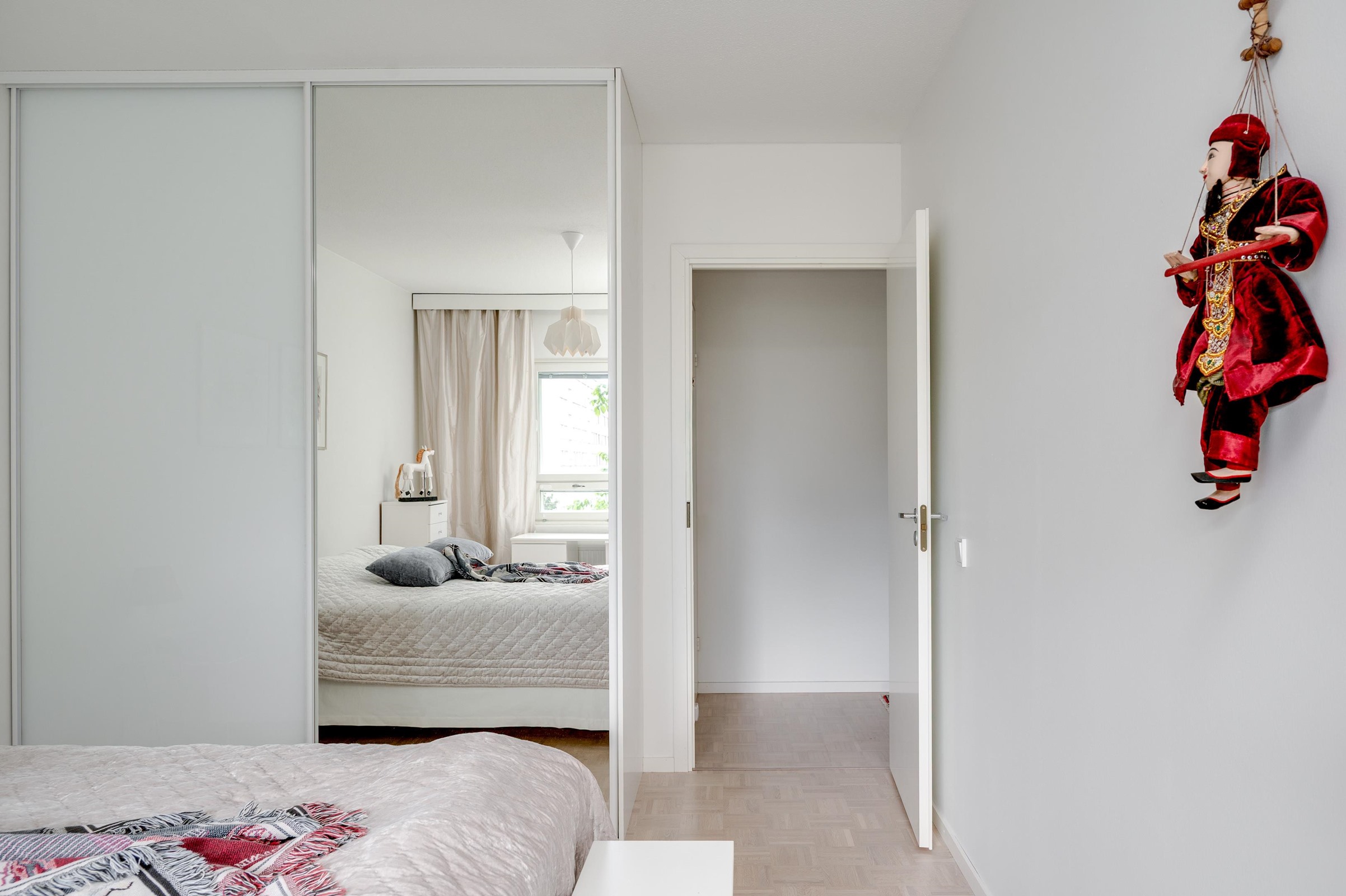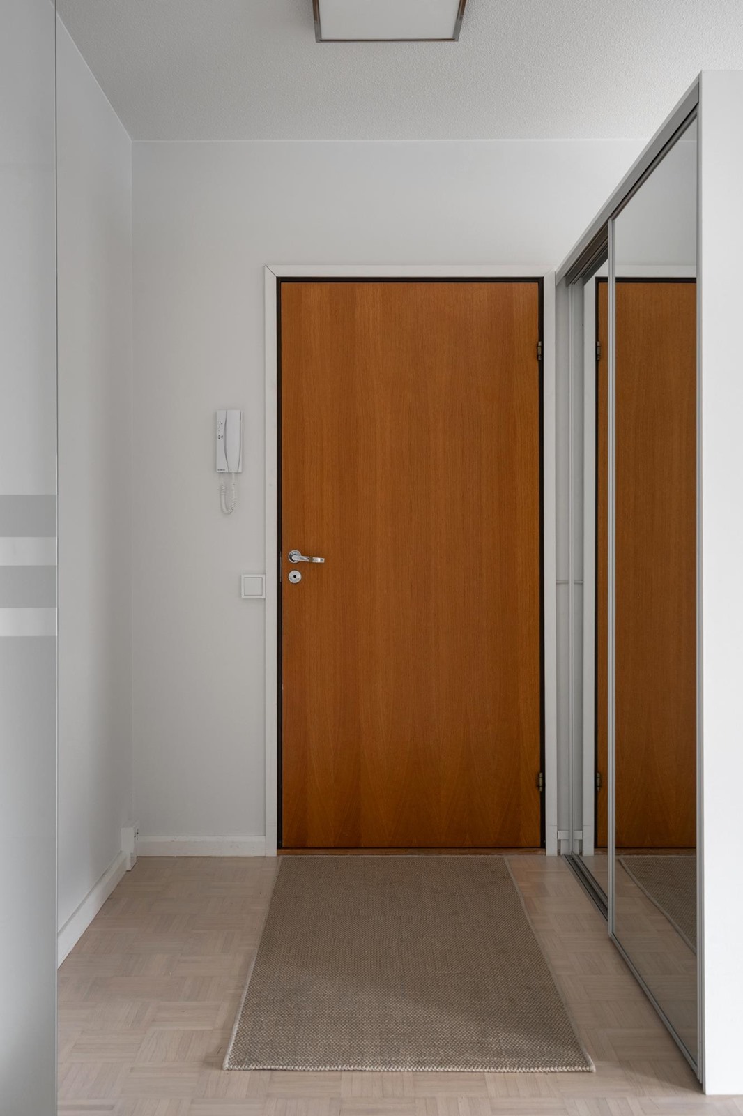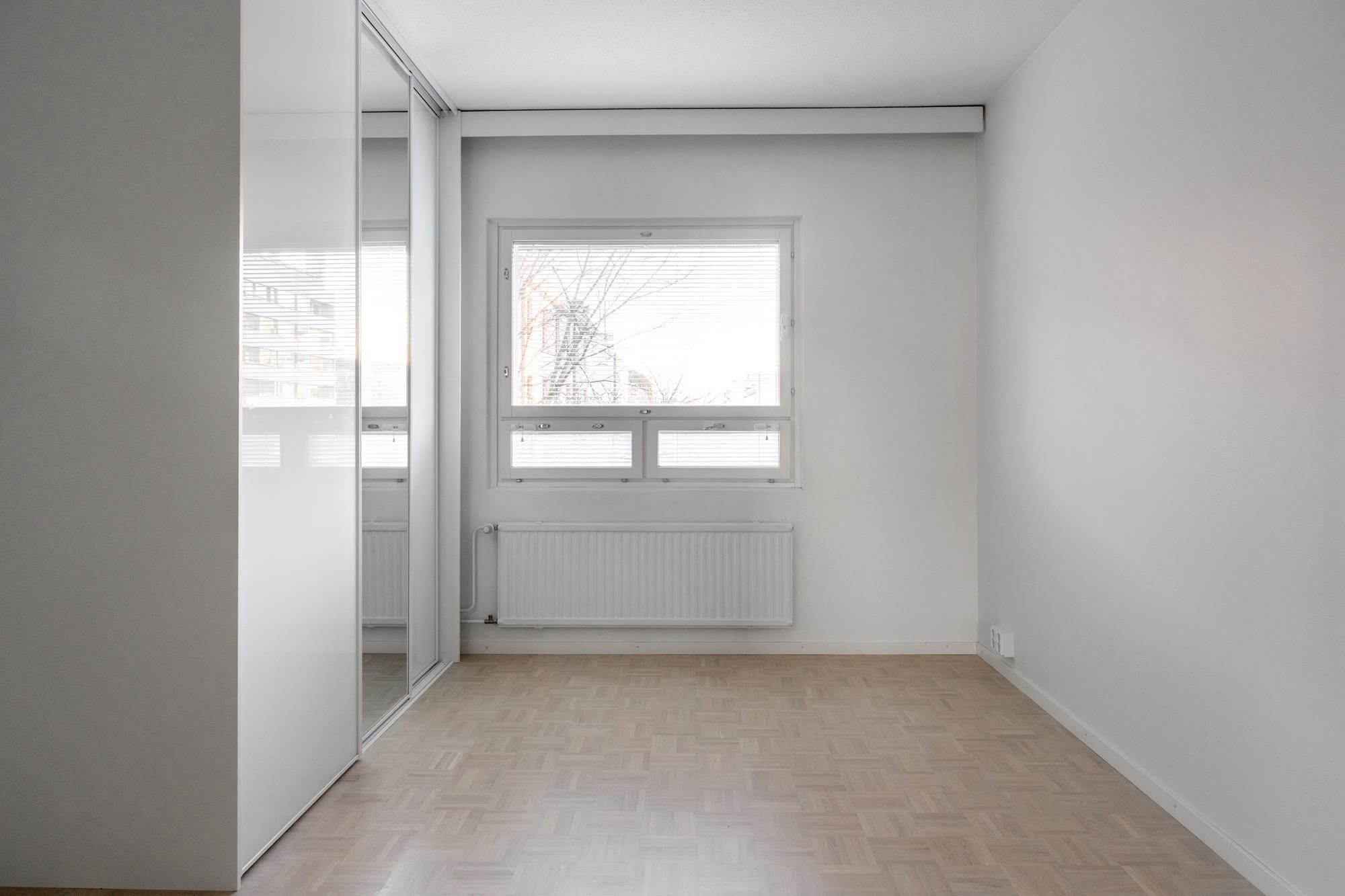 Keittiö: Parketti, seinät maalattu. Makuuhuoneet ja olohuone: Parketti, seinät maalattu. Kodinhoitohuone: Laatoitettu. WC: Mikrosementti (2017).