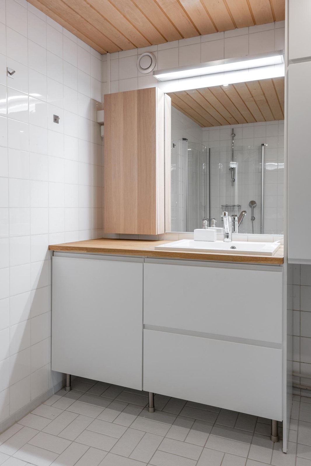 - Sauna, sähkökiuas, kylpyhuone, erillinen wc, suihku, suihkuseinä, peilit, peilikaappi, allaskaappi, pesukoneliitäntä. Kylpyhuonnetta ja erillistä wc-tilaa remontoitu vuonna 2017