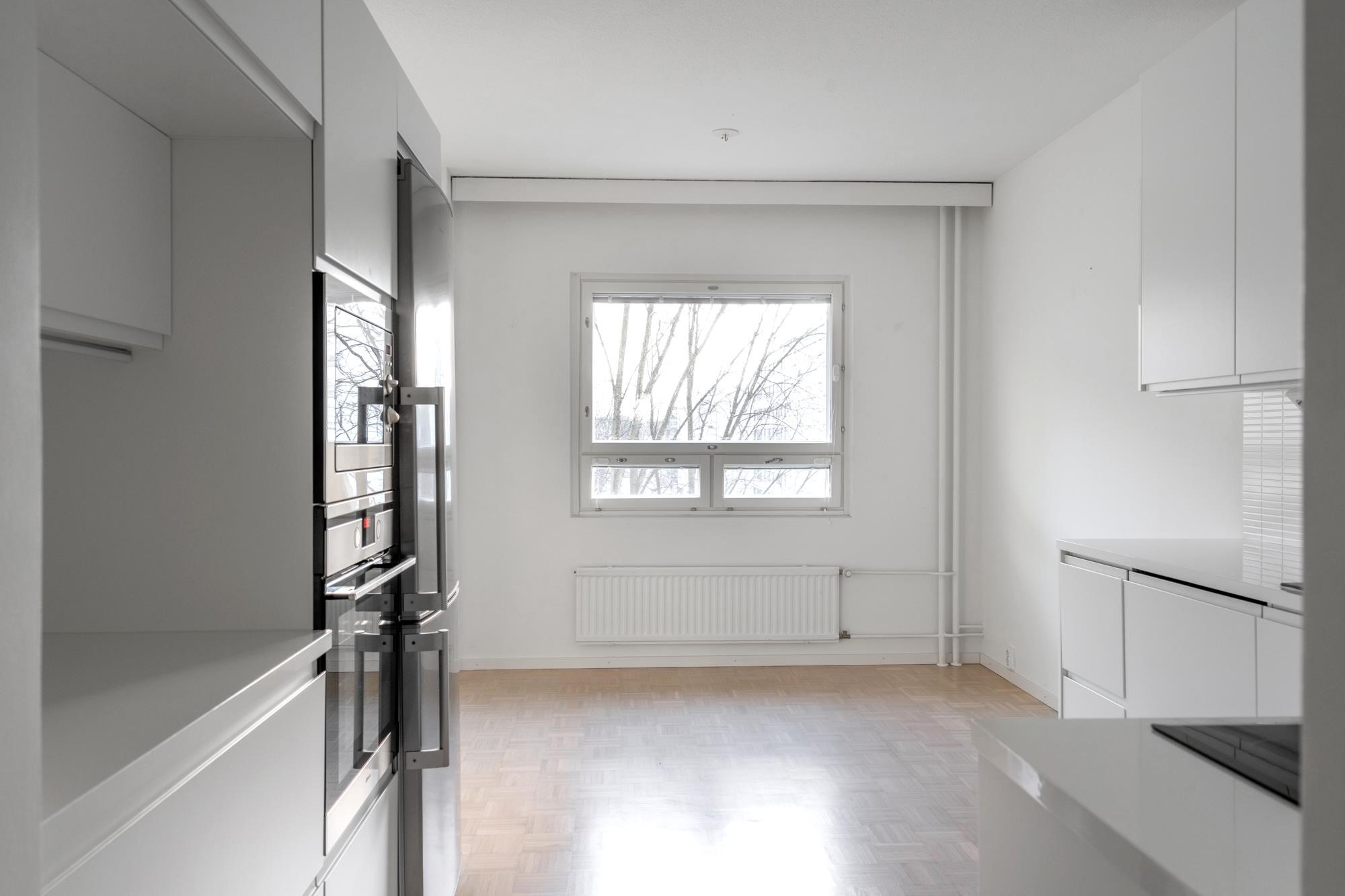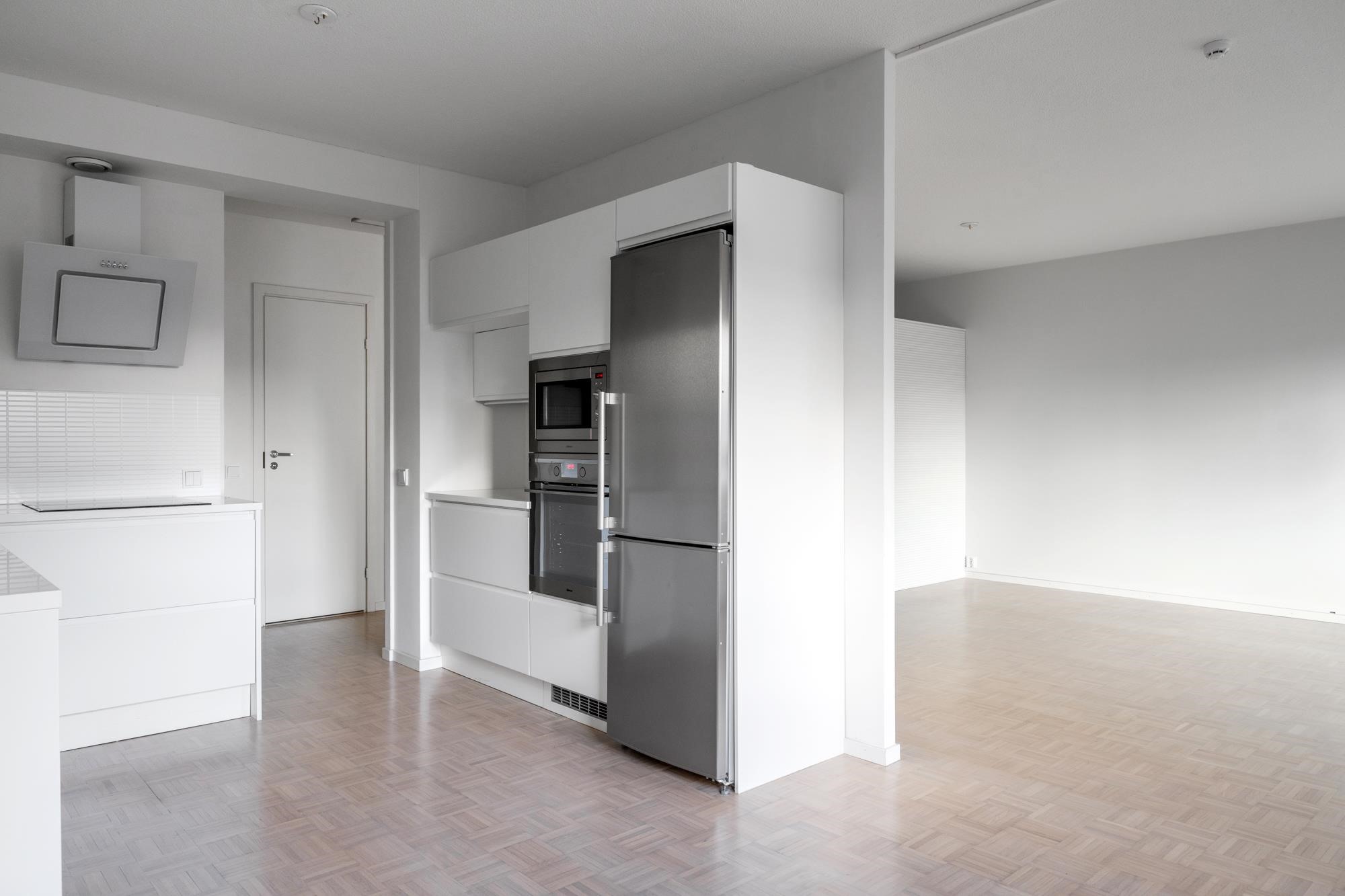 - Jääkaappipakastin, erillisuuni, induktioliesi, liesituuletin, mikroaaltouuni integroitu, astianpesukone, kaapistot. Keittiö remontoitu vuonna 2017