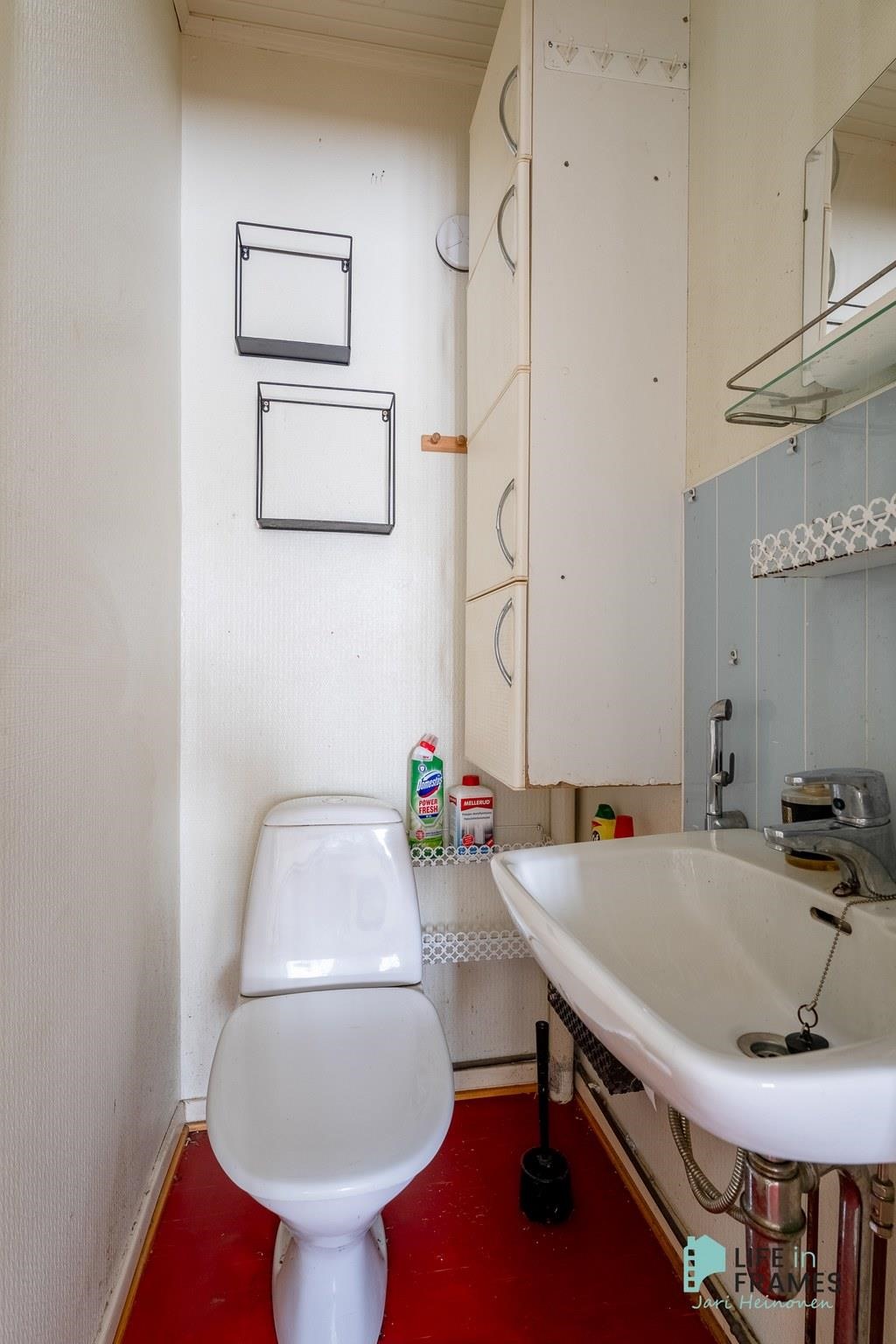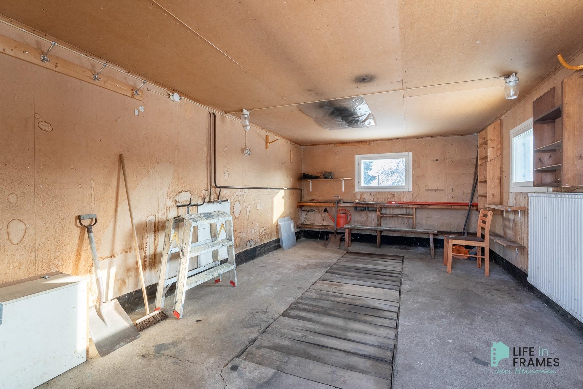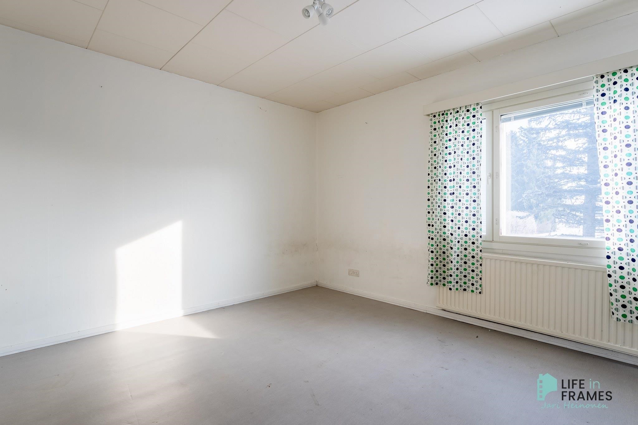 Huonetilat: seinät: maali, lattiat: muovimatto.