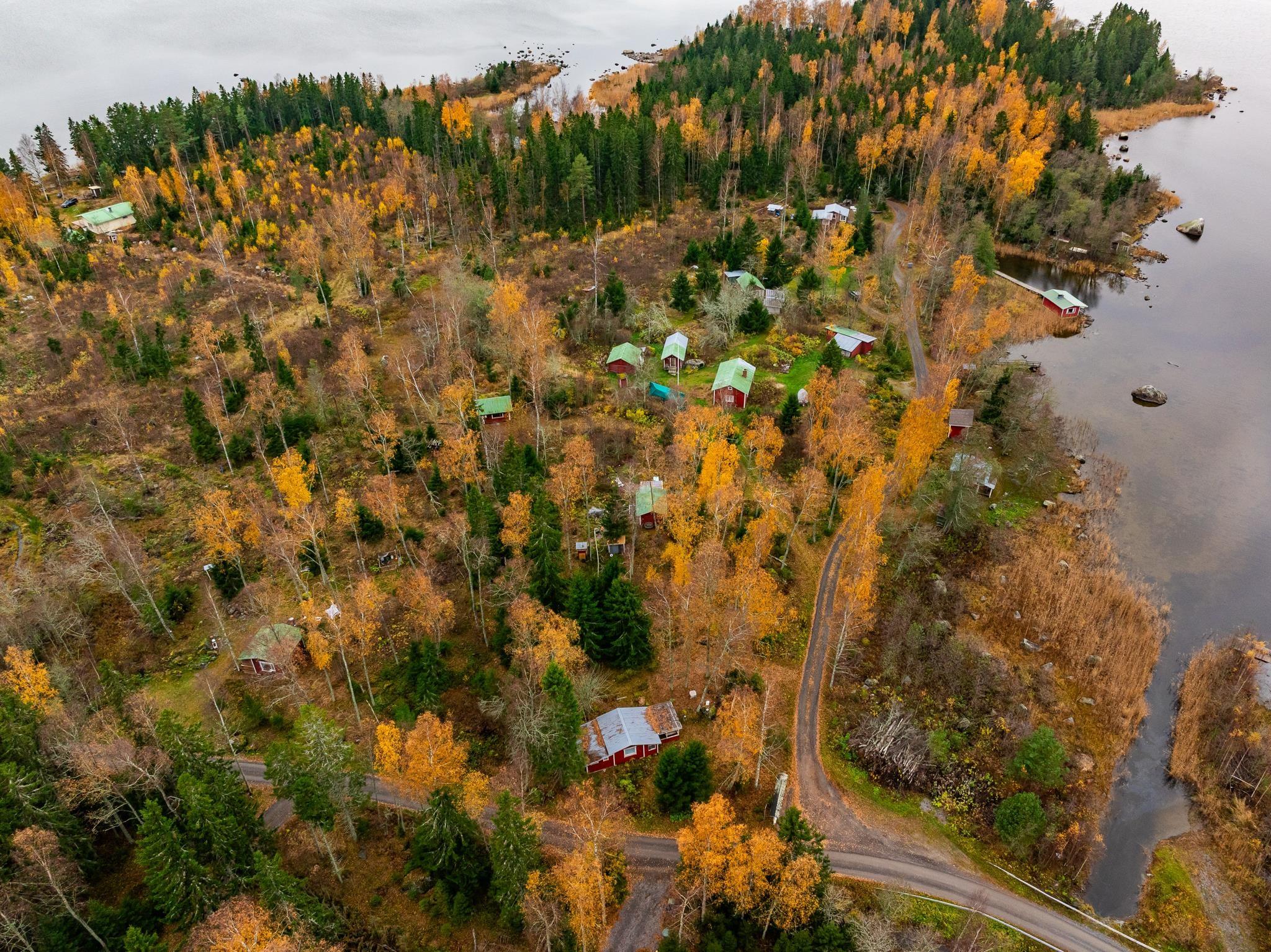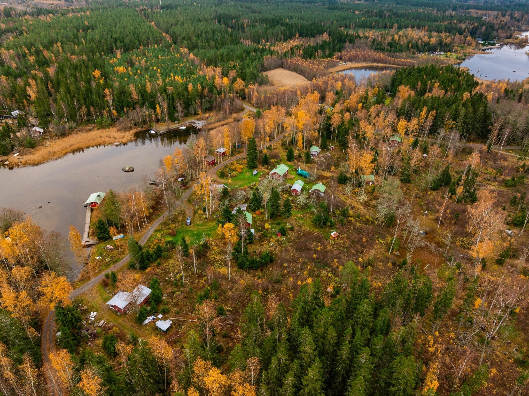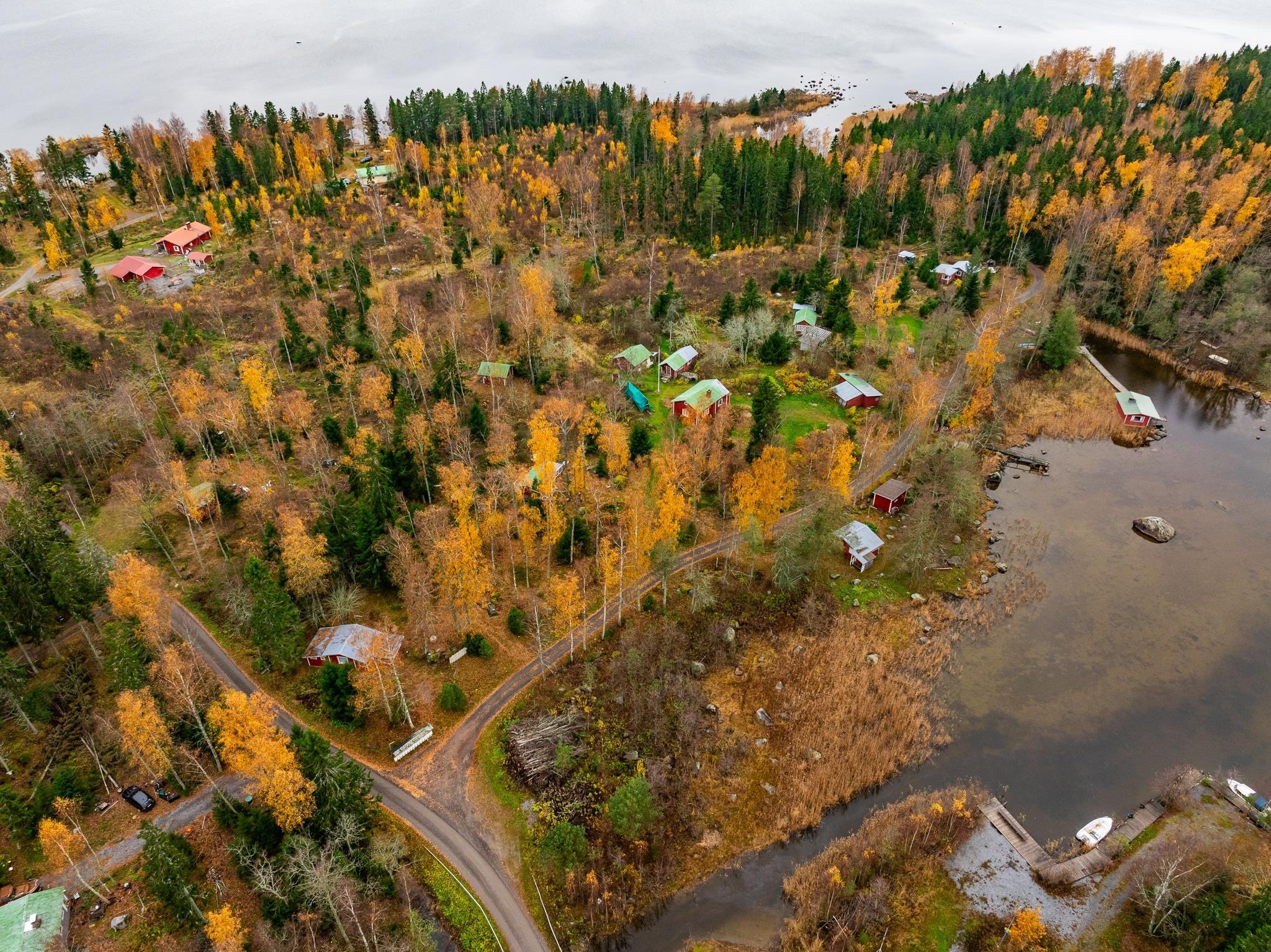 Erotettava määräala käsittää noin kahden hehtaarin alueen, jolla kymmenkunta rakennusta. Rantasauna aivan rantaviivassa.