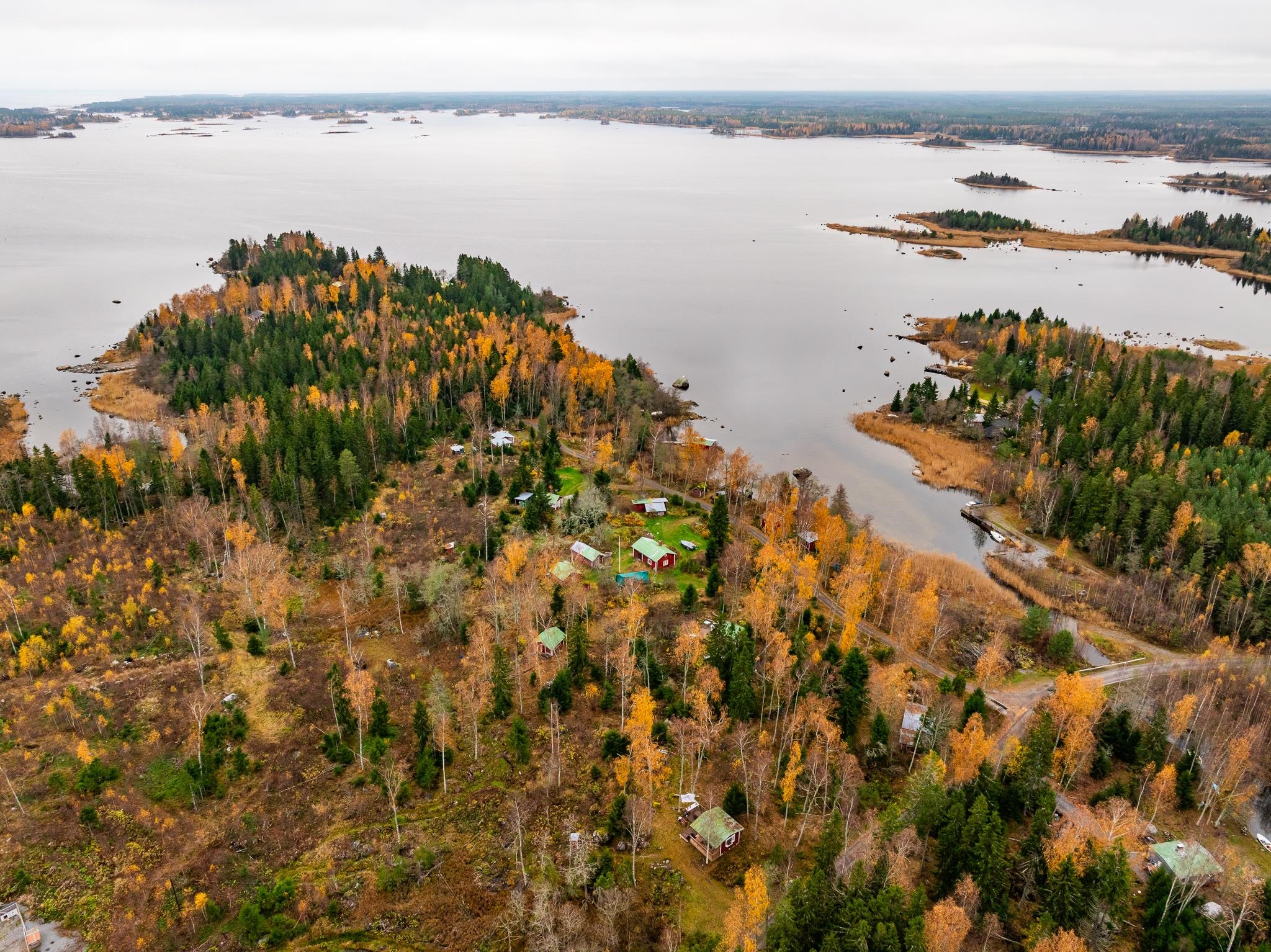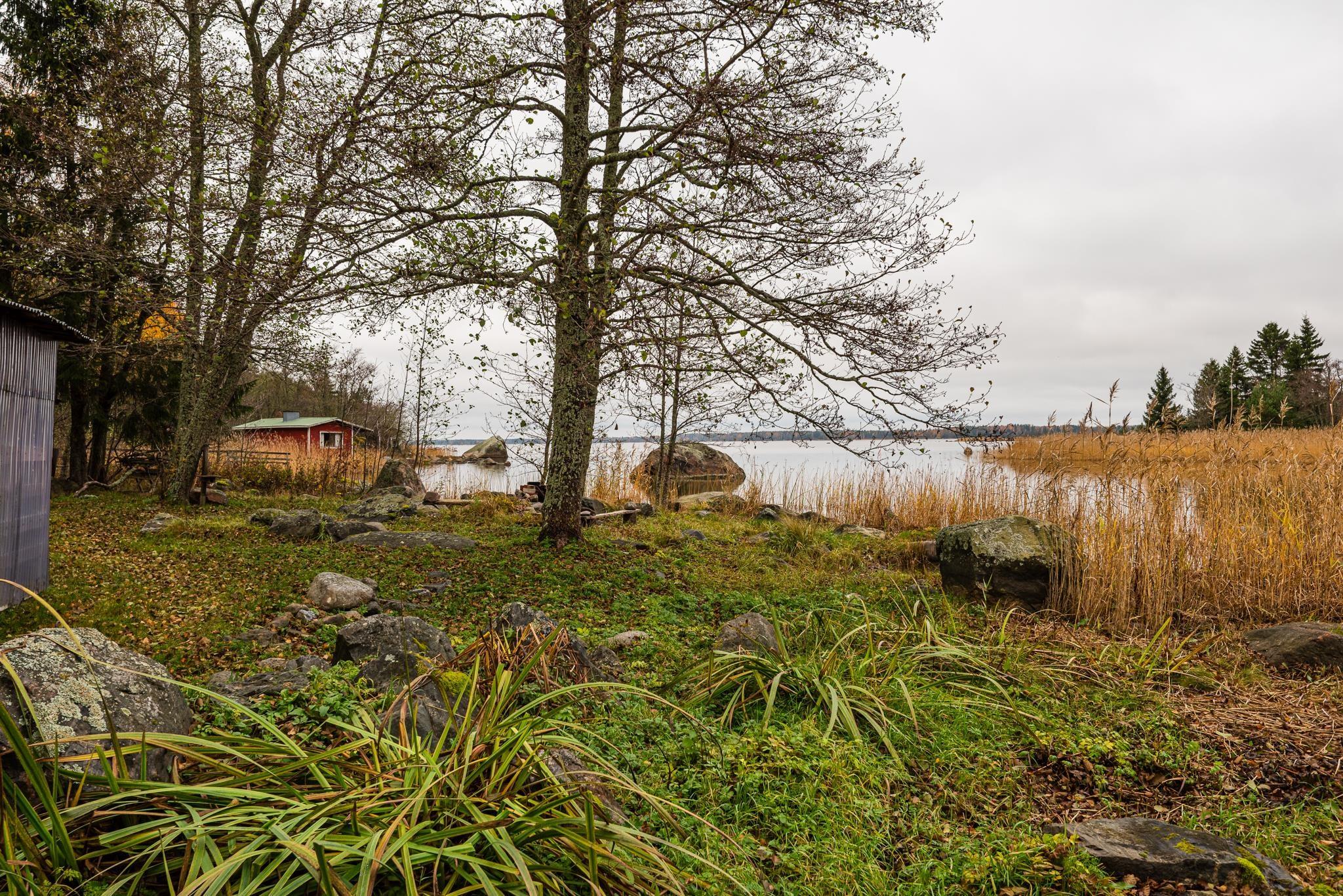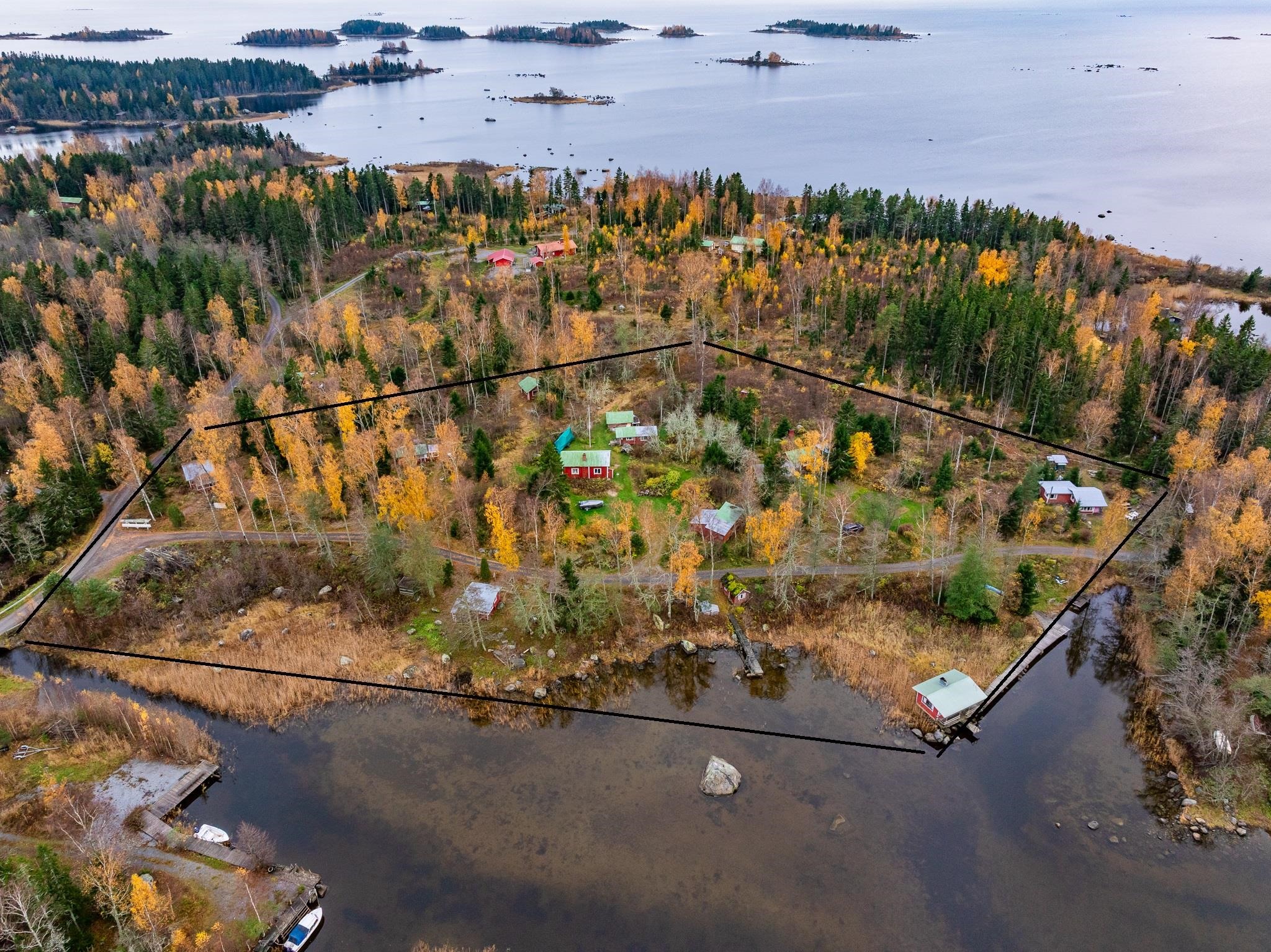 Erotettava määräala käsittää noin kahden hehtaarin alueen, jolla kymmenkunta rakennusta. Rantasauna aivan rantaviivassa.