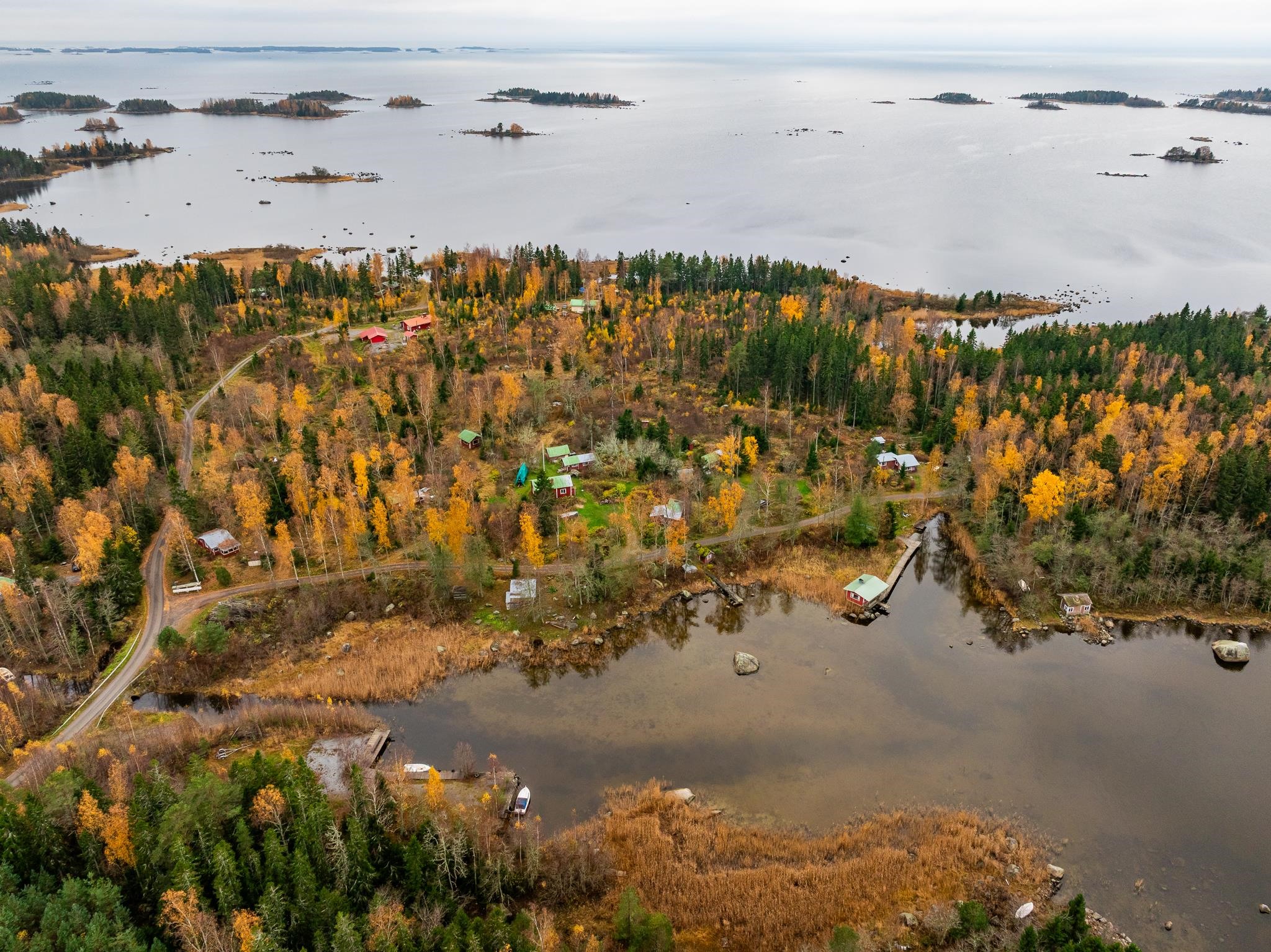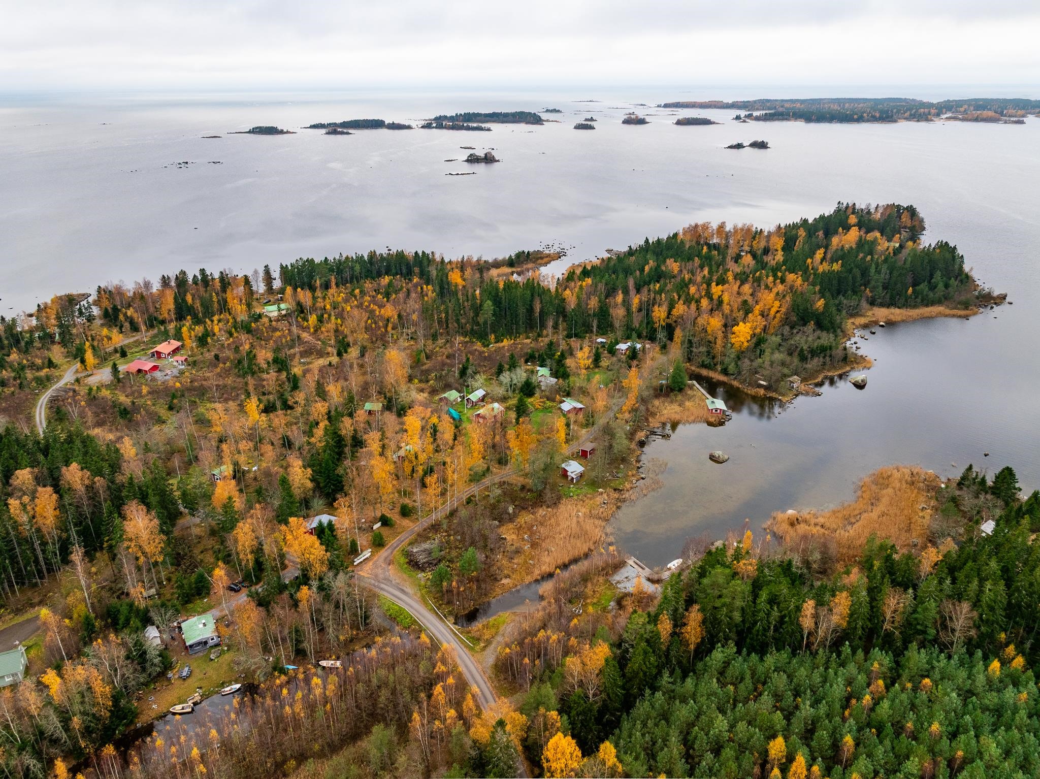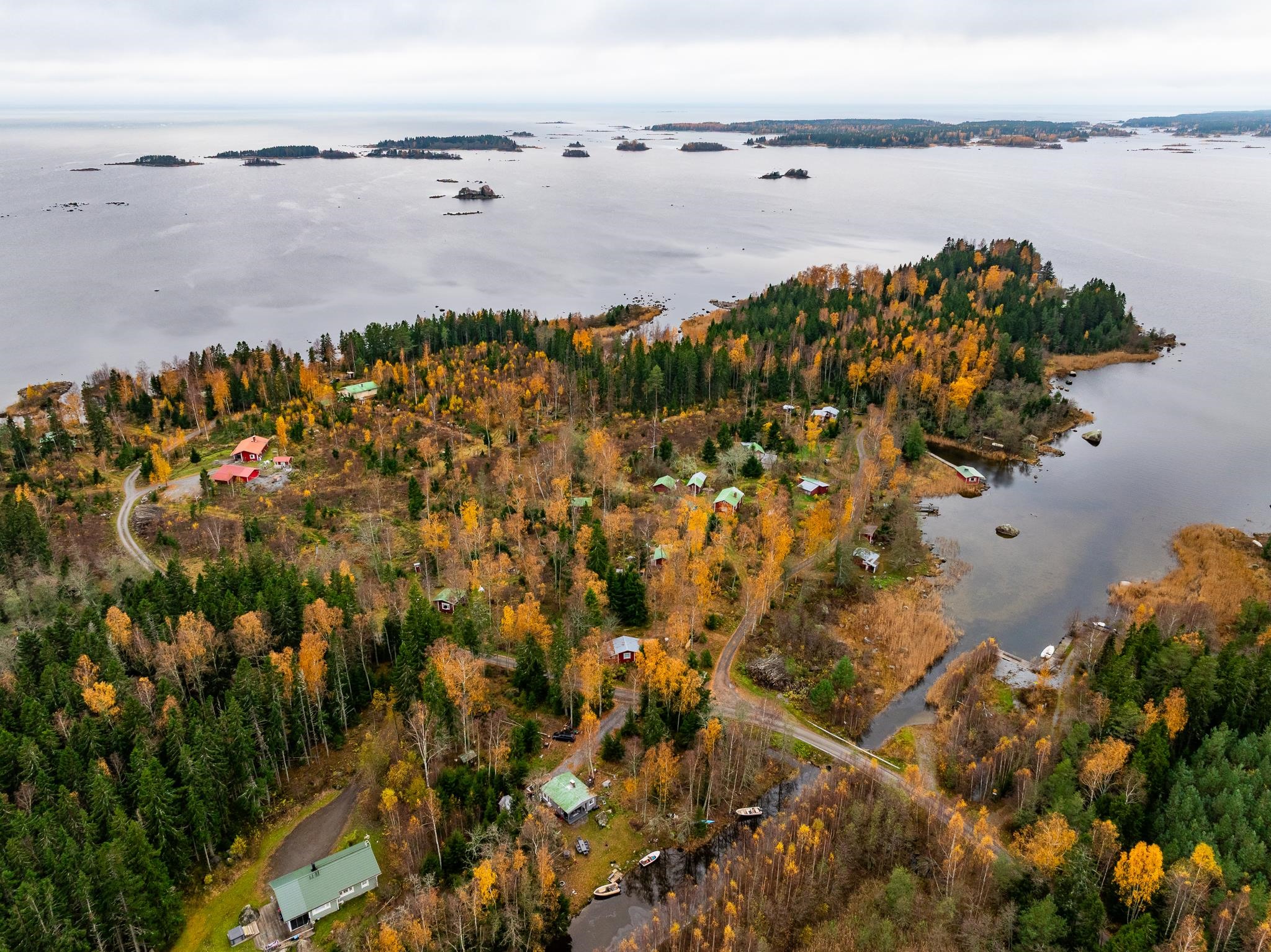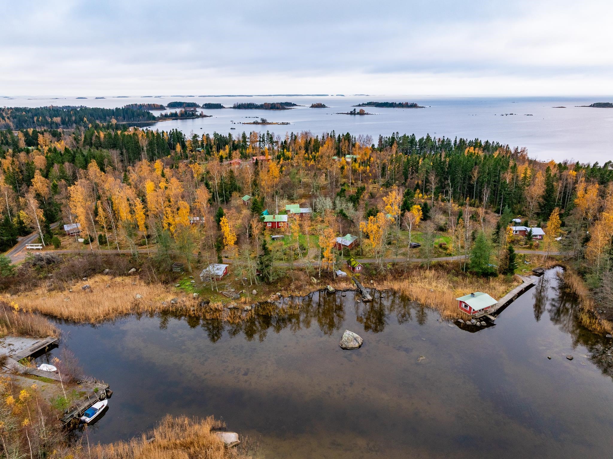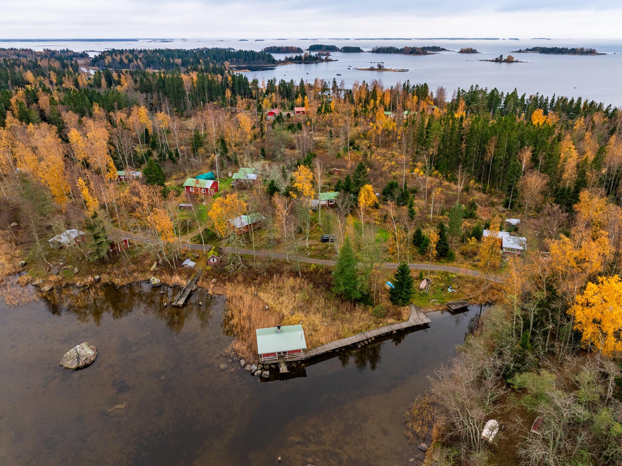 Merikarvian Lankosluodossa lomakylämäinen kokonaisuus.