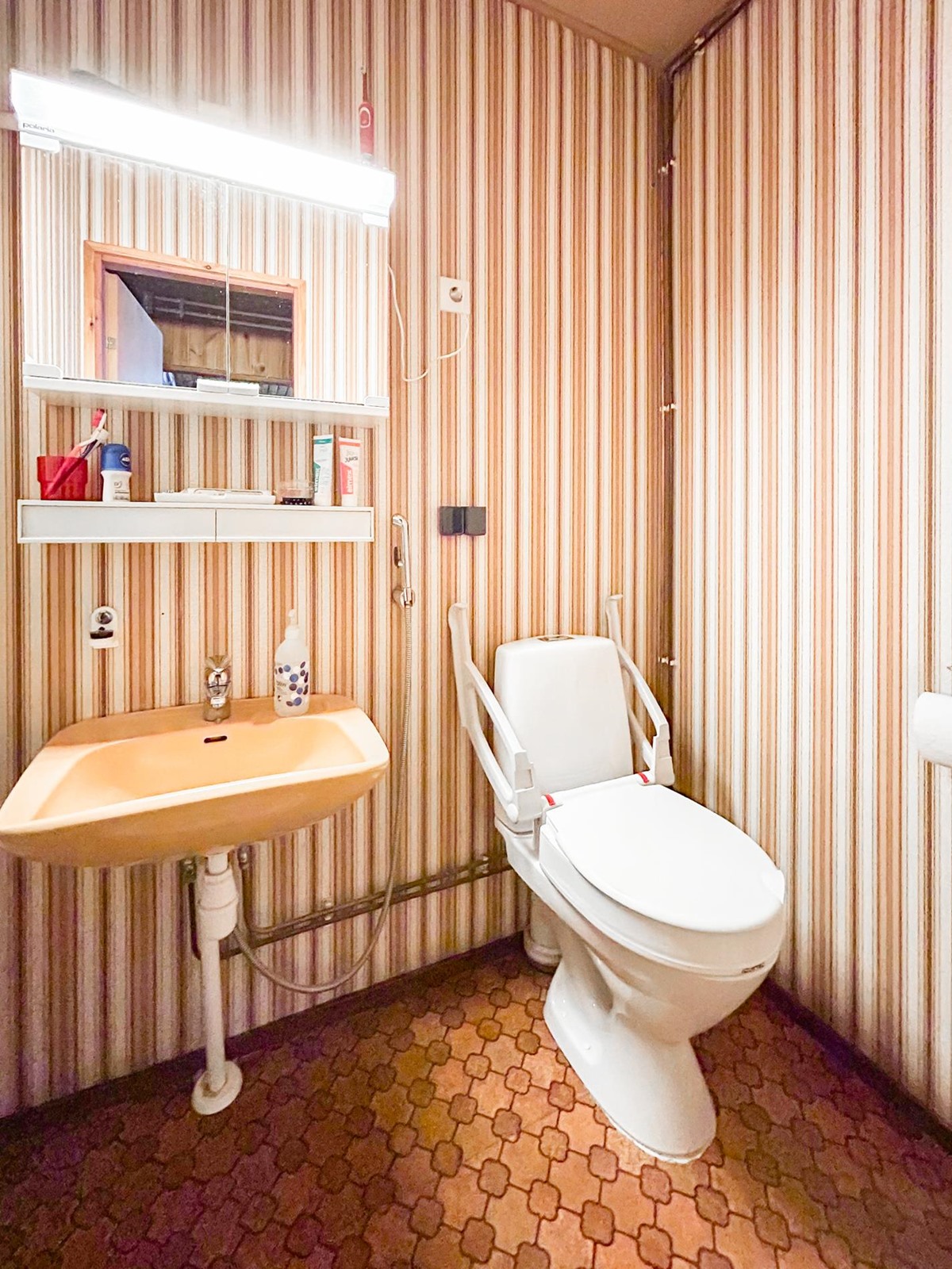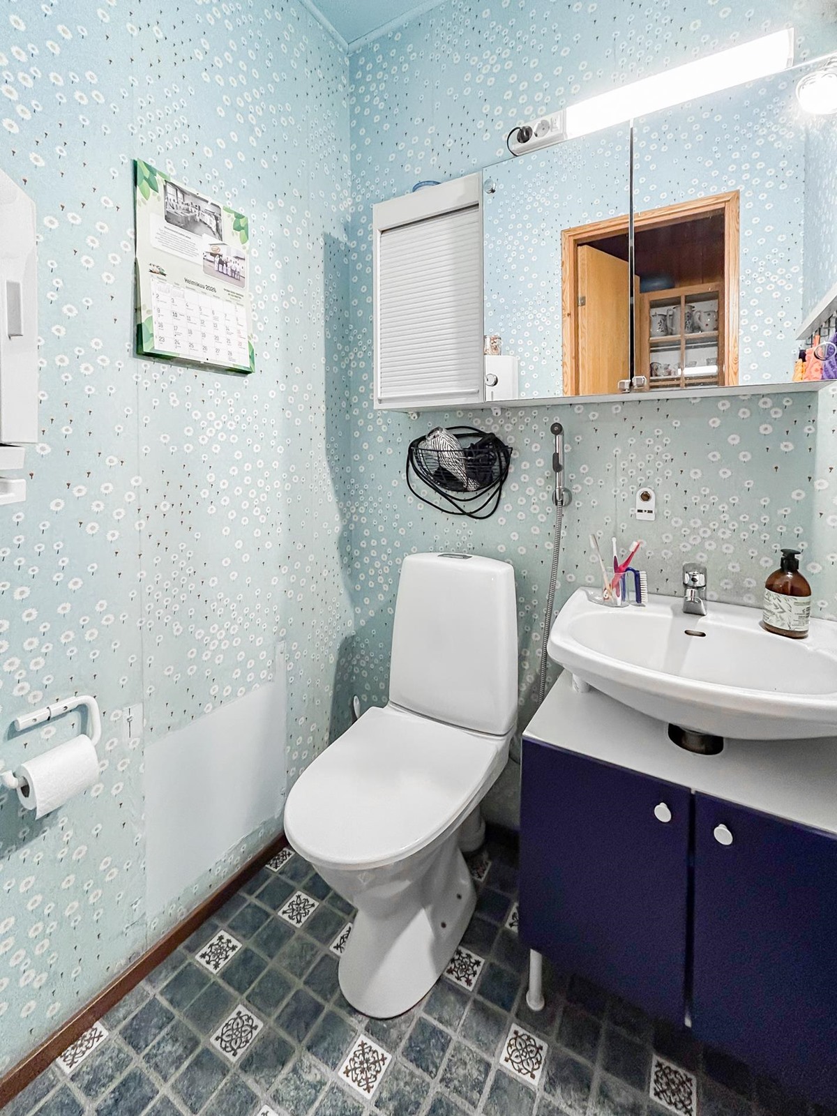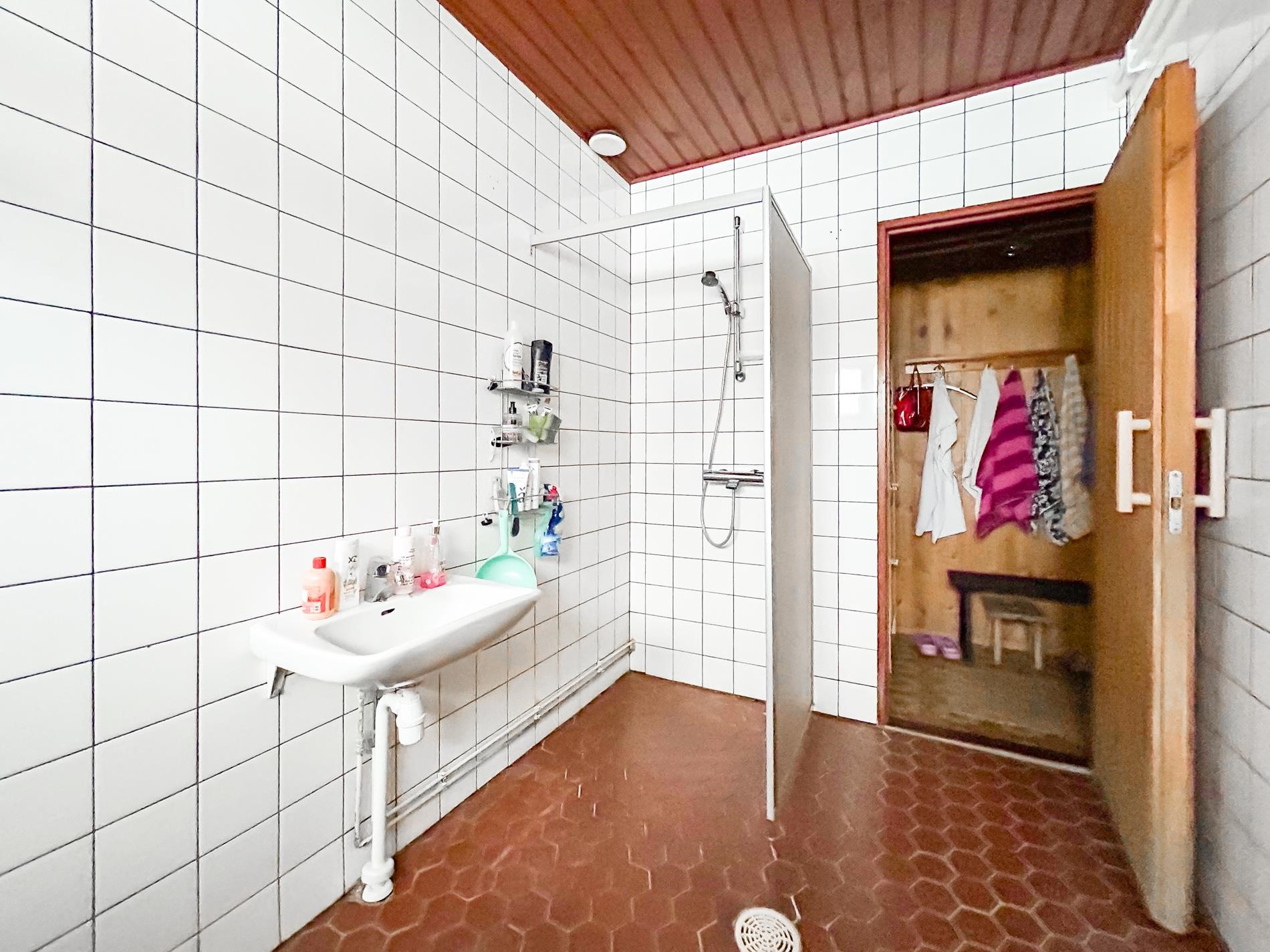 - Saunassa sähkökiuas, kylpyhuone, suihku, pesukoneliitäntä, kiinteät valaisimet. Kaksi erillistä wc:tä, peilikaappi, allaskaappi,