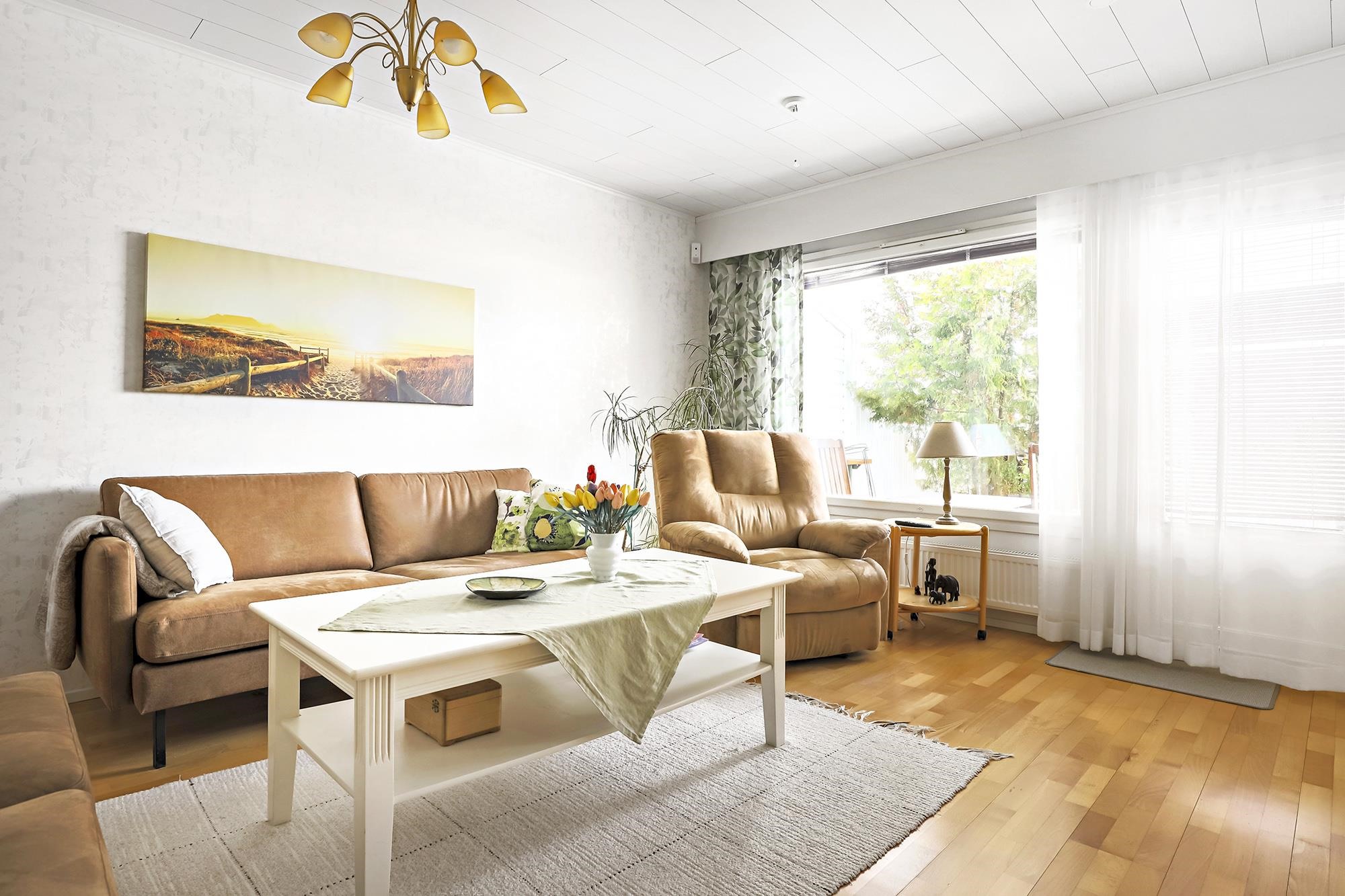 Kodissa on toimiva pohjaratkaisu ja käytännölliset säilytystilat. Suojaisalla pihalla voit nauttia kesäpäivistä.