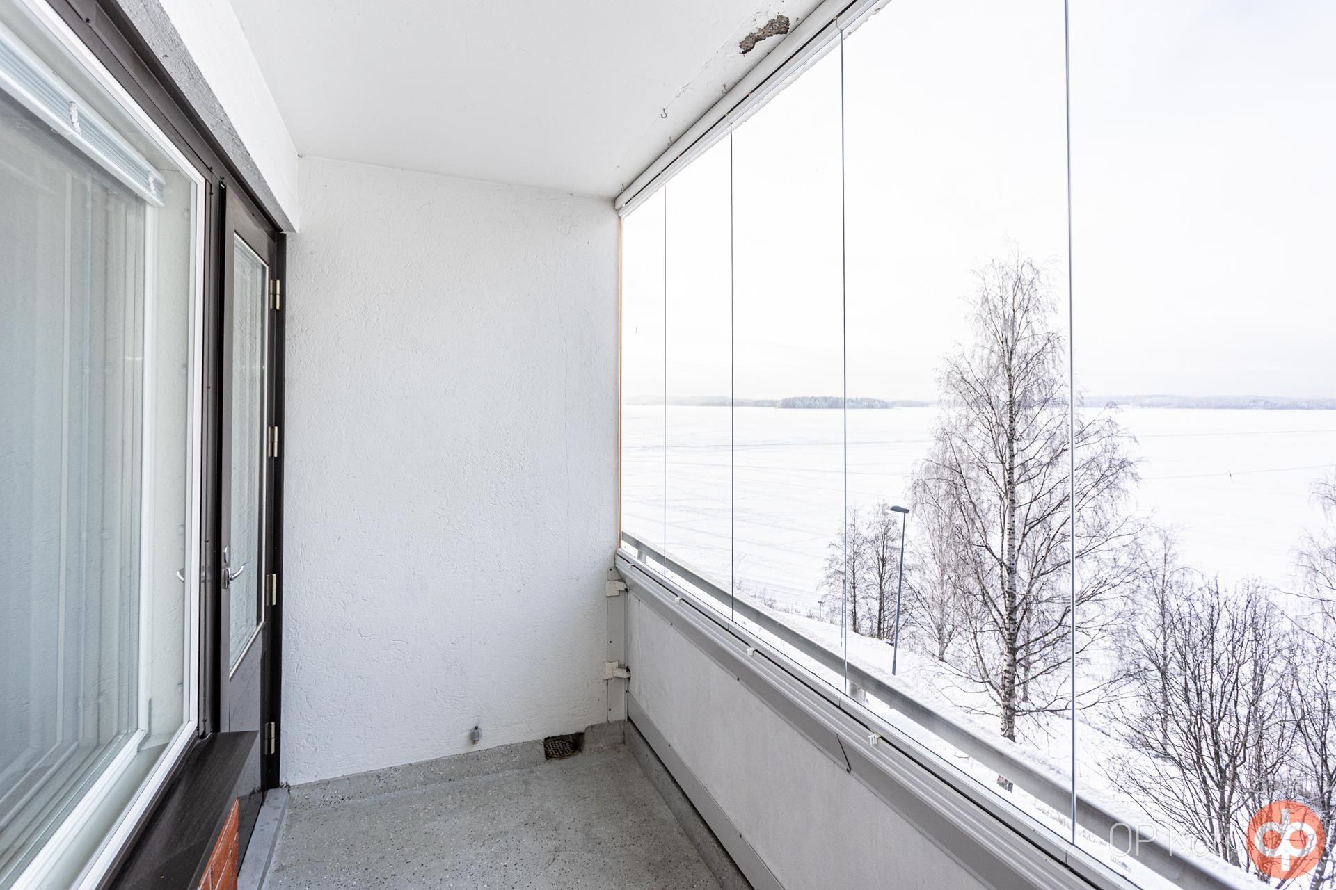 Tämän kolmion ehdoton valtti on upea järvinäköala, joka avautuu ylimmän kerroksen lasitetulta parvekkeelta länteen. Vuodenaikojen mukaan vaihtuva maisema luo kotiin rauhoittavan ja valoisan tunnelman.