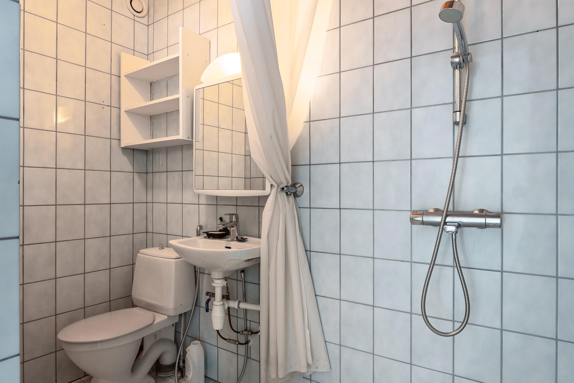 - Kylpyhuone, suihku, peilikaappi, pesukoneliitäntä, kiinteät valaisimet.
