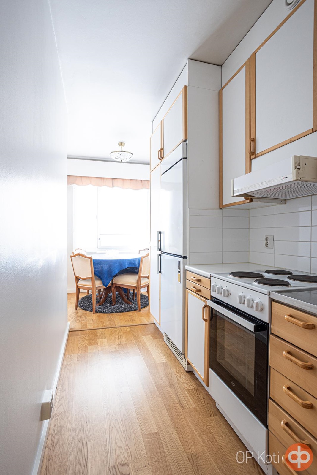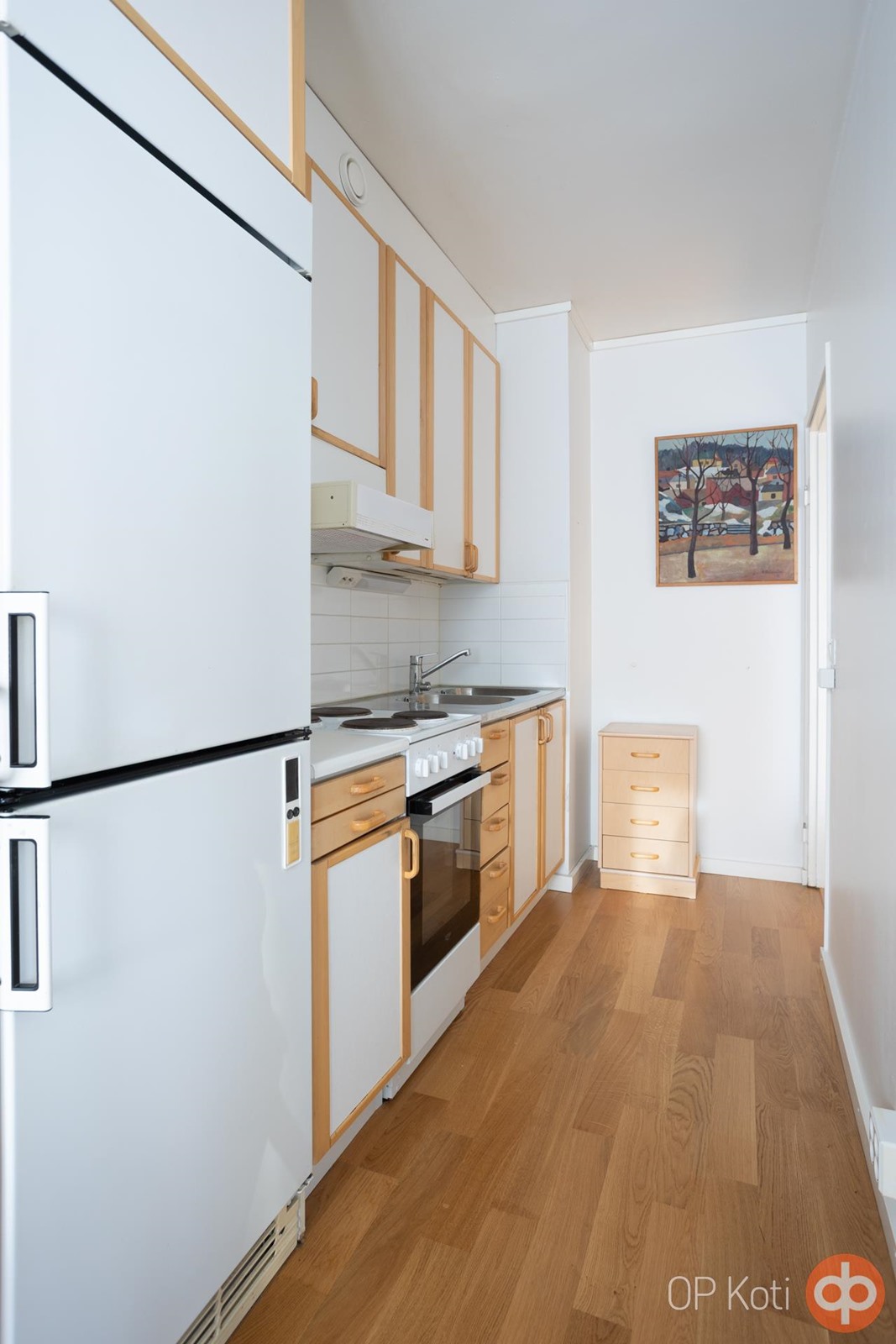 - Jääkaappipakastin, sähköliesi, liesituuletin, kaapistot, kiinteät valaisimet.