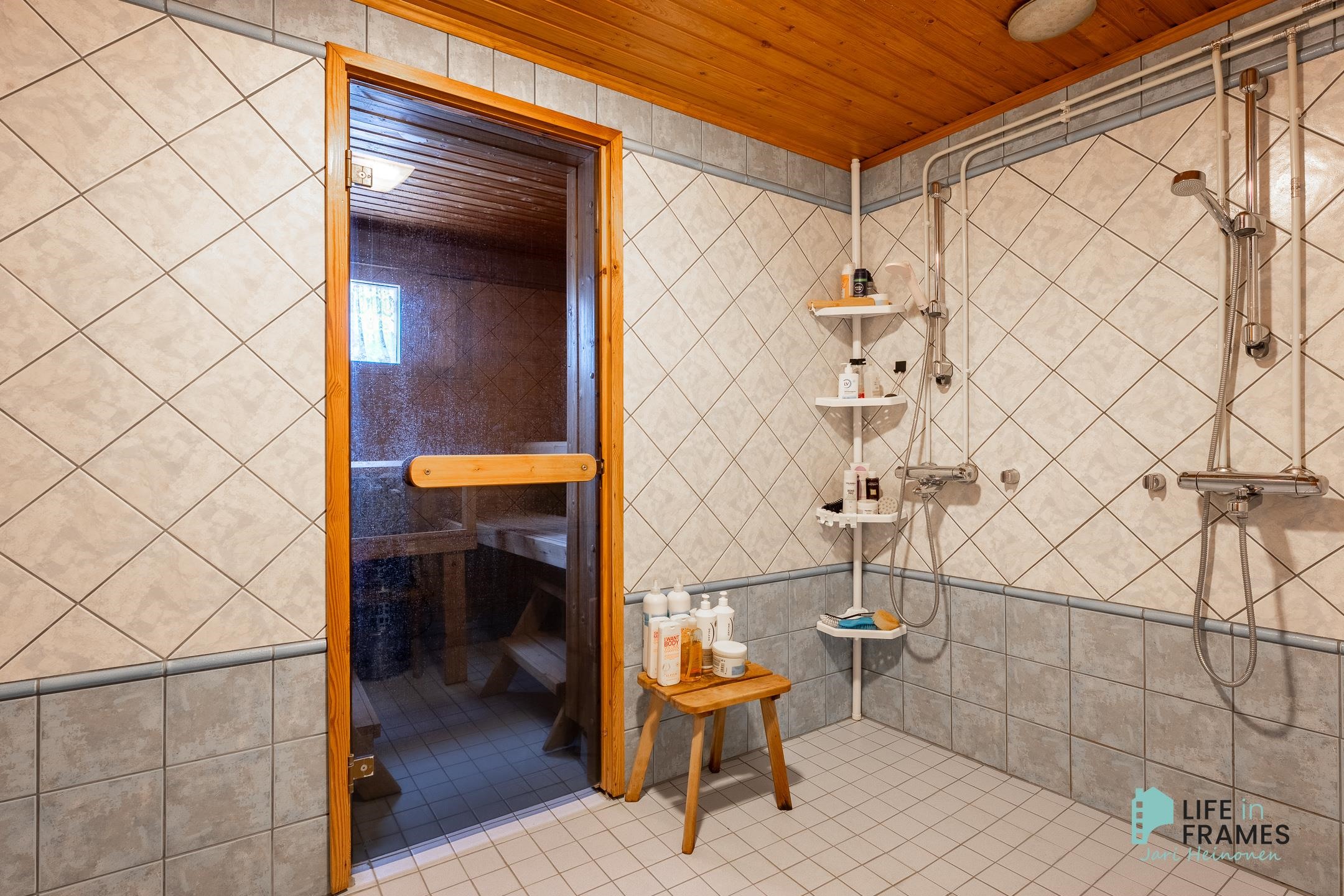 - Sauna, sähkökiuas, kylpyhuone, erillinen wc (3 kpl), suihku (2 kpl), pesukoneliitäntä, lattialämmitys (pesuhuone ja sauna), kiinteät valaisimet.