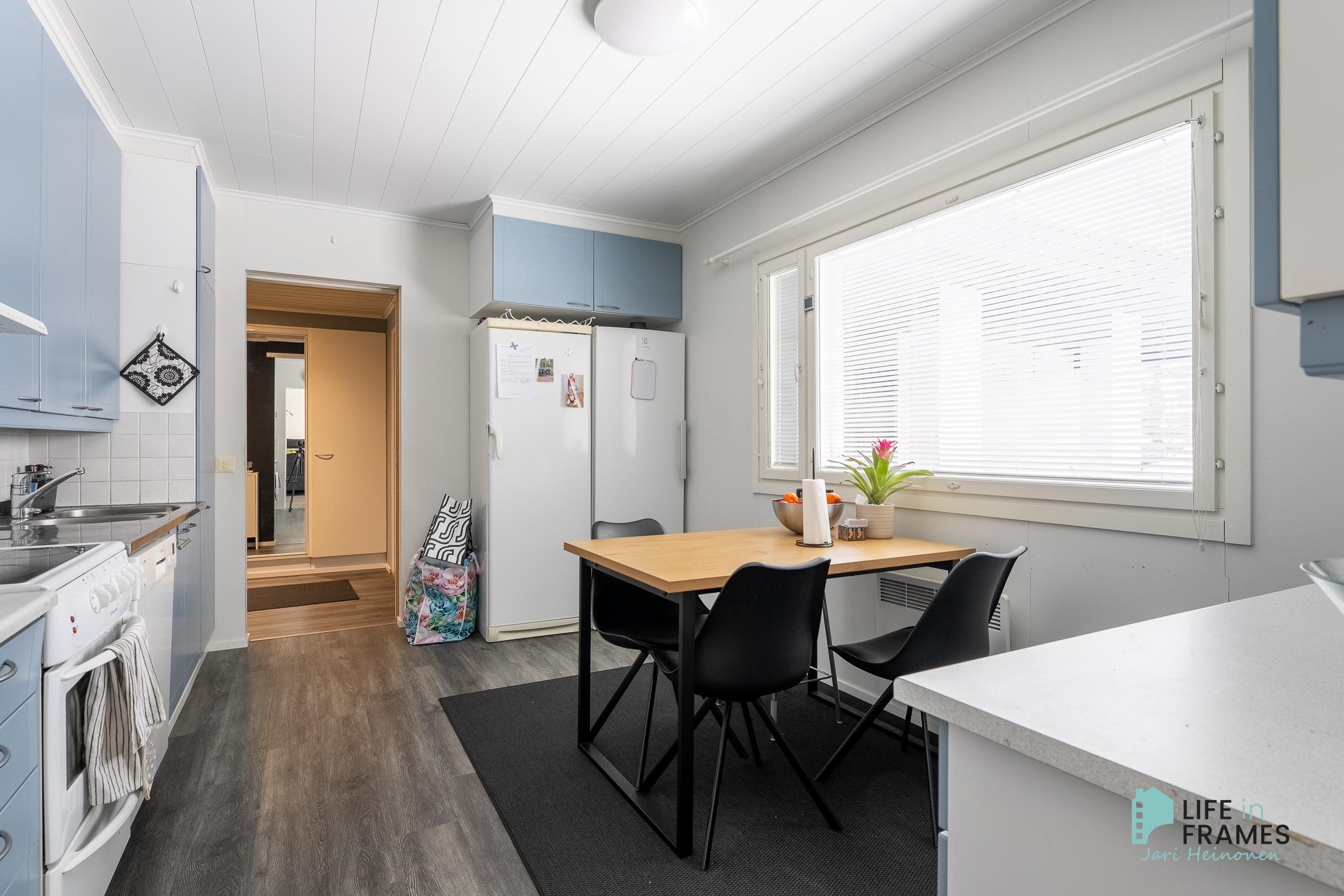- Jääkaappi, pakastekaappi, sähköliesi, liesituuletin, astianpesukone, kaapistot, kiinteät valaisimet.