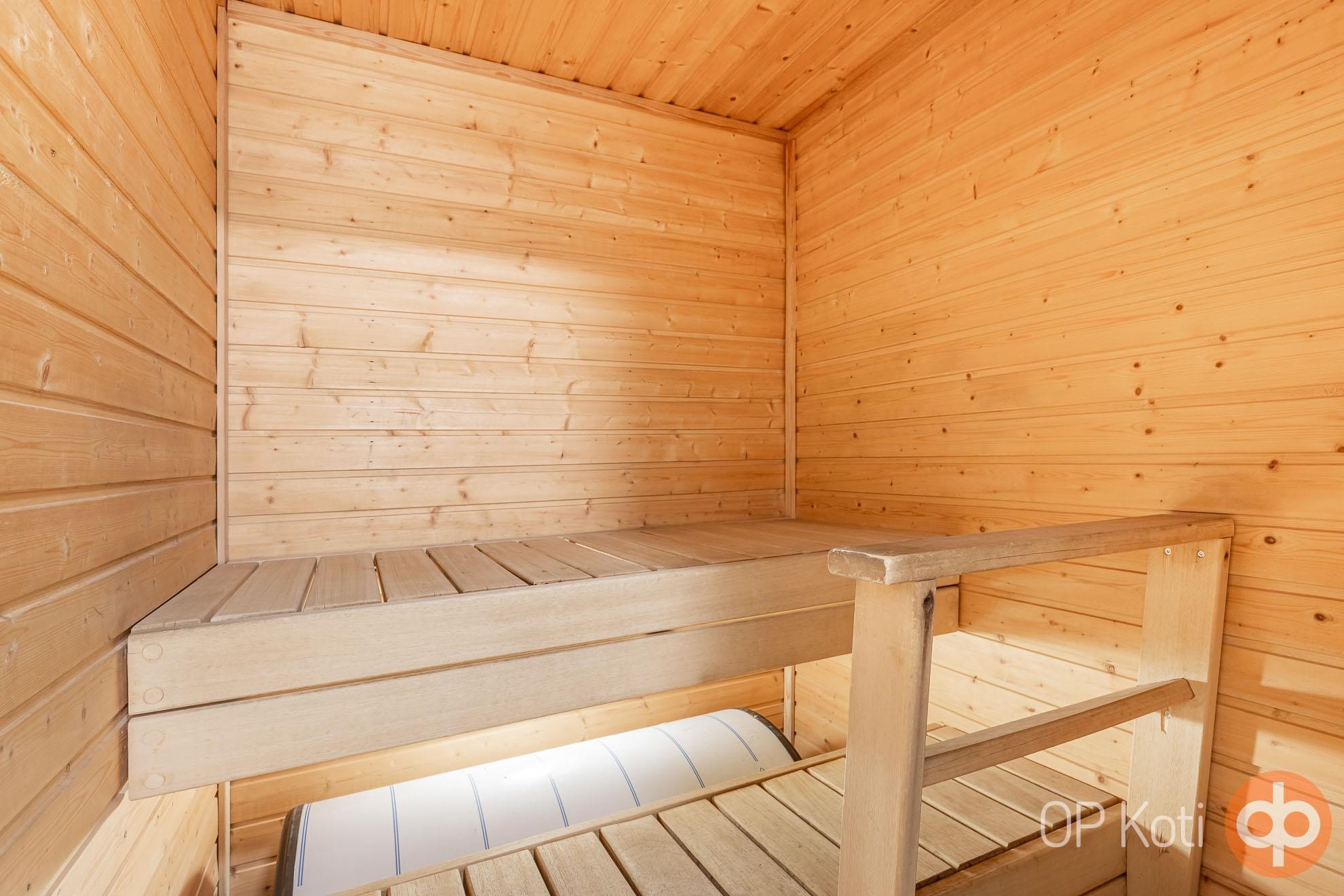 - Sauna, sähkökiuas, kylpyhuone, suihku, peilikaappi, allaskaappi, pesukoneliitäntä, lattialämmitys, kiinteät valaisimet. Sauna ja pesuhuone remontoitu v. 2023 Lämminvesivaraaja vaihdettu keittiöstä saunan lauteiden alle, uusittu samalla.