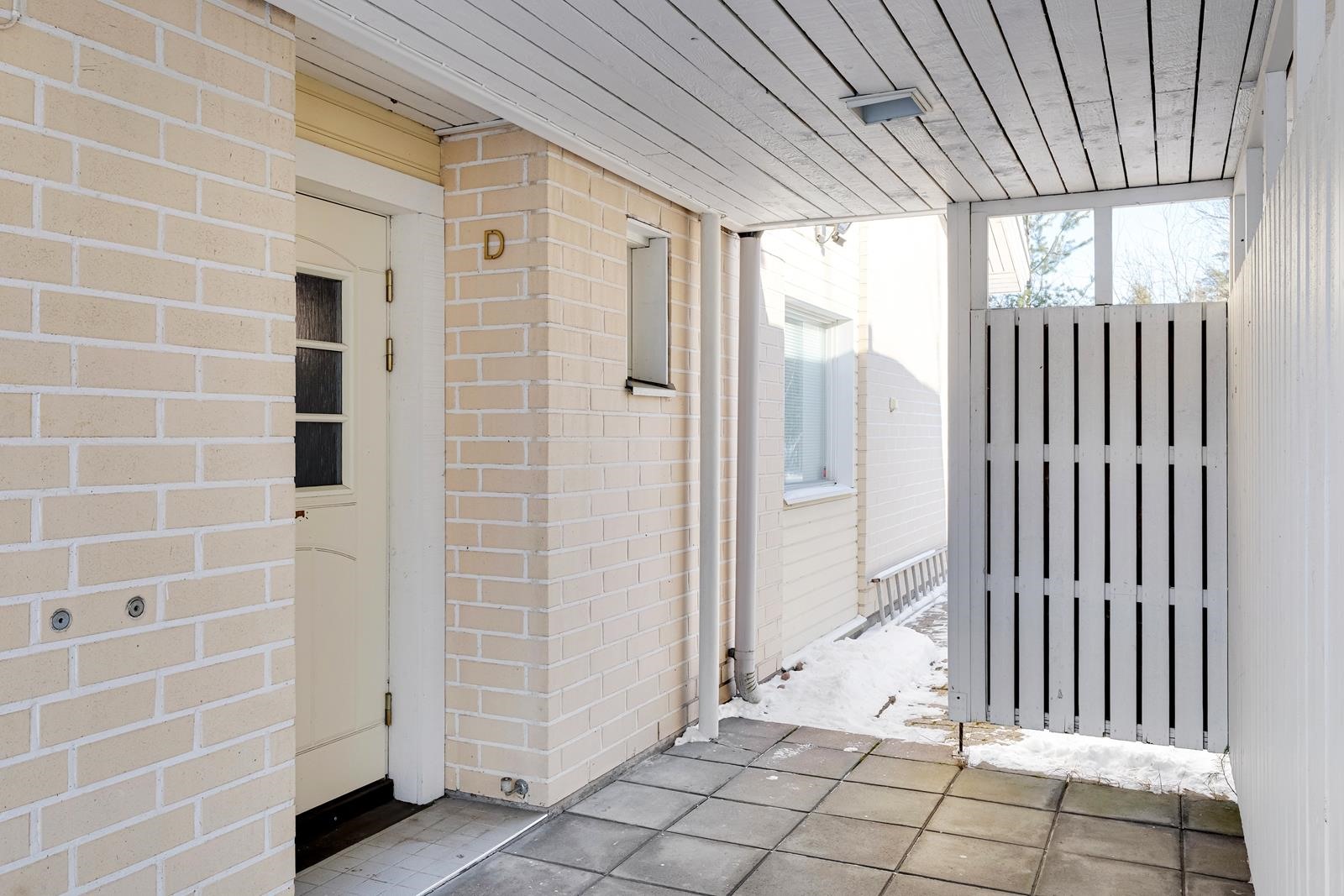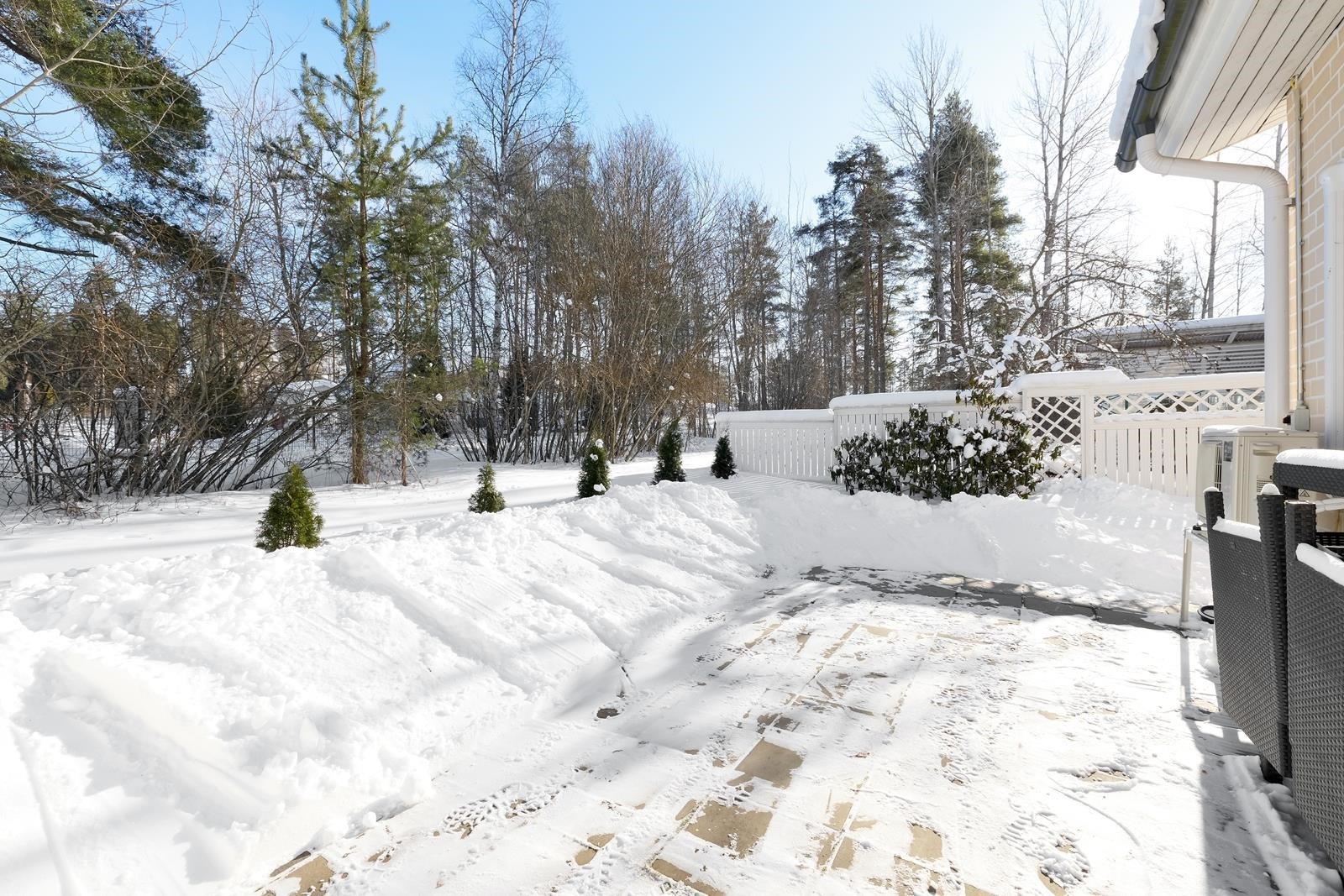 Kiva suojaisa oleskelupiha, terassilla tilaa kalusteille ym.