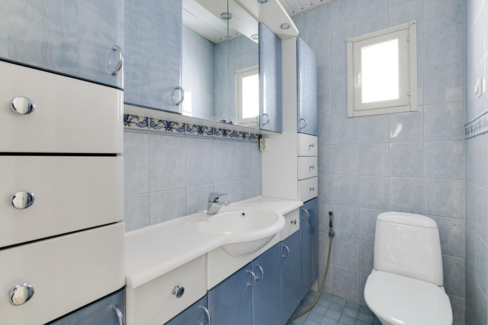 - Sauna, sähkökiuas, erillinen wc, suihku, peilikaappi, allaskaappi, pesukoneliitäntä, lattialämmitys kph, kiinteät valaisimet.