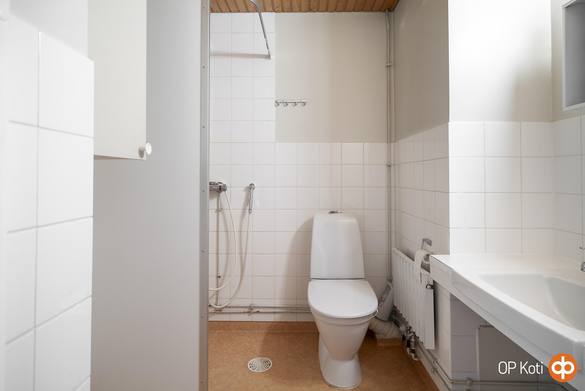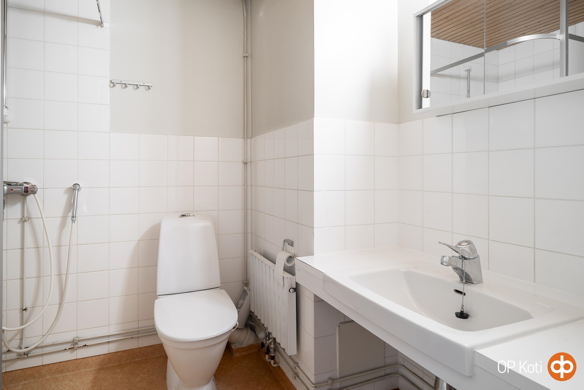 - Kylpyhuone, suihku, peilikaappi, pesukoneliitäntä, kiinteät valaisimet.