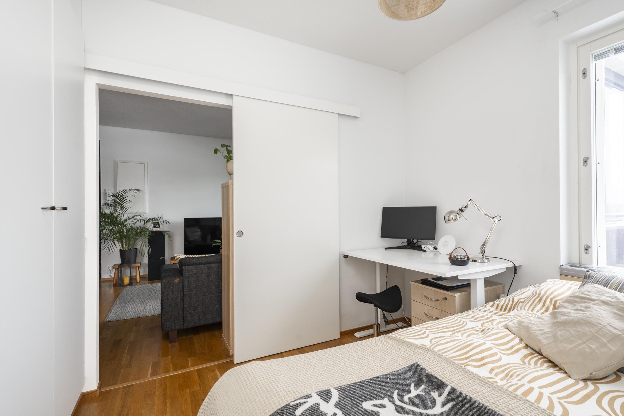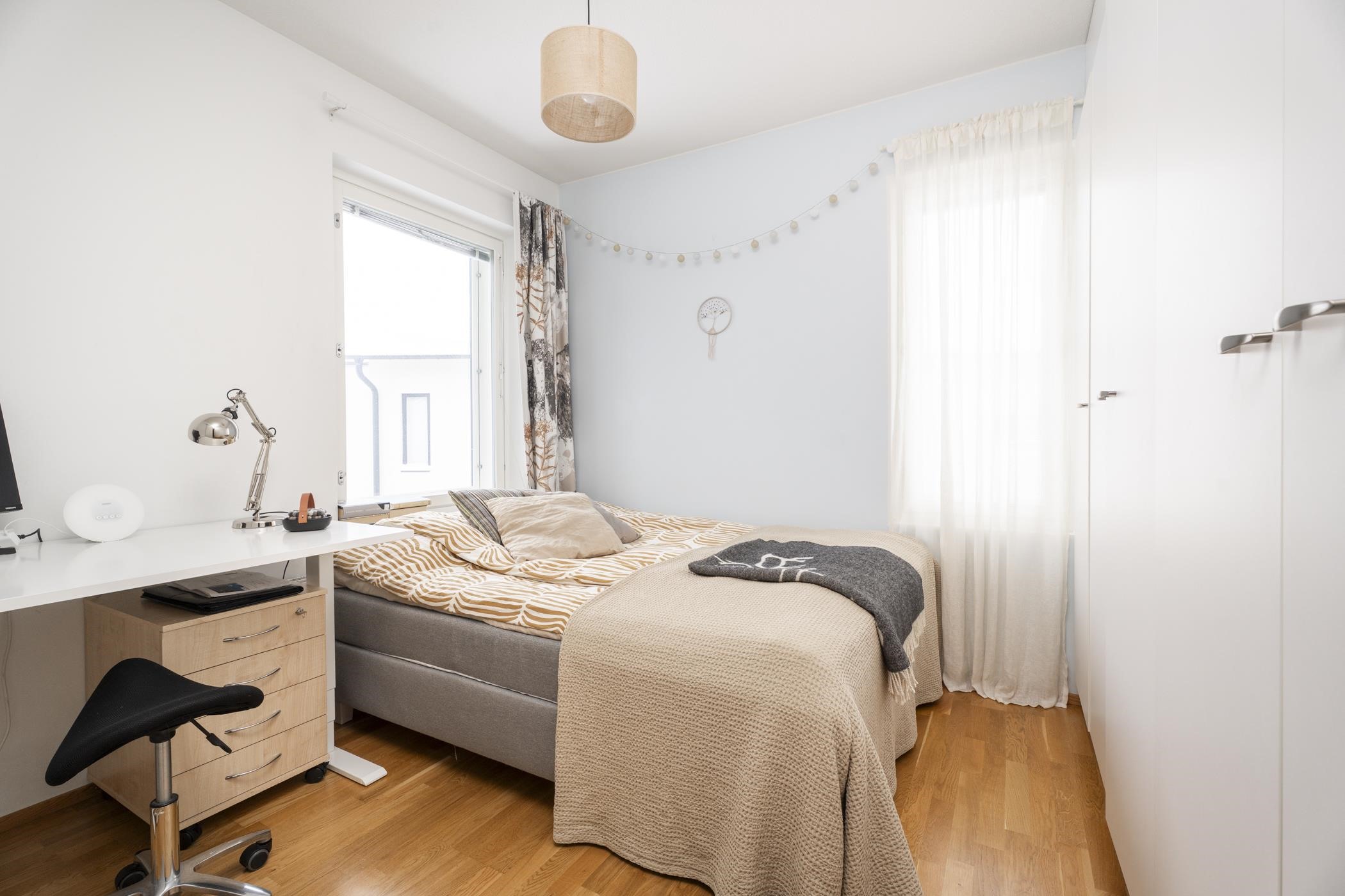 Tässä kodissa on tilava lasitettu parveke eikä saunan löylyihin halutessaan tarvitse lähteä omaa kotia pidemmälle. Säilytystiloista pitää huolen asunnossa oleva vaatehuone. Taloyhtiö on uudehko, joten remontteja ei ole suunnitteilla.