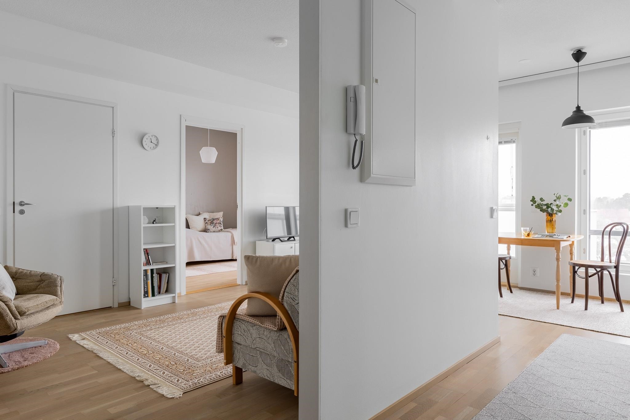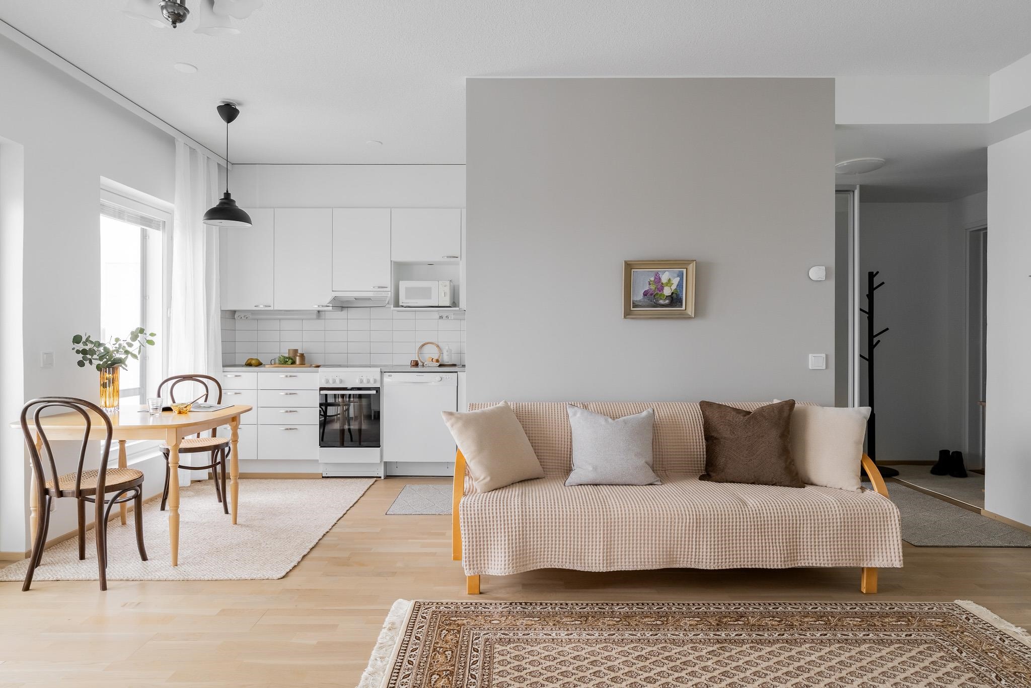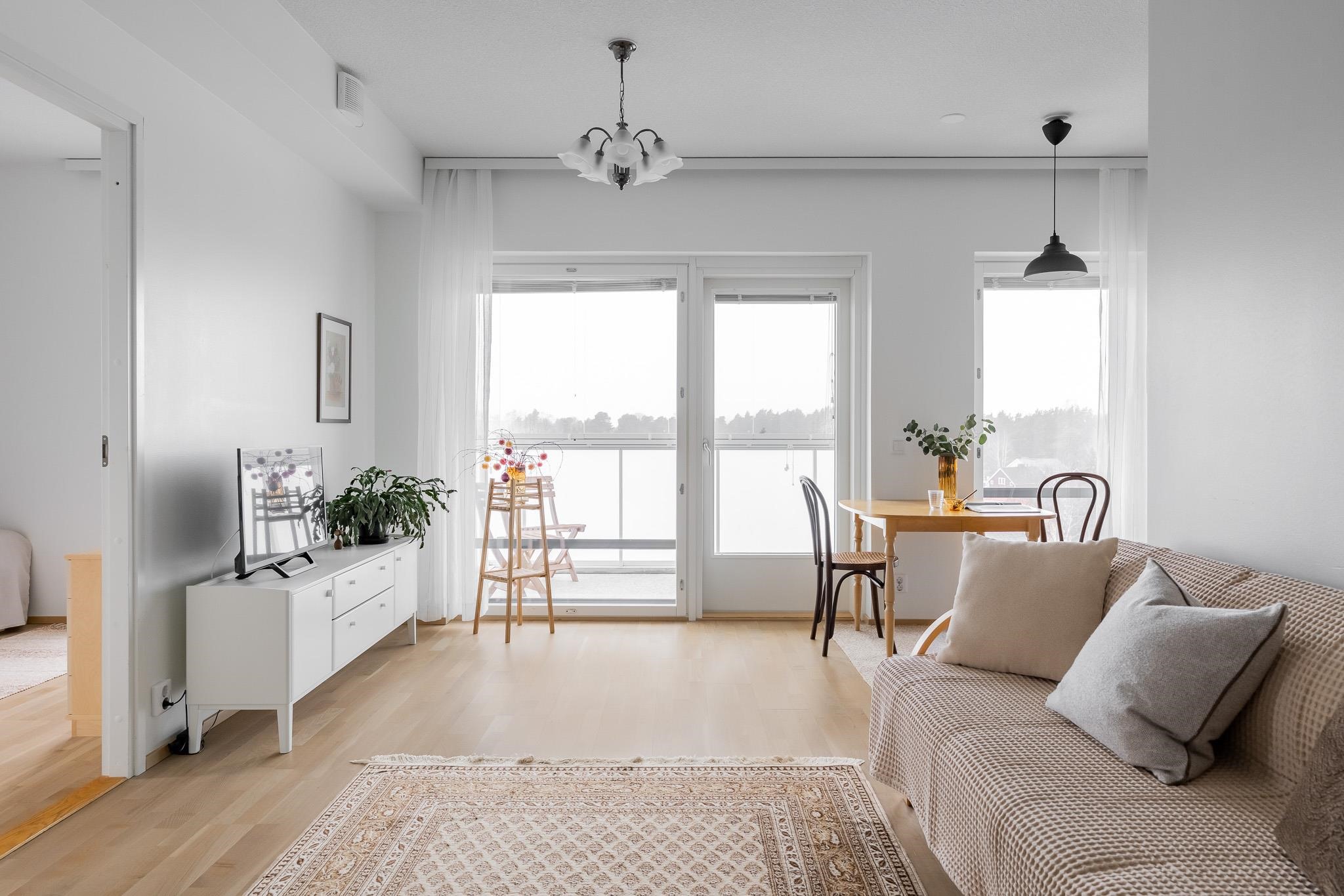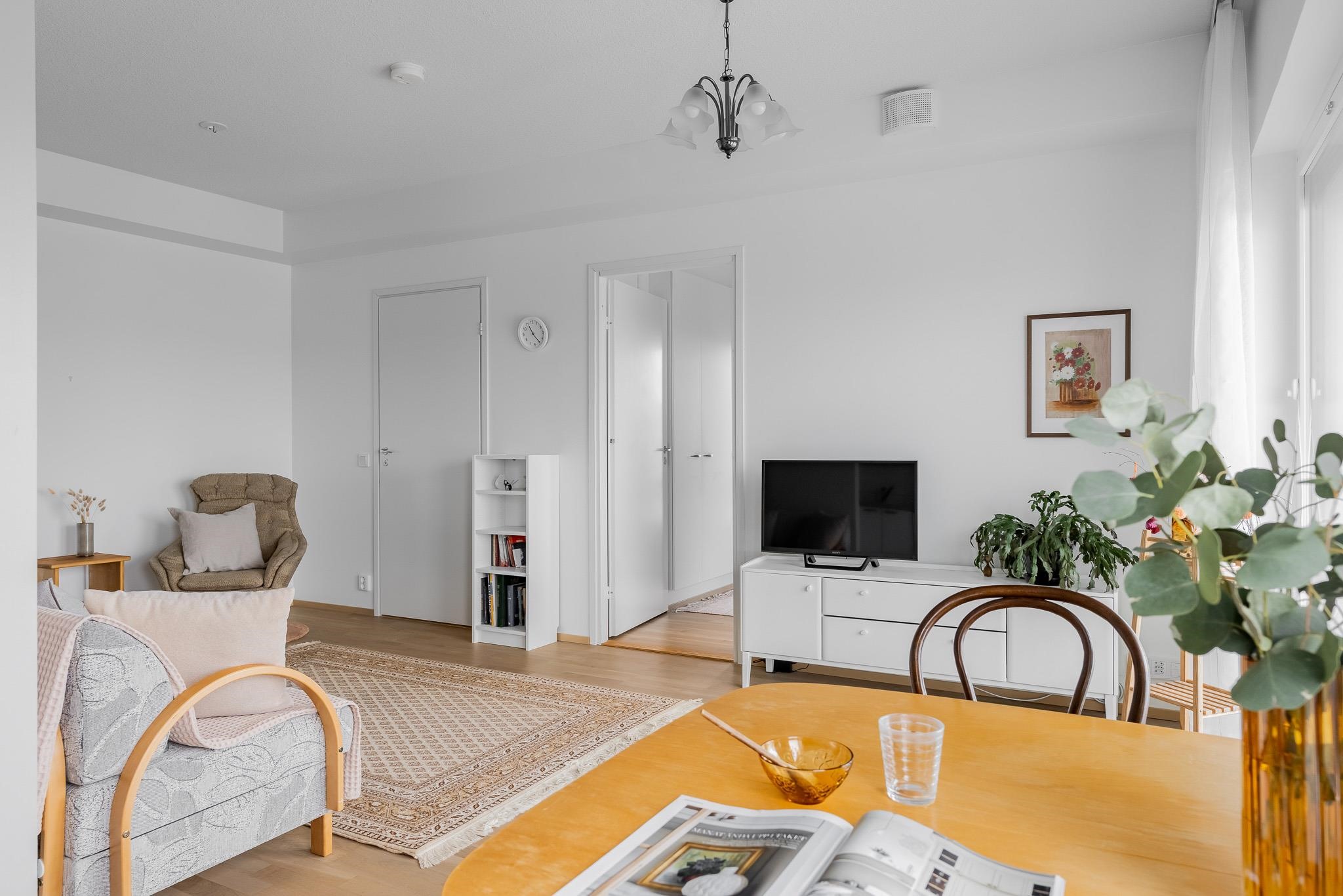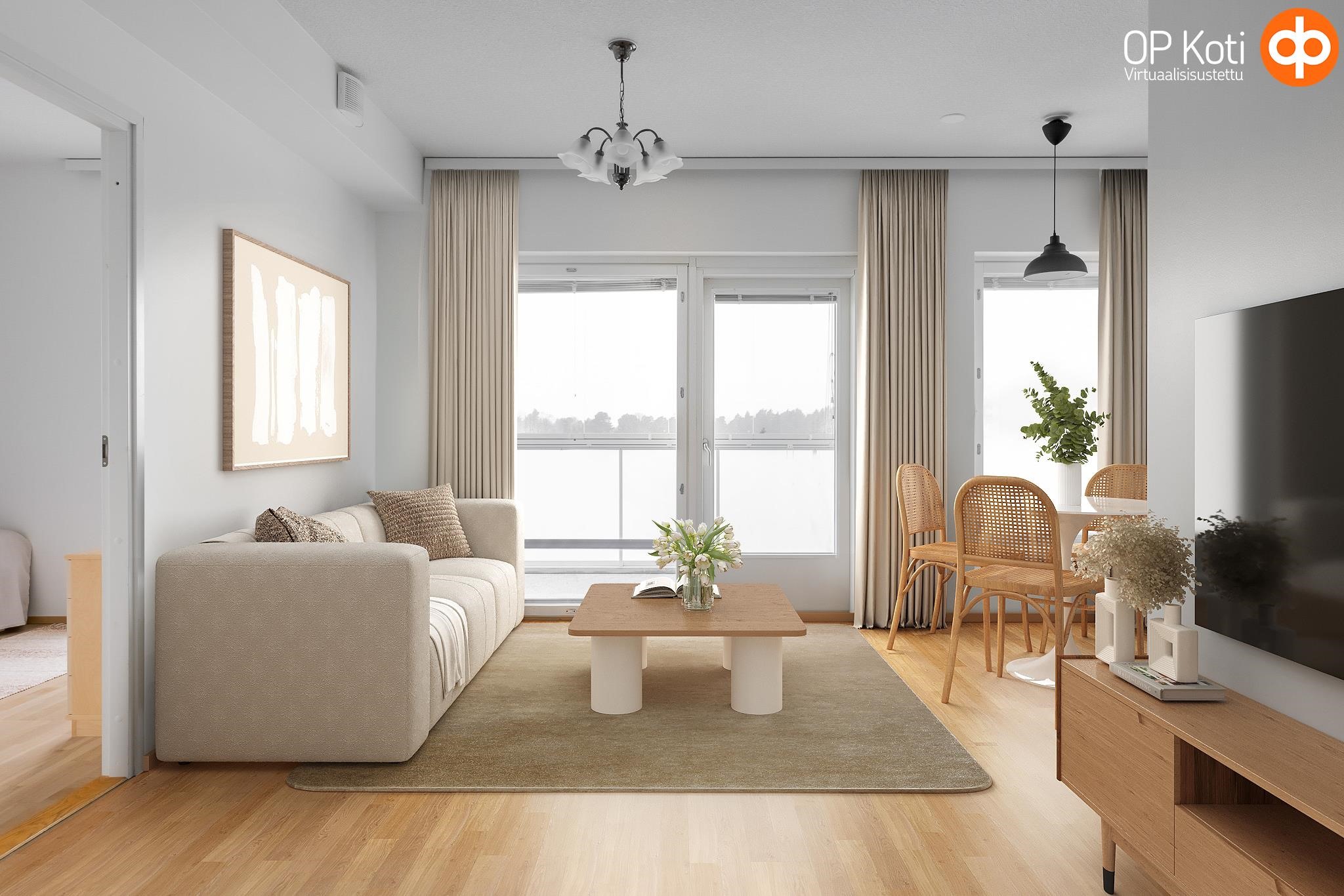 Tässä kuudennen kerroksen valoisassa 46m2:n asunnossa arki sujuu vaivattomasti. Asuntoon tullaan eteiseen, jossa peililiukuovikaappi kätkee ulkovaatteet. Keittiötila on osittain olohuoneen kanssa samaa tilaa, väliseinä tarjoaa näkösuojaa. Olohuoneeseen mahtuu ruokaryhmän lisäksi oleskeluryhmä. Tilasta on käynti lasitetulle parvekkeelle, josta näkymät ovat sataman suuntaan. Makuuhuoneessa on hyvin säilytystilaa. Kylpyhuone on tilava, siellä on asumismukavuutta lisäävä lattialämmitys. Lattiat ovat tammiparkettia, seinät maalatut, joten voit helposti vaihtaa väritystä tai tapetoida mieleiseksesi. Kylpyhuoneessa on neutraalit mutta tyylikkäät harmaa-valkoiset laatat. Huoneistossa on huoneistokohtainen ilmanvaihto lämmön talteenotolla ja miellyttävä vesikiertoinen lattialämmitys. Säilytystilaa löytyy lisää taloyhtiön kellarista. Iso-Heikkilä on asuinalue, jossa arjen palvelut löytyvät läheltä. Lähikaupat, liikuntamahdollisuudet ja hyvät liikenneyhteydet keskustaan tekevät sijainnista käytännöllisen. Alueen pihat ja viheralueet ovat yhteiskäytössä naapuritaloyhtiöiden kanssa. Jos haluat tutustua tähän kotiin tarkemmin, sovi esittely välittäjän kanssa. Yhteystiedot: Kirsi Kivimäki, puh. 050 478 3158 tai kirsi.kivimaki@op.fi