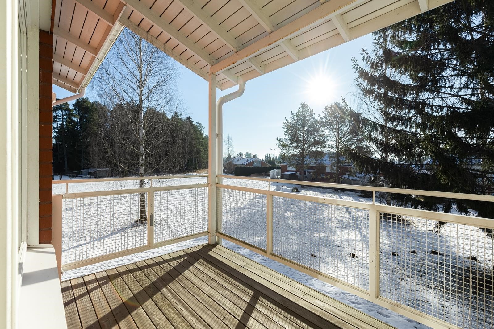 Kolmiossa on kaksi tilavaa makuuhuonetta, valoisa olohuone, keittiö, oma sauna sekä erillinen kylpyhuone ja wc. Keittiössä on runsaasti kaappitilaa sekä paikka ruokapöydälle. Olohuoneesta pääset parvekkeelle ja makuuhuoneissa on poikkeuksellisen paljon säilytysratkaisuja. Asuntoon kuuluu ulkovarasto ja mahdollisuus vuokrata autokatospaikka. Laajakaista ja kaapeli-TV kuuluvat varustukseen.