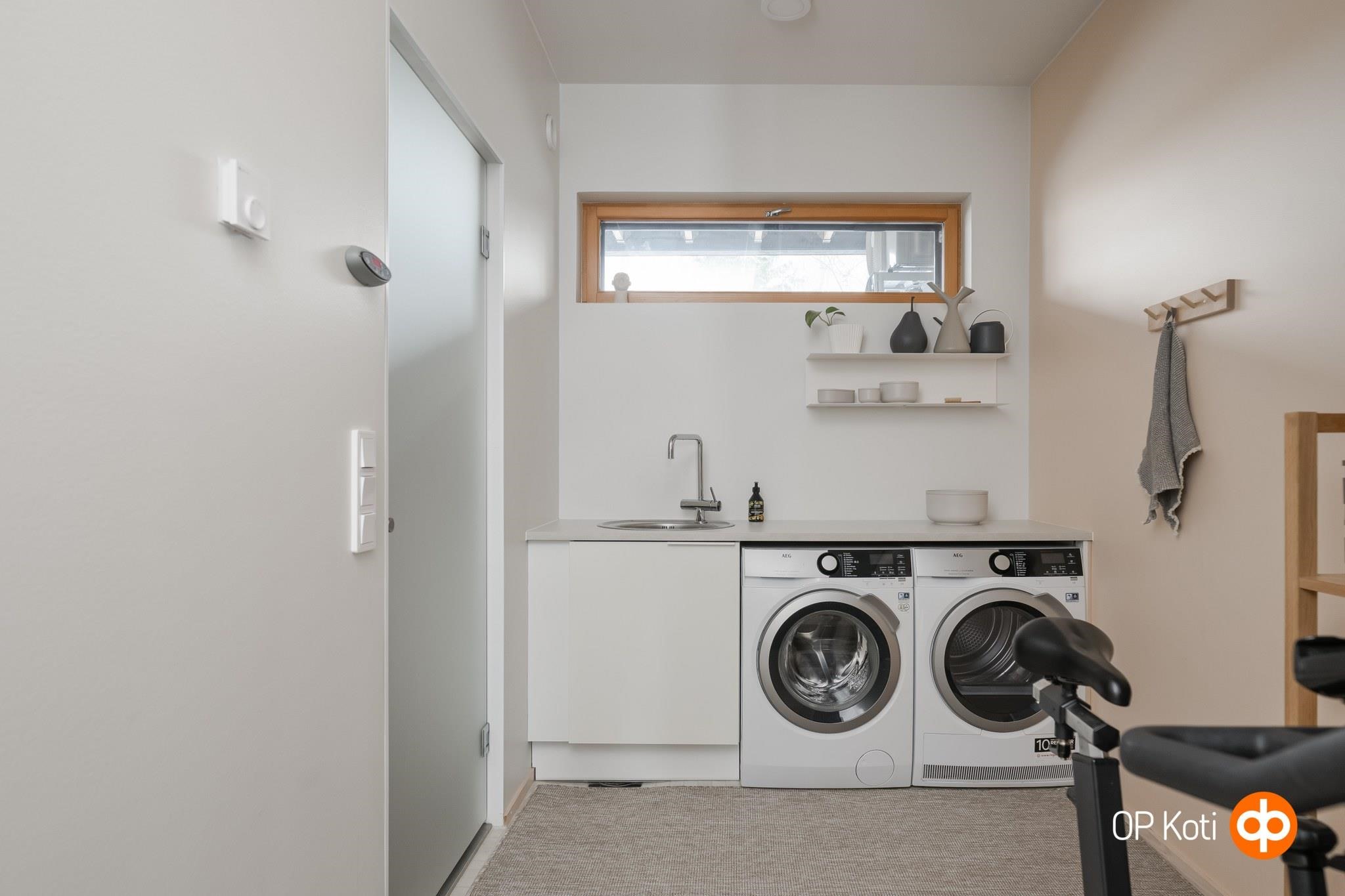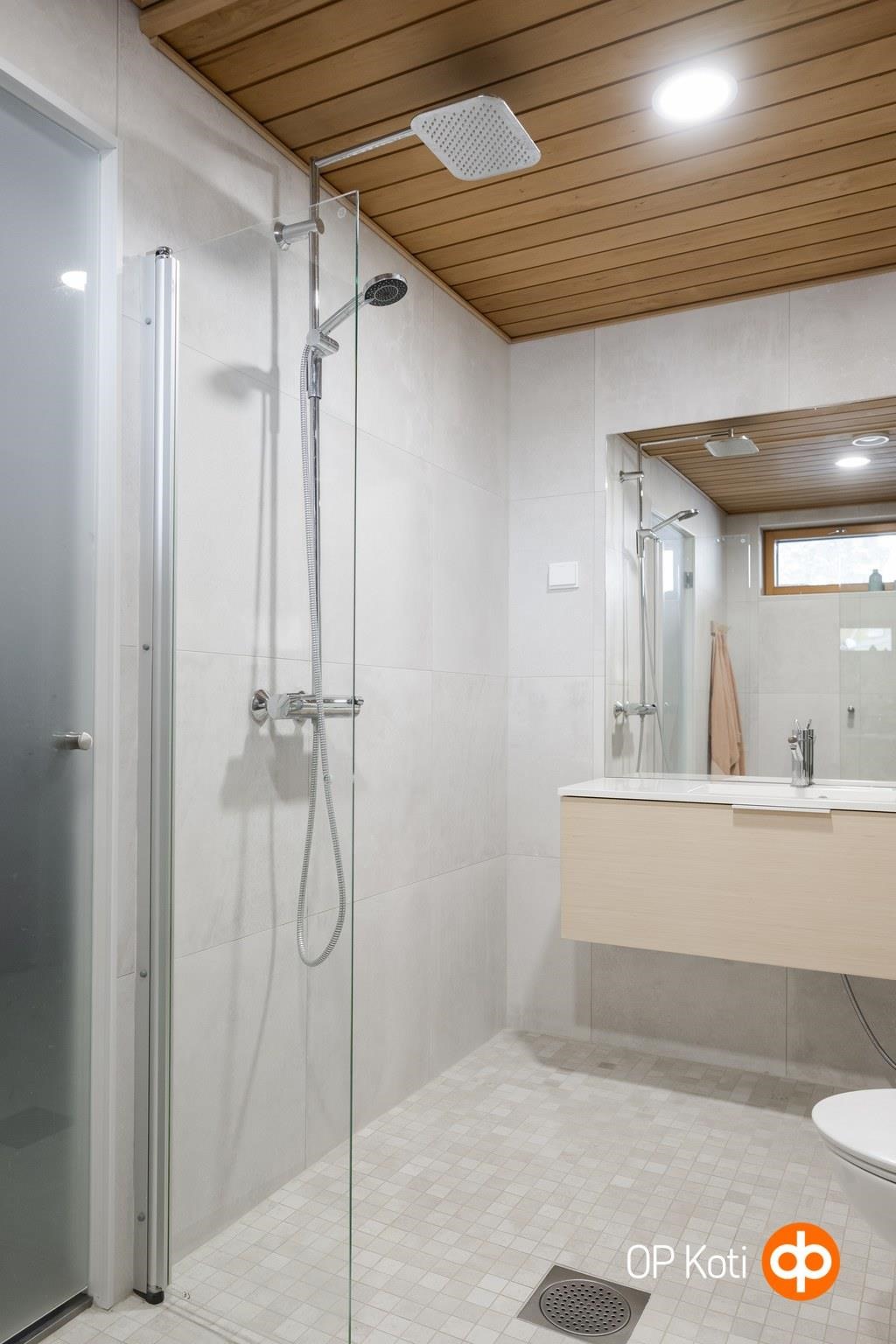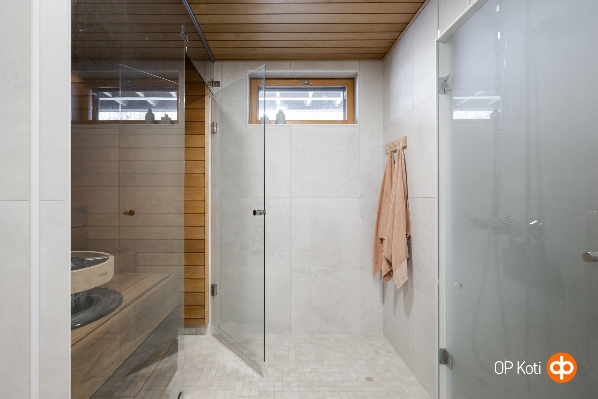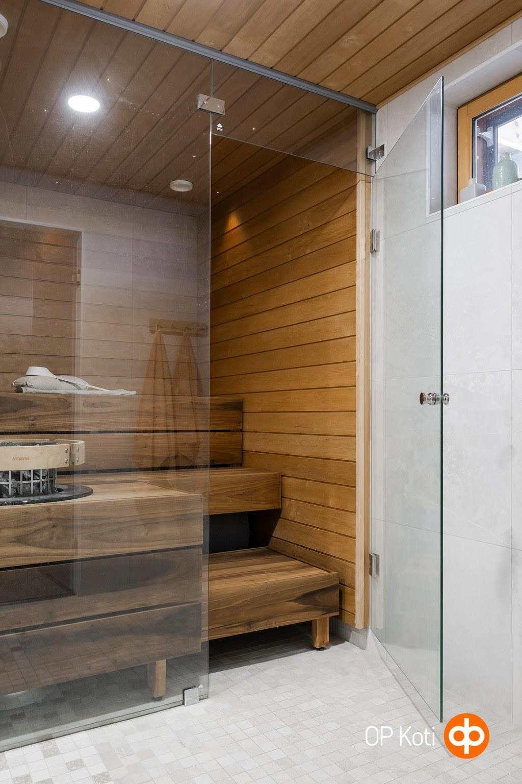 - Sauna, sähkökiuas Harvia Cilindro, kylpyhuone, erillinen wc yläkerrassa, suihku, suihkuseinä kääntyvä, peilit wc+kph, allaskaappi, pesukoneliitäntä khh, lattialämmitys, kiinteät valaisimet kph,s.