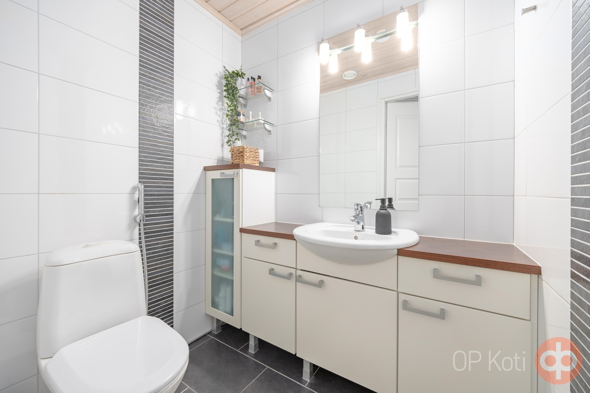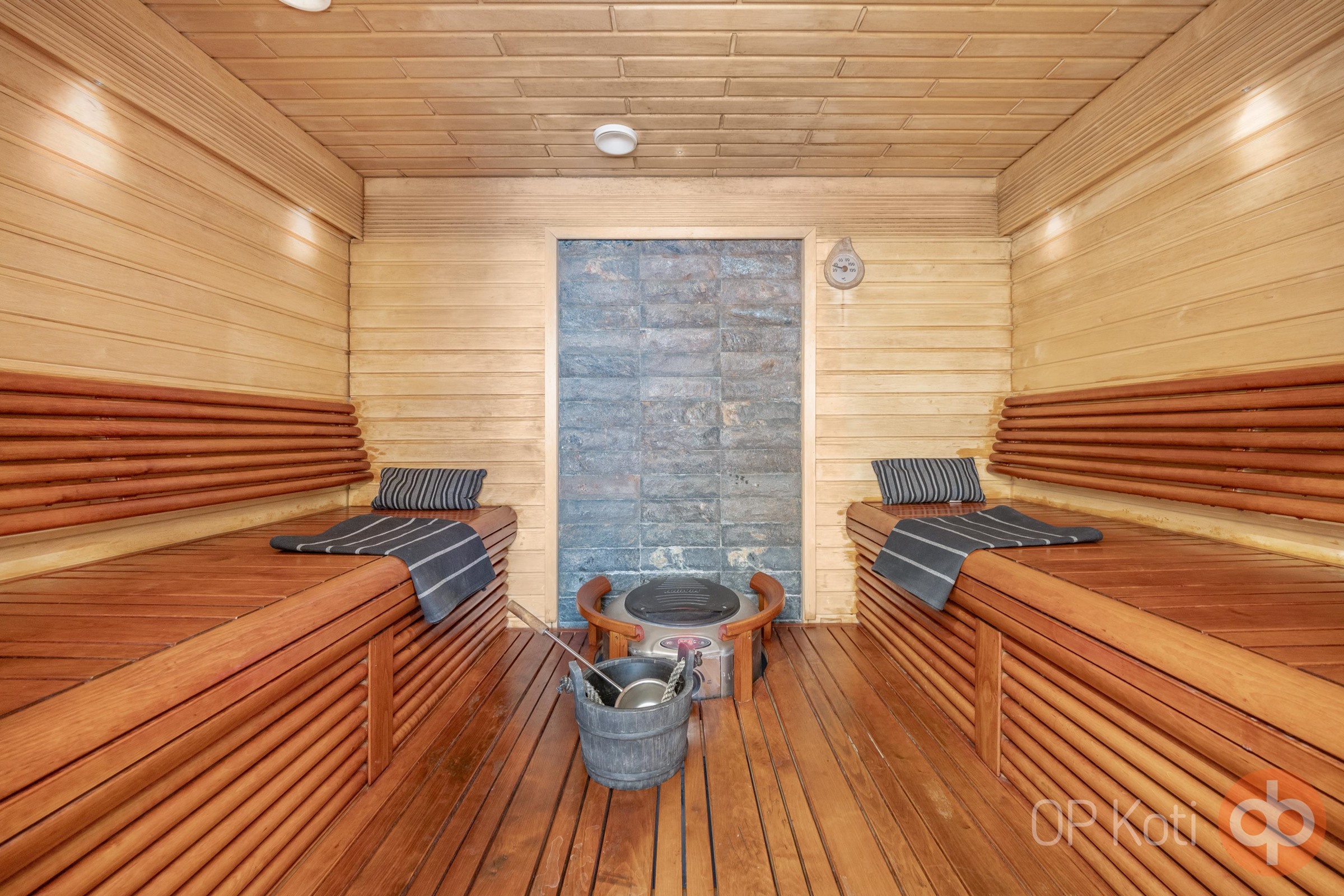 - Sauna, sähkökiuas hetivalmis, kylpyhuone, erillinen wc, suihku kaksi suihkua, peilit, allaskaappi, pesukoneliitäntä, lattialämmitys, kiinteät valaisimet.