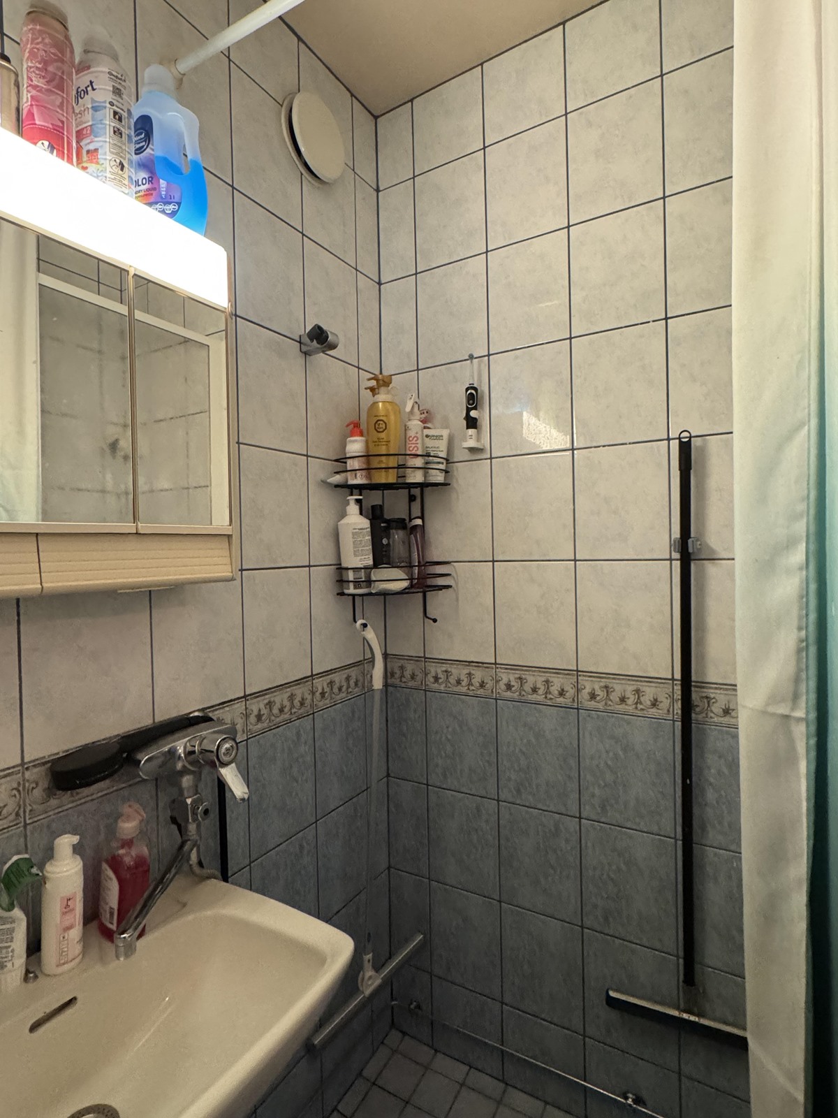 - Kylpyhuone, suihku, suihkuseinä, peilikaappi, pesukoneliitäntä. Kylpyhuone on uusittu 2004