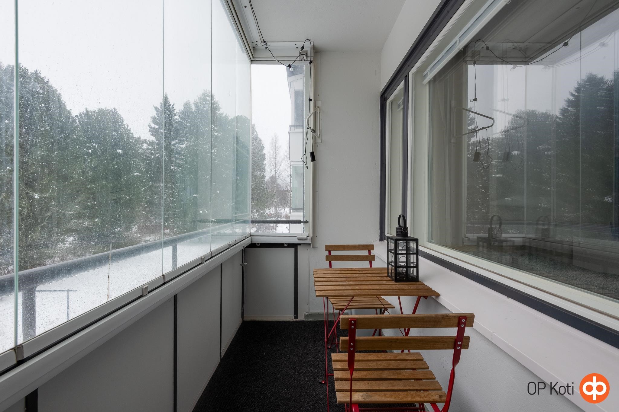 - Läpitalon huoneisto, ikkunat etelään ja pohjoiseen.