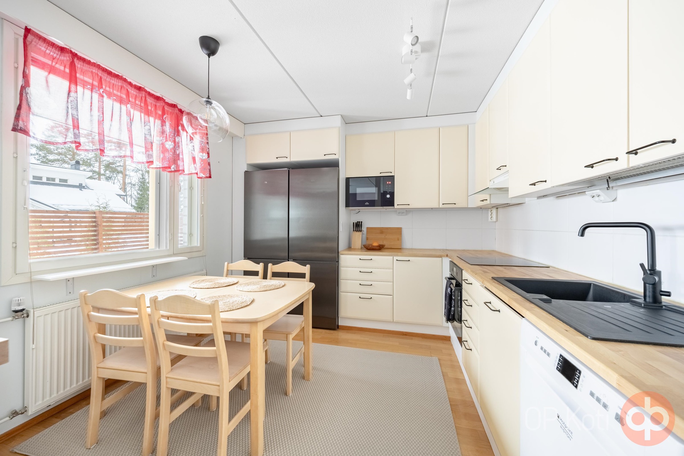 - Jääkaappipakastin 2 kpl, uusittu v. 2023, erillisuuni Uusittu v. 2025, induktioliesi, liesituuletin, mikroaaltouuni Integroitu v. 2022, astianpesukone, kiinteät valaisimet.