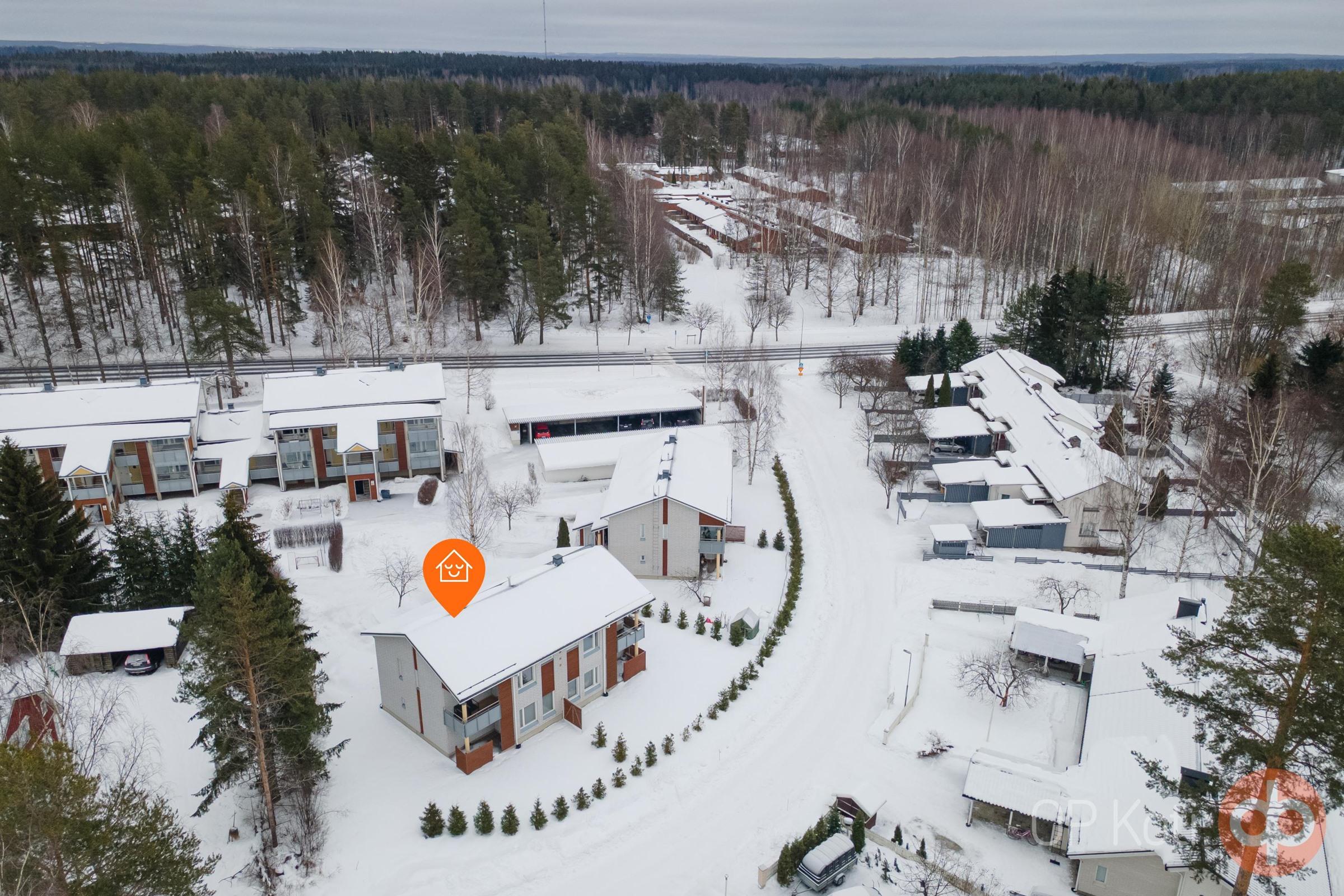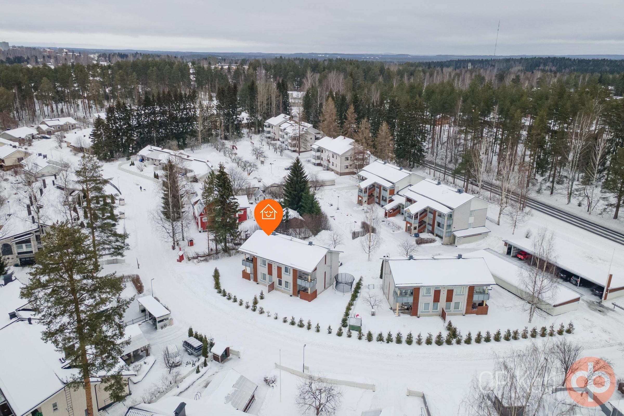 Taloyhtiö sijaitsee omalla tontilla noin 4 km keskustasta, ja alue tarjoaa erinomaiset ulkoilumahdollisuudet sekä sujuvat kulkuyhteydet niin palveluihin kuin harrastuksiinkin.