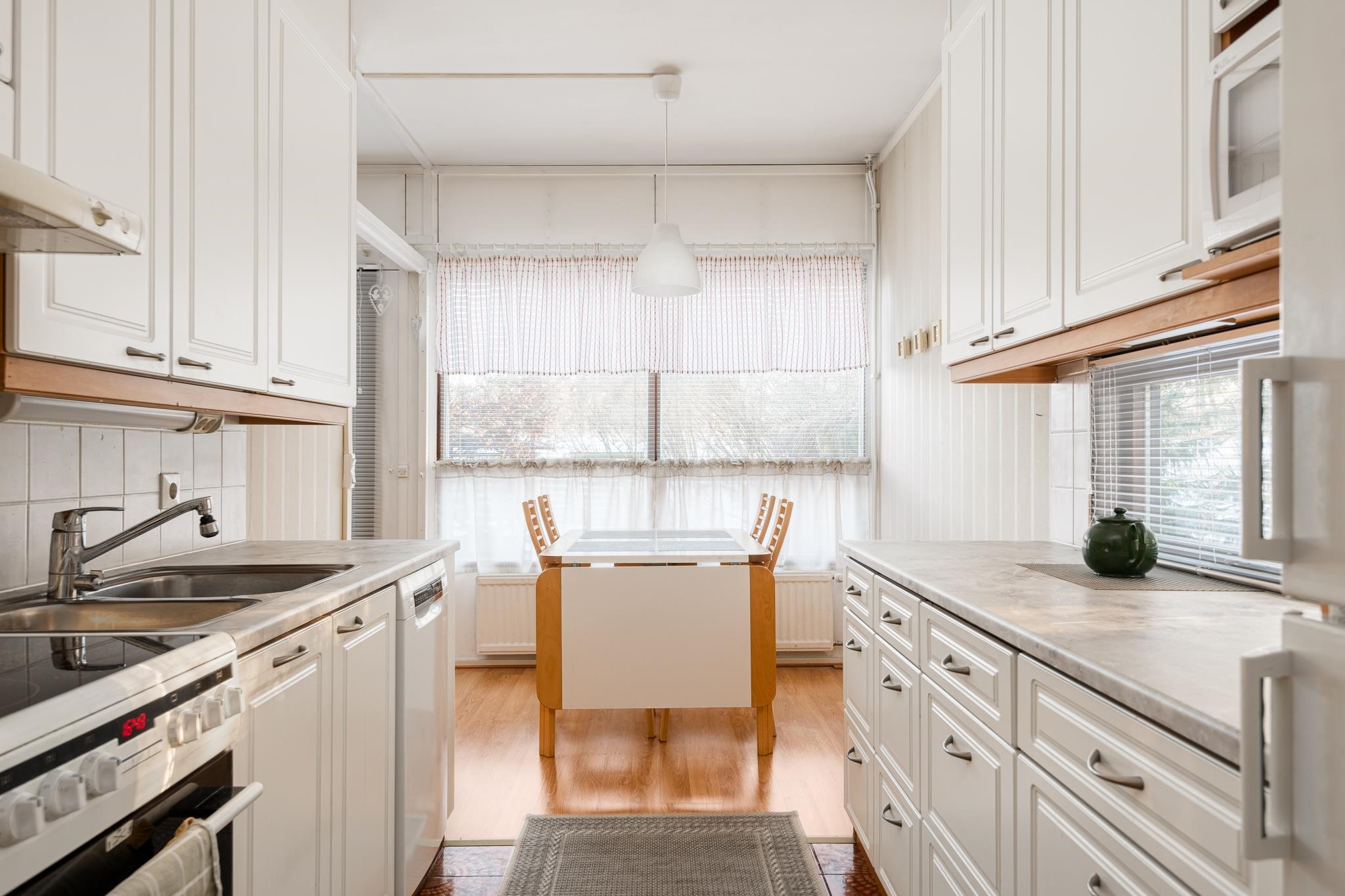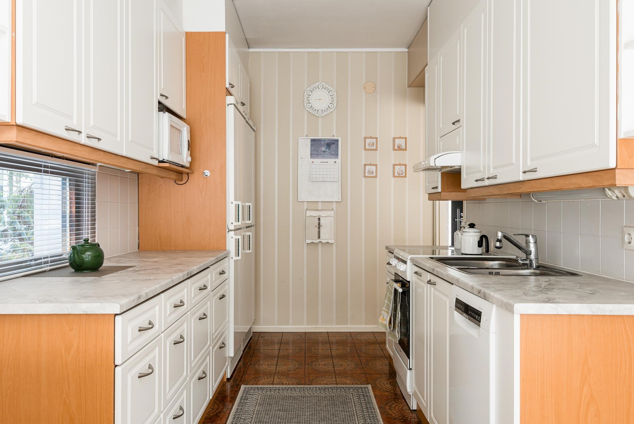 - Jääviileäkaappi, jääkaappipakastin, keraaminen liesi, liesituuletin, astianpesukone, kaapistot, kiinteät valaisimet.