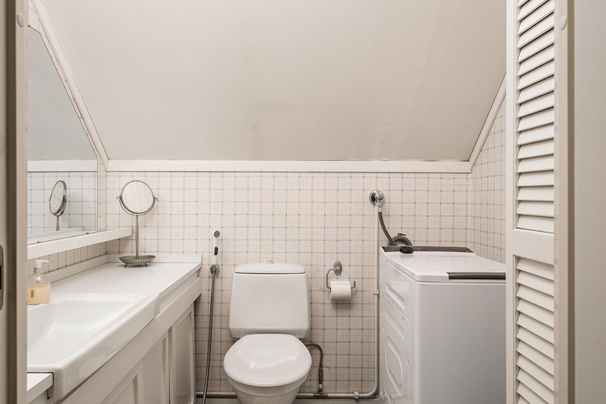 - Sauna, sähkökiuas, kylpyhuone, erillinen wc, suihku, suihkuseinä, peilit, allaskaappi, pesukoneliitäntä yläkerran WC, lattialämmitys pesutilat, kiinteät valaisimet.