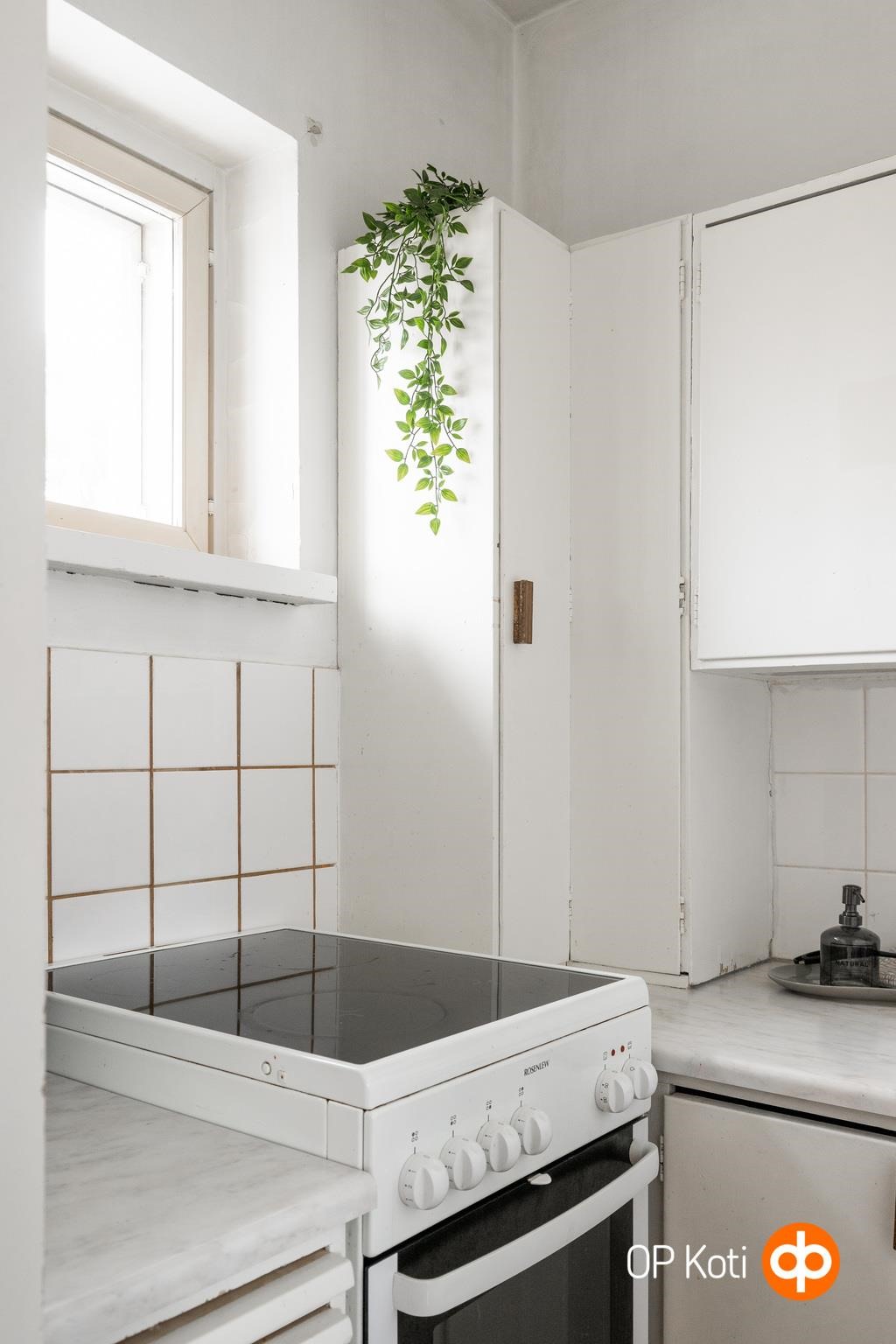- Jääkaappipakastin, sähköliesi, kaapistot, kiinteät valaisimet.
