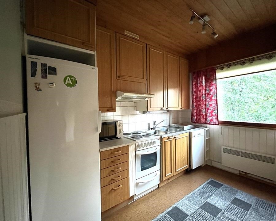 - Jääkaappi, sähköliesi, liesituuletin, kaapistot.