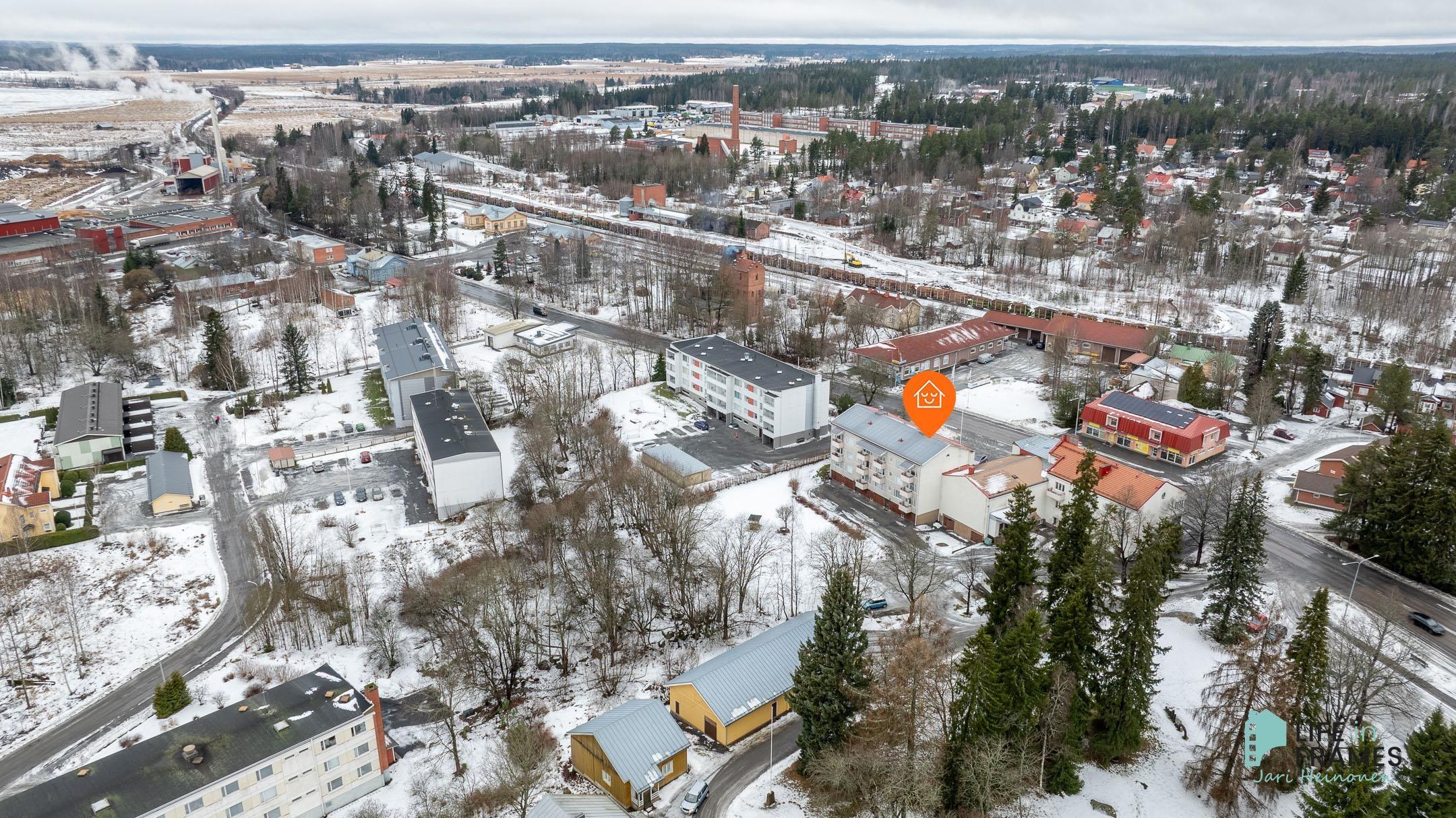 Erinomainen sijainti kivenheiton päässä rautatieasemasta! Lähistöltä löytyy lisäksi päiväkoti, koulu, ammattikoulu, harrastuspaikkoja, kauppa, kirjasto, uimaranta, mielin määrin ulkoilumahdollisuuksia ja kaikki keskustan palvelut.