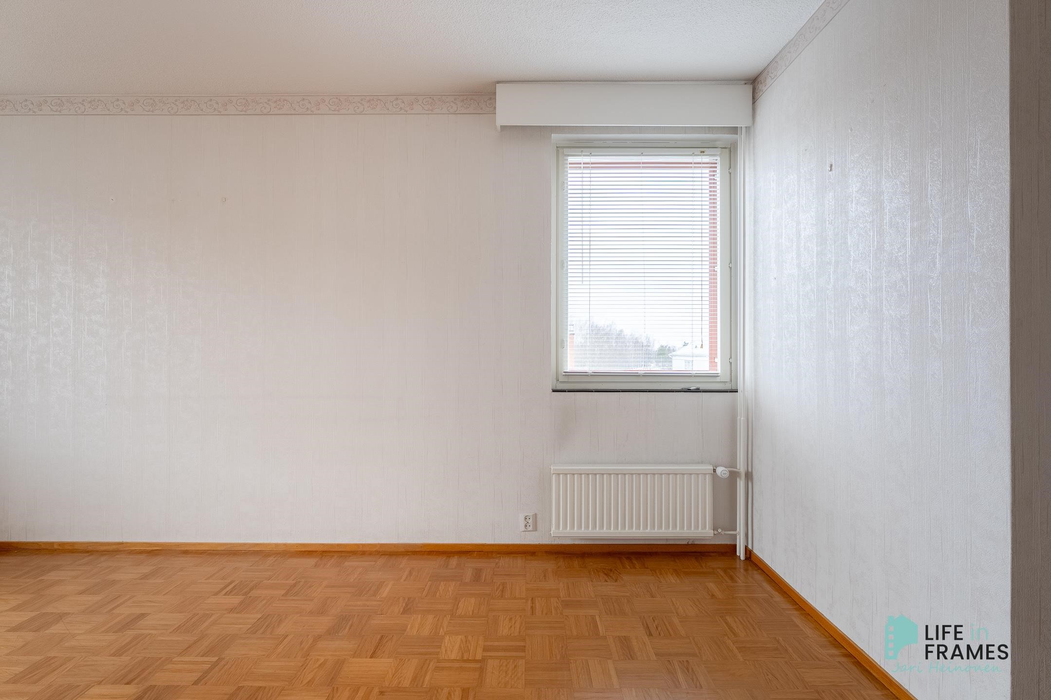 Huonetilat: Lattiassa parketti/muovimatto ja seinissä tapetti/maali.