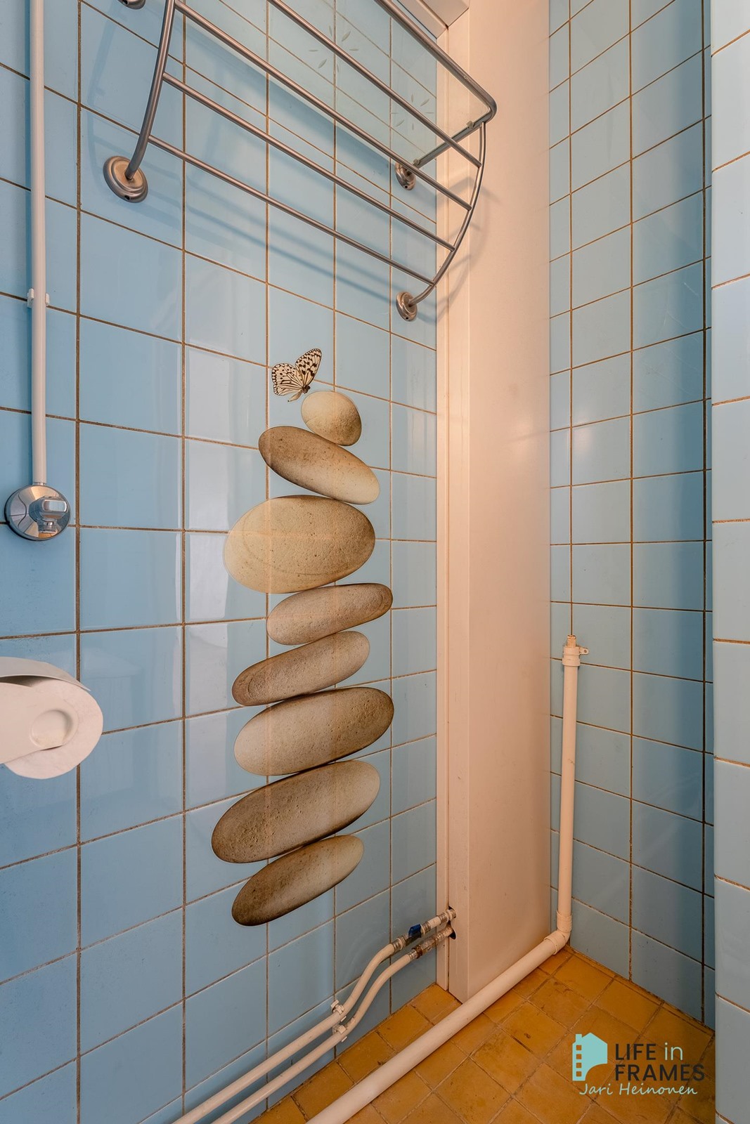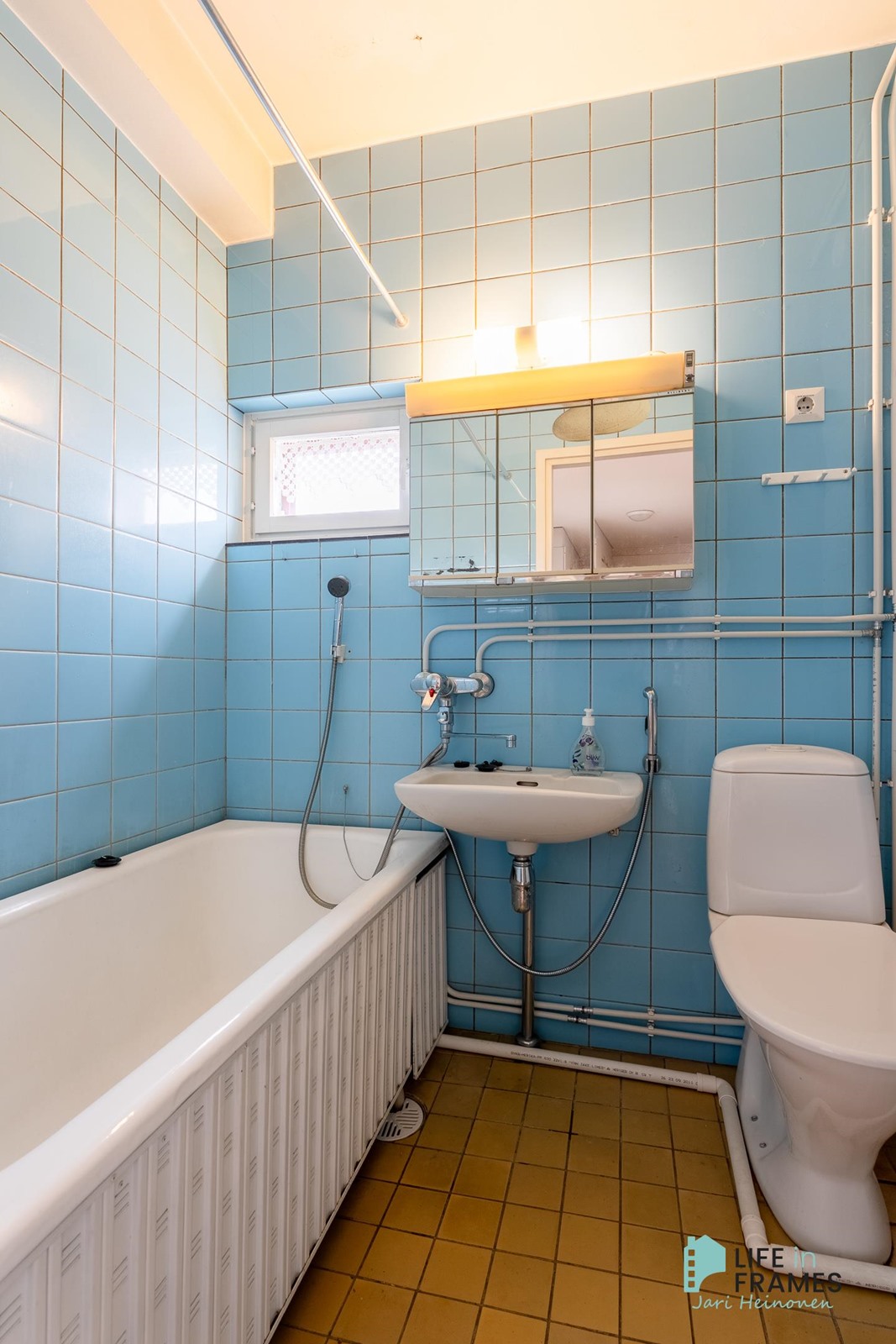 - Kylpyhuone, suihku, amme, peilikaappi, pesukoneliitäntä, kiinteät valaisimet.