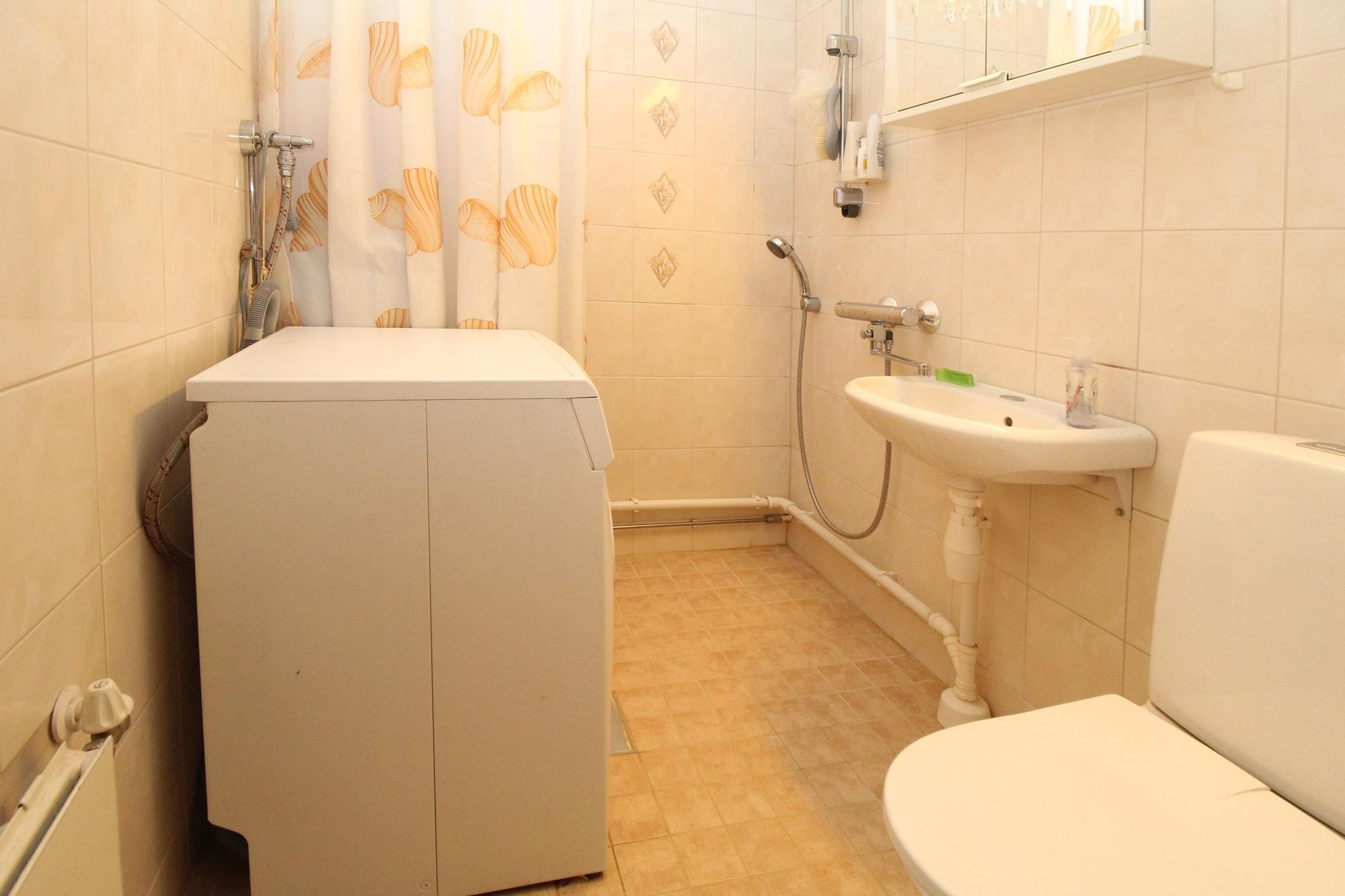 - Kylpyhuone Uusittu 2011, vesieristys ja laatoitus, suihku, peilikaappi, allaskaappi, pesukoneliitäntä, lattialämmitys, kiinteät valaisimet.