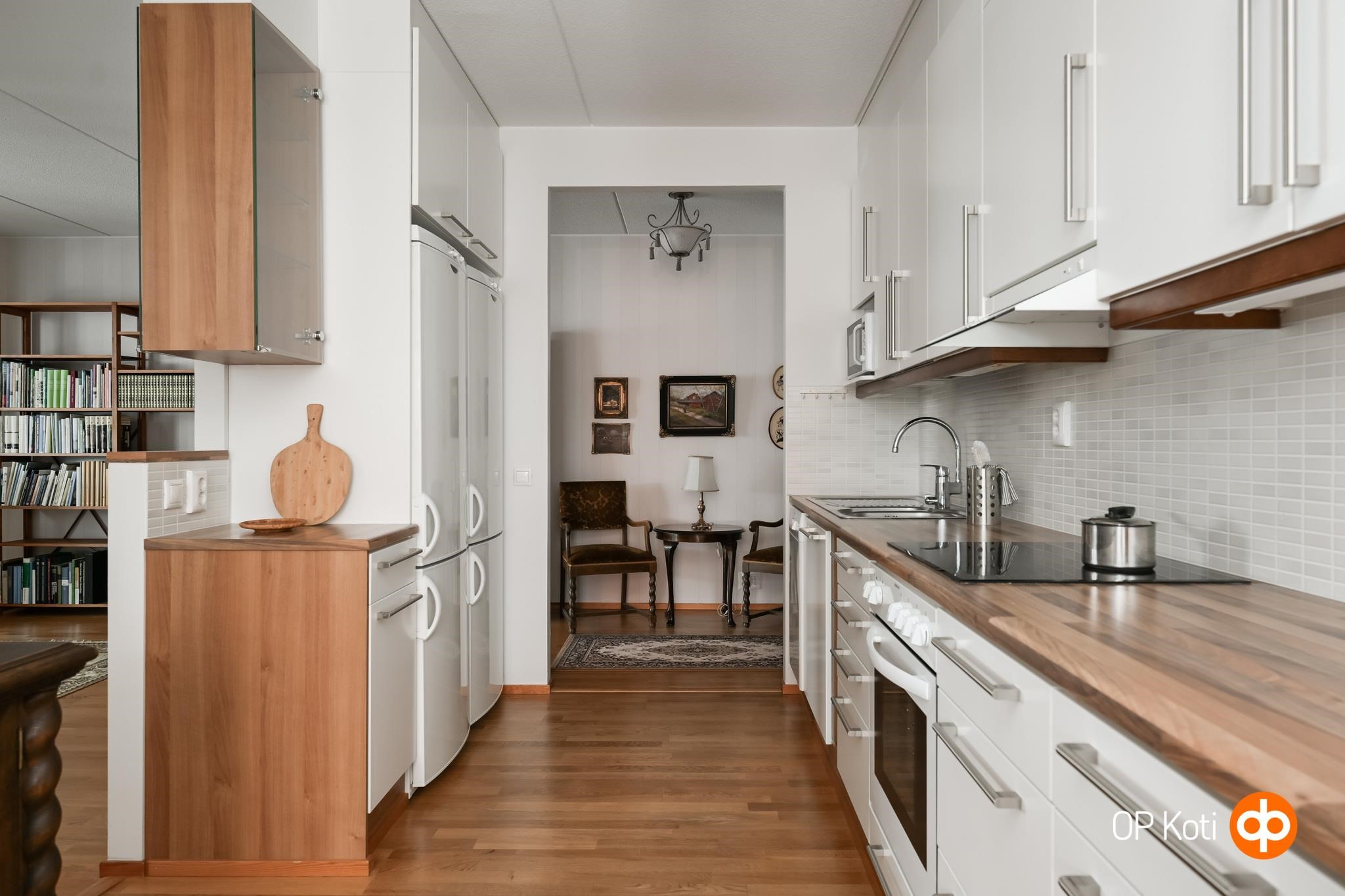 - Jääkaappipakastin x 2, erillisuuni, keraaminen liesi, liesituuletin, astianpesukone, kiinteät valaisimet. Integroitu silityslauta
