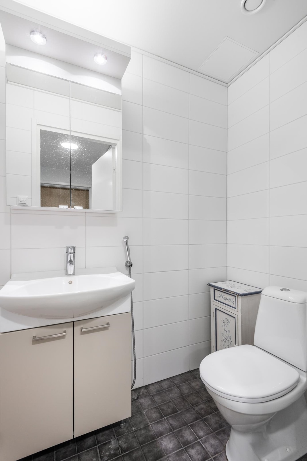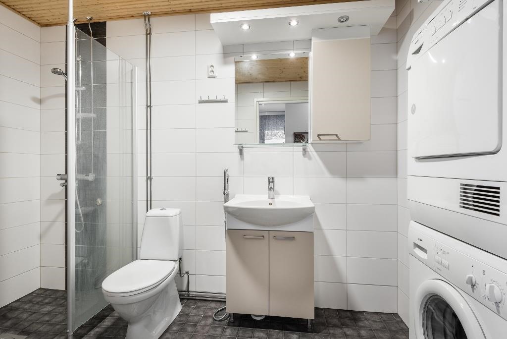 - Sauna, sähkökiuas, kylpyhuone, erillinen wc 2 kpl, suihku, suihkuseinä, peilikaappi, kaapit, allaskaappi, pesukoneliitäntä, lattialämmitys kosteat tilat, kiinteät valaisimet.